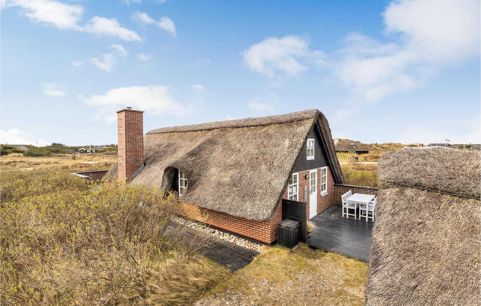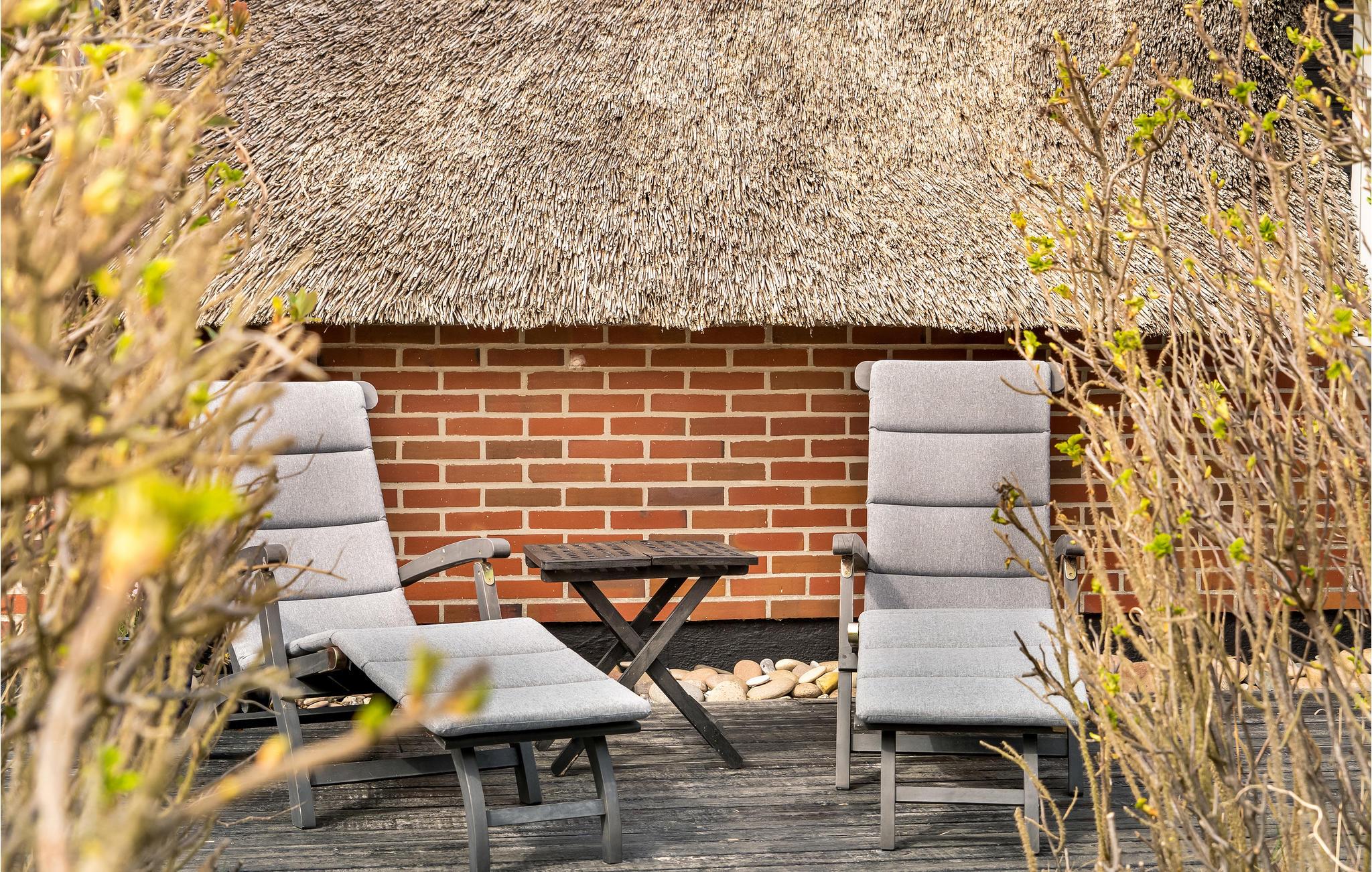 Hyggeligt stråtækt sommerhus nær Vesterhavet med brændeovn, hems og dejlig terrasse i Klegod.