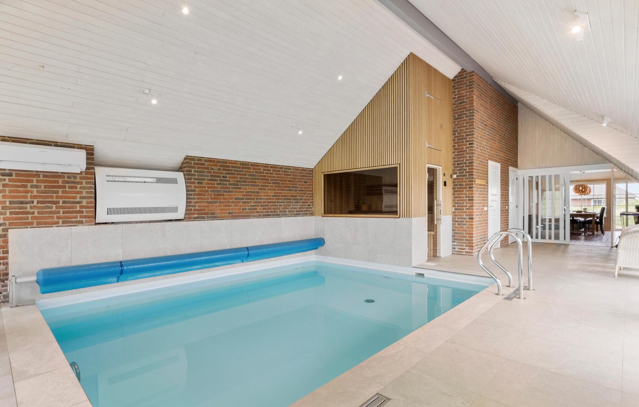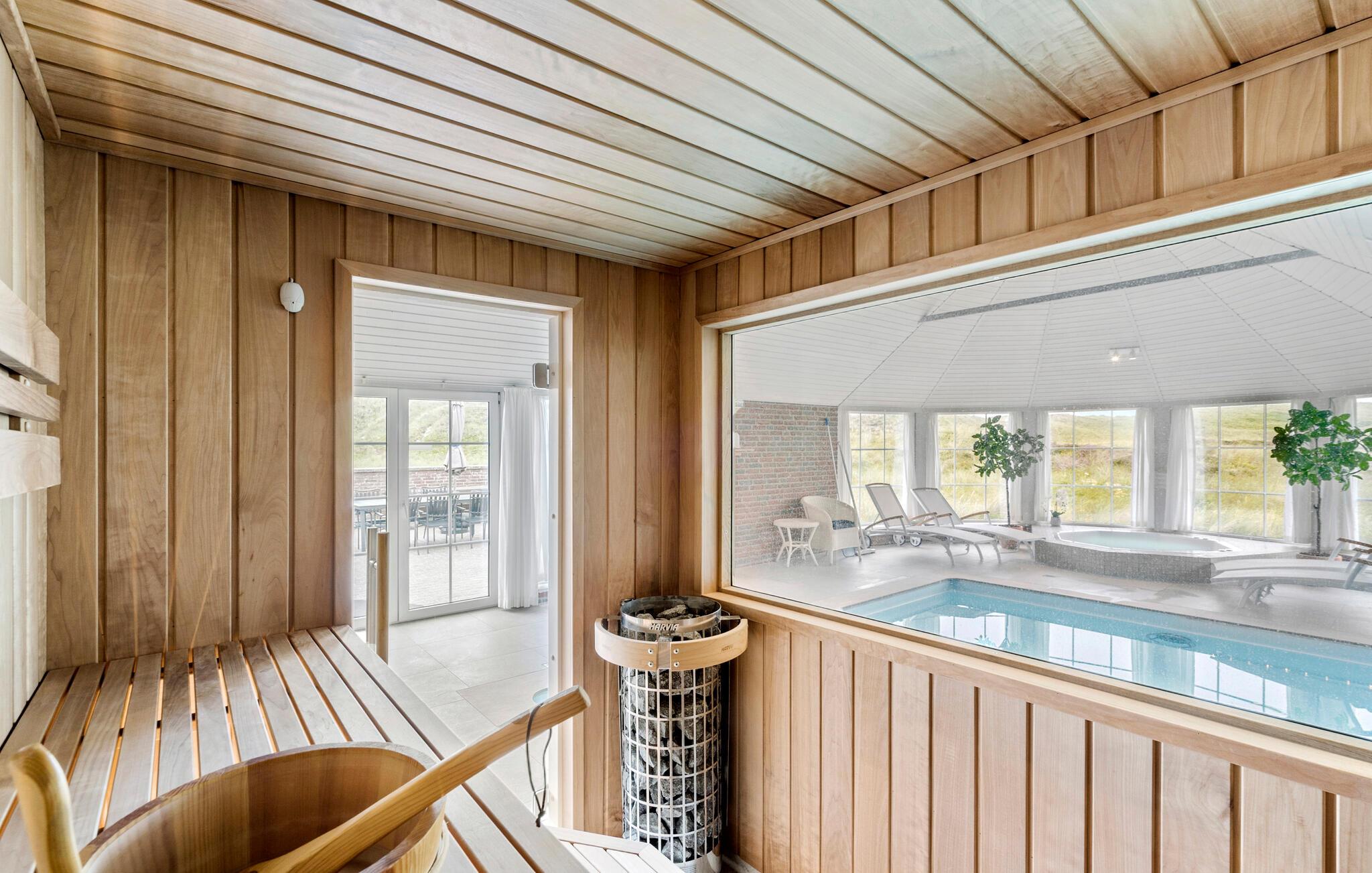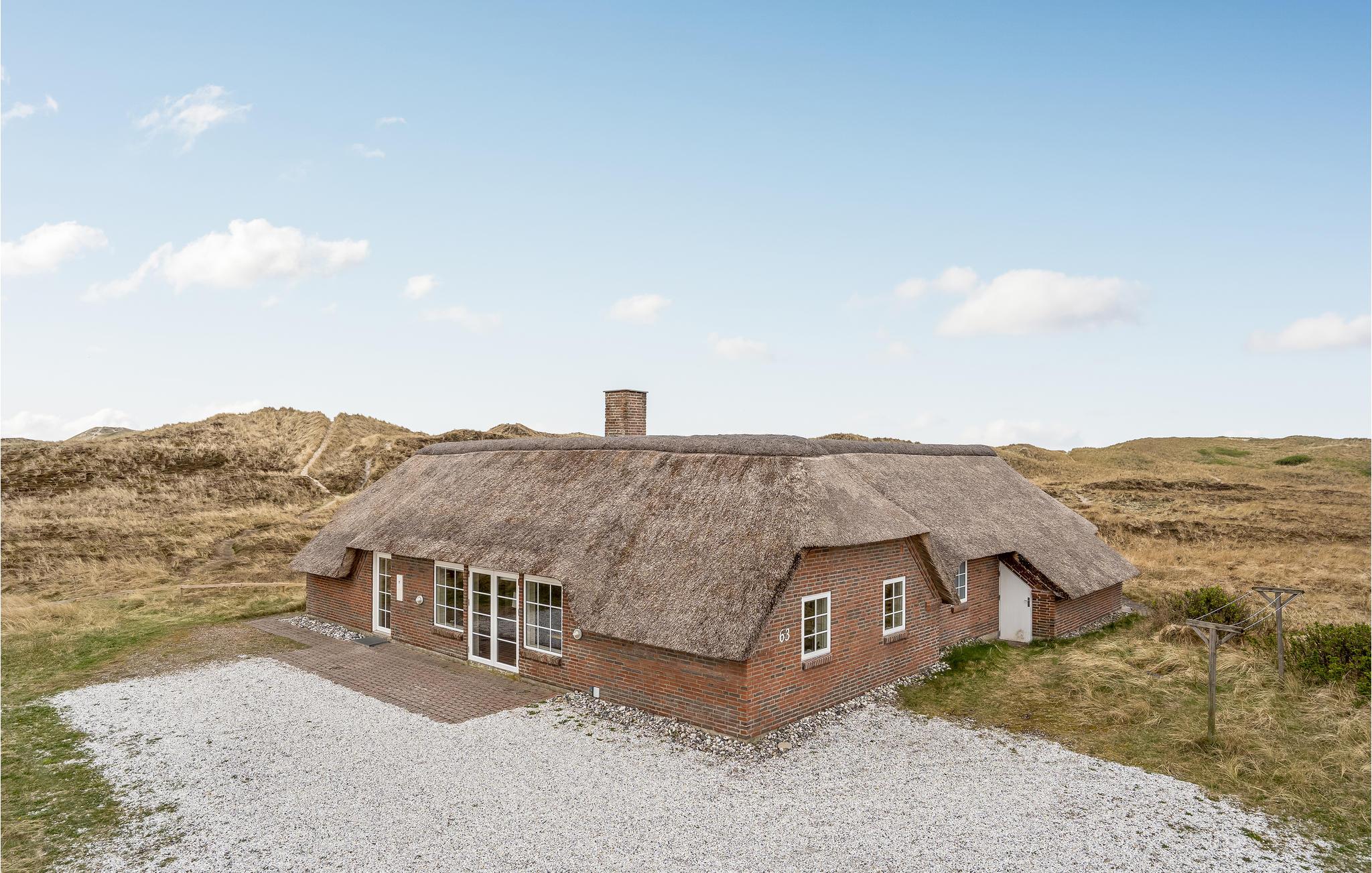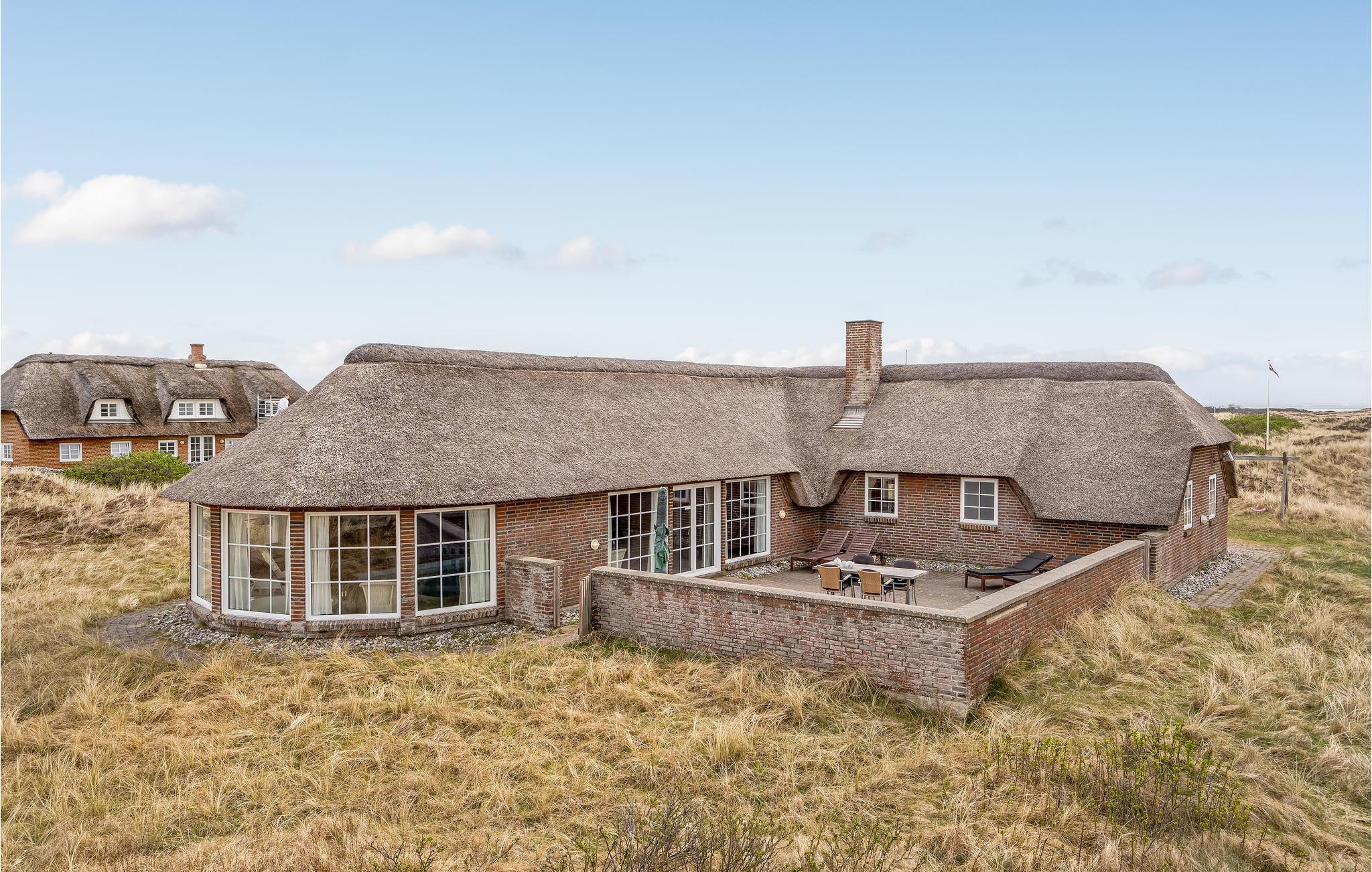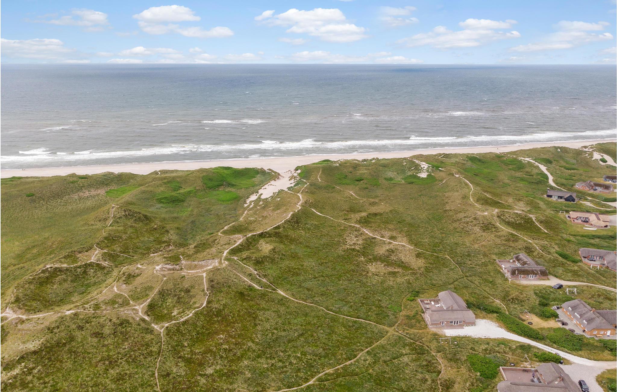I første klitrække, kun 200 m fra en af vestkystens bedste badestrande, ligger denne drøm af et feriehus. Den store klitgrund støder op til et fredet klitområde. Det smukke sommerhus på 196 m² er bygget i traditionel klitgårdsstil og falder med det karakteristiske stråtag godt ind i landskabet. Det er kvalitetsmæssigt af høj standard og byder på alt, hvad I kan forestille jer til en luksusferie. Det centrale rum er den 40 m² store stue, der er udstyret med blandt andet komfortable møbler. Det 64 m² store og imponerende poolrum indbyder til daseferie - her kan I boltre jer i den store swimmingpool eller slappe af i det fire pers. spabad. Den store lukkede solgård er det perfekte sted, når I vil dyrke udelivet.