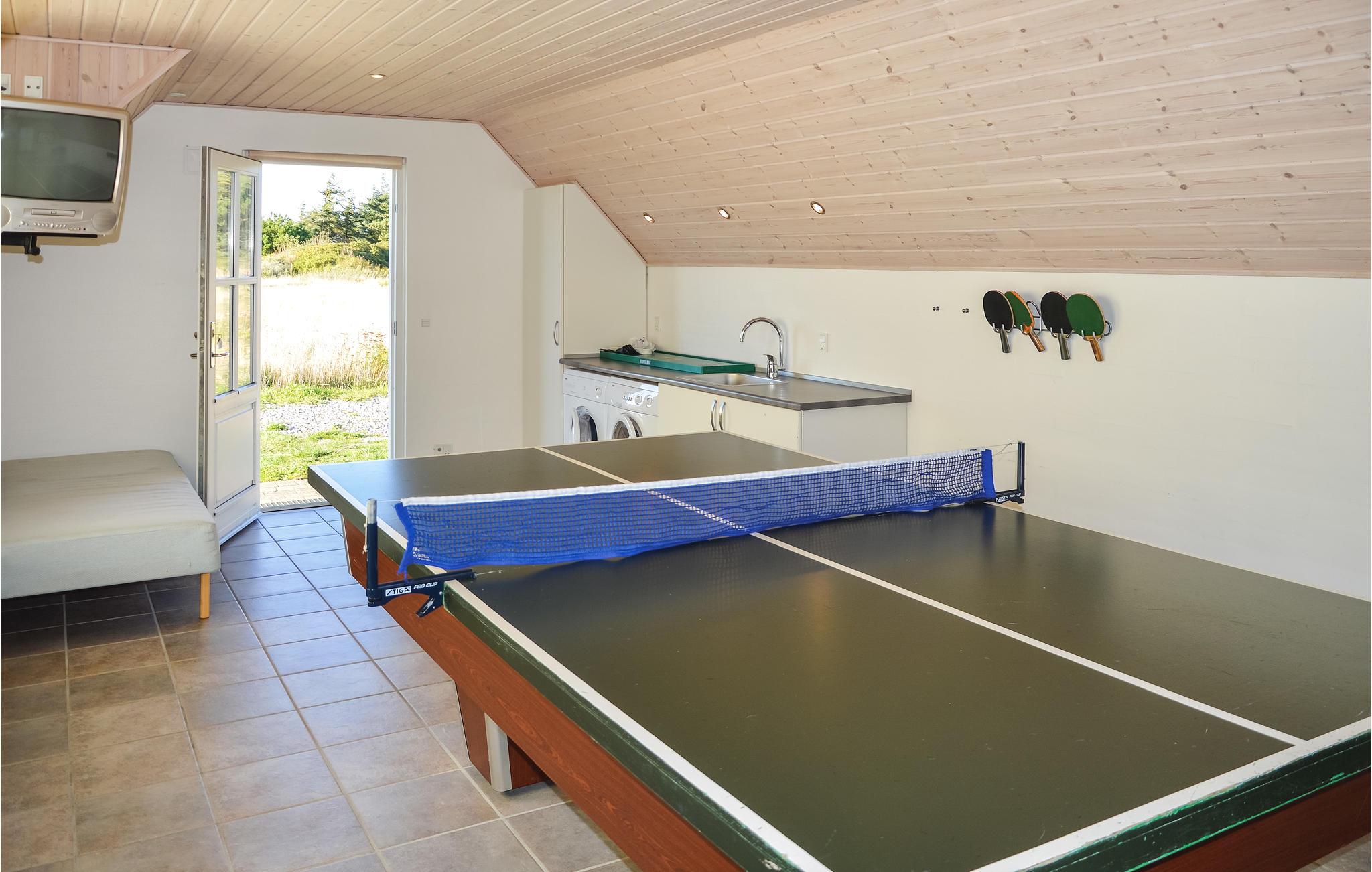 I det skønne klitområde ved Klegod, ligger dette dejlige feriehus, hvor der er god plads til alle. Huset er smagfuldt indrettet med fire gode soveværelser, en kombineret køkken/stue med gode møbler og brændeovn, to pæne badeværelser hvor der i det ene er både spabad og sauna. Ved siden af huset er der opført et aktivitetsanneks med bl.a. bordtennis, billard og tv. Feriehuset ligger knap 10 minutters kørsel fra feriebyen Søndervig med alt, hvad I vil få brug for på ferien af indkøbsmuligheder og aktiviteter. Området byder på en skøn natur med klitter, hav og fjord samt masser af stier, der er velegnede til gå-, løbe- og cykelture. Fra huset er der ikke langt på gåben til Vesterhavet, som er et must at opleve. Det er ganske unikt, og uanset om solen skinner, eller det regner og blæser, så giver en lang gåtur langs vandet friske røde kinder og en naturlig træthed, når I kommer til aften og roen sænker sig. Har I fiskestængerne med, ligger bl.a. Klegod Fiskesø ikke langt fra huset, og her flyver tiden afsted. Ved fiskesøen er der gode faciliteter såsom renseplads, borde og bænke mm. Havnen i Hvide Sande er også et velbesøgt sted for fiskeri, så mulighederne for at bringe friskfangede fisk med hjem til grillen er gode. Vil fiskene ikke bide på, kan I købe friske fisk på havnen. Er I til surfing, kan Ringkøbing Fjord anbefales, mellem Ringkøbing og Søndervig ligger et godt startsted med gode parkeringsmuligheder og (primitive) toiletfaciliteter. Besøg også kabelbanen i Hvide Sande, som er en udfordring for de fleste. Uanset om I er til dase ferie eller aktiv ferie, så har Vestkysten noget at byde på.