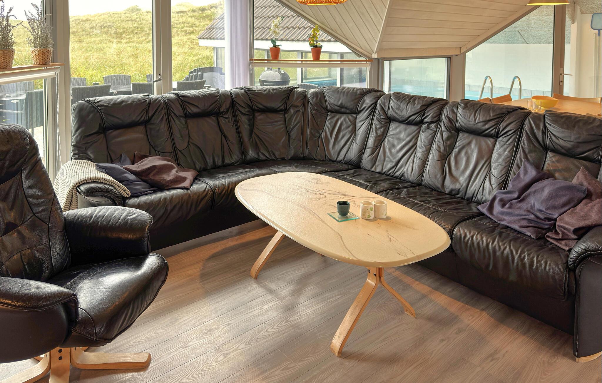 Dette sommerhus med swimmingpool har den mest fantastiske beliggenhed i gåafstand til Vesterhavet samt den smukkeste udsigt over klitterne. Huset ligger på en 4600 m² stor klitgrund, direkte op til fredningslinjen. Sommerhuset har 5 soveværelser samt 1 hems med 2 madrasser, 2 badeværelser samt kombineret køkken og stue med bl.a. brændeovn. Nyd de skønne solnedgange fra terrassen sammen med et lækkert glas vin. I poolafdelingen findes, udover swimmingpoolen, også et spabad og sauna. Huset er enkelt indrettet med funktionelt møblement.