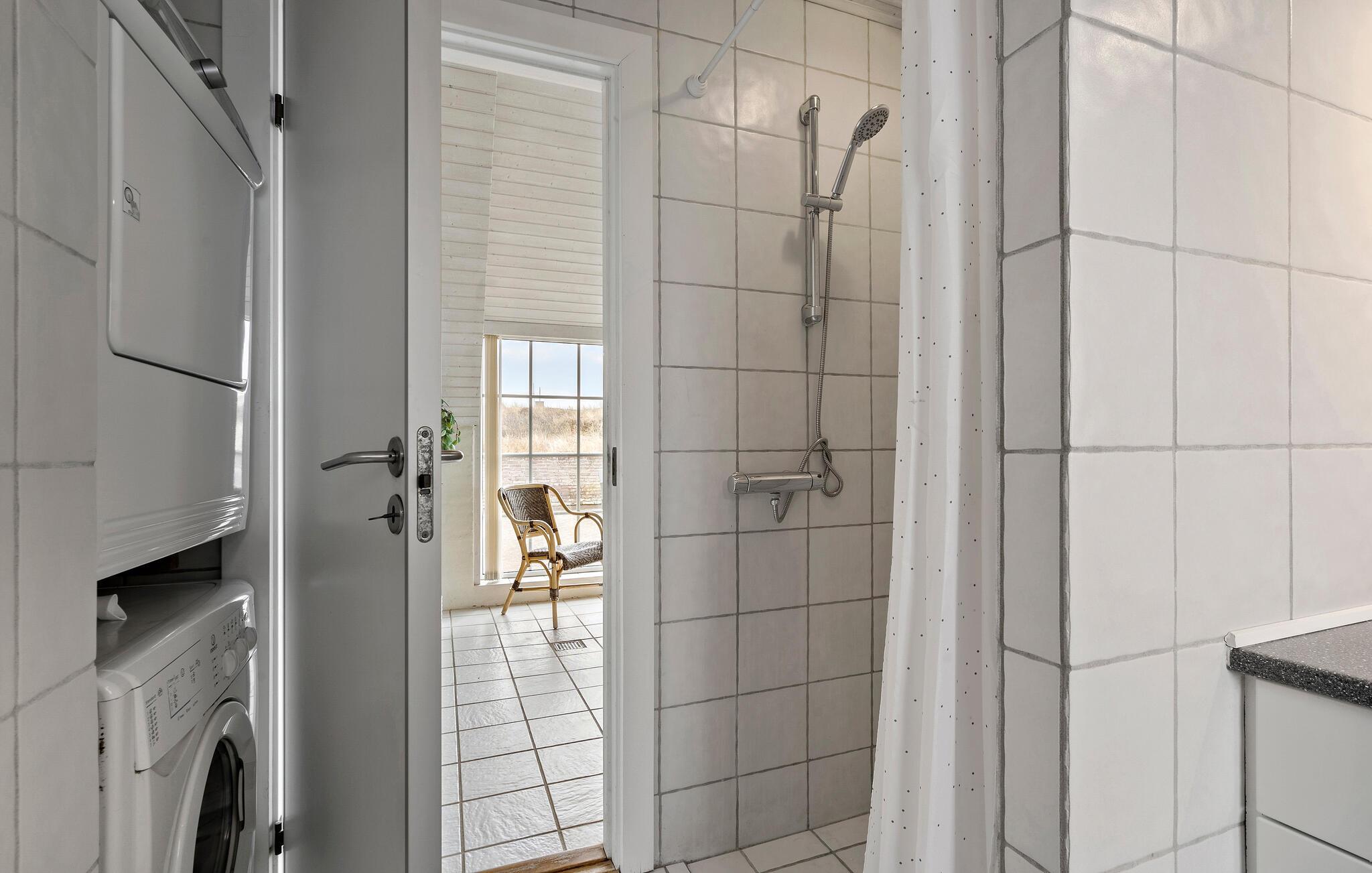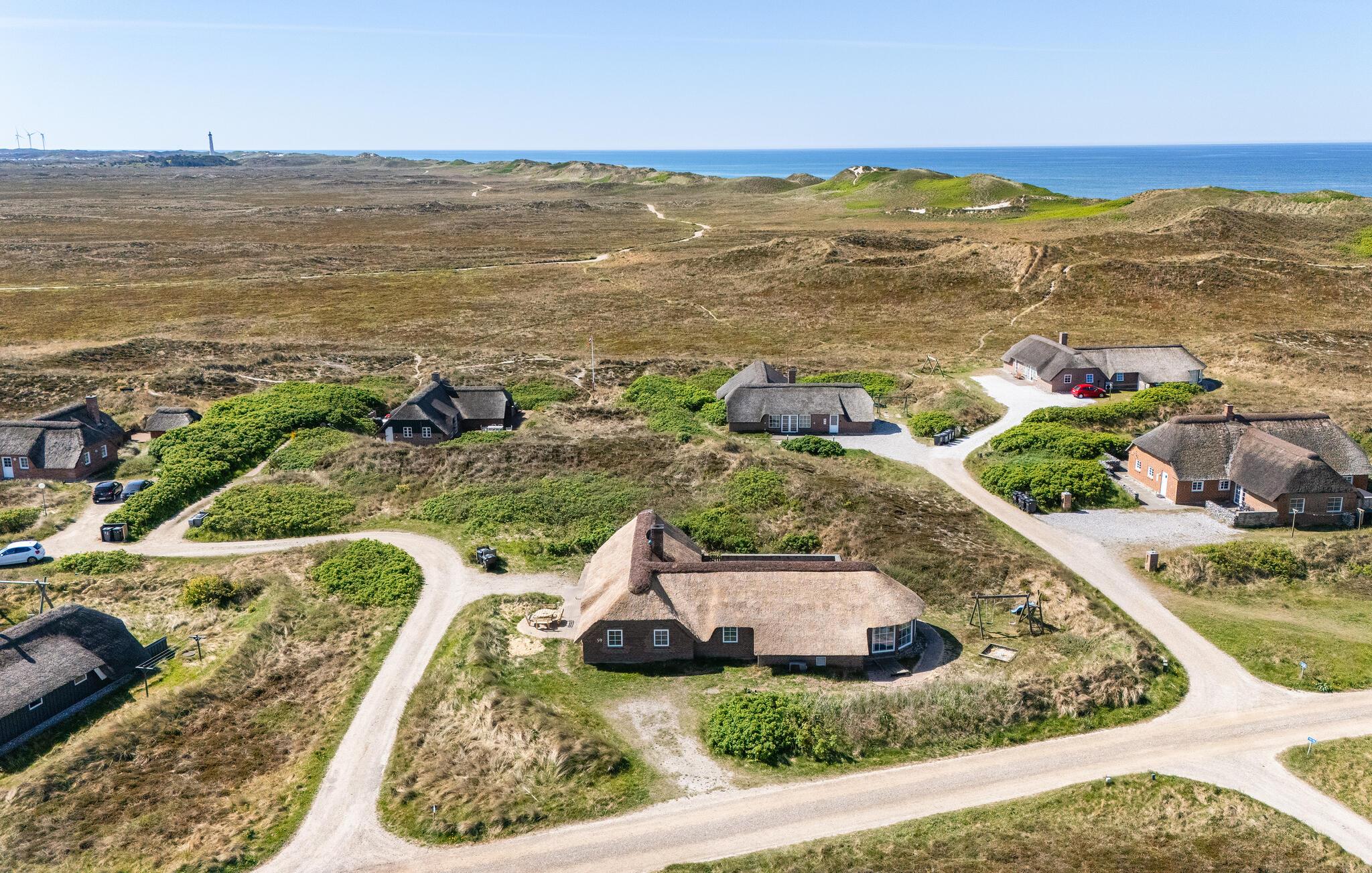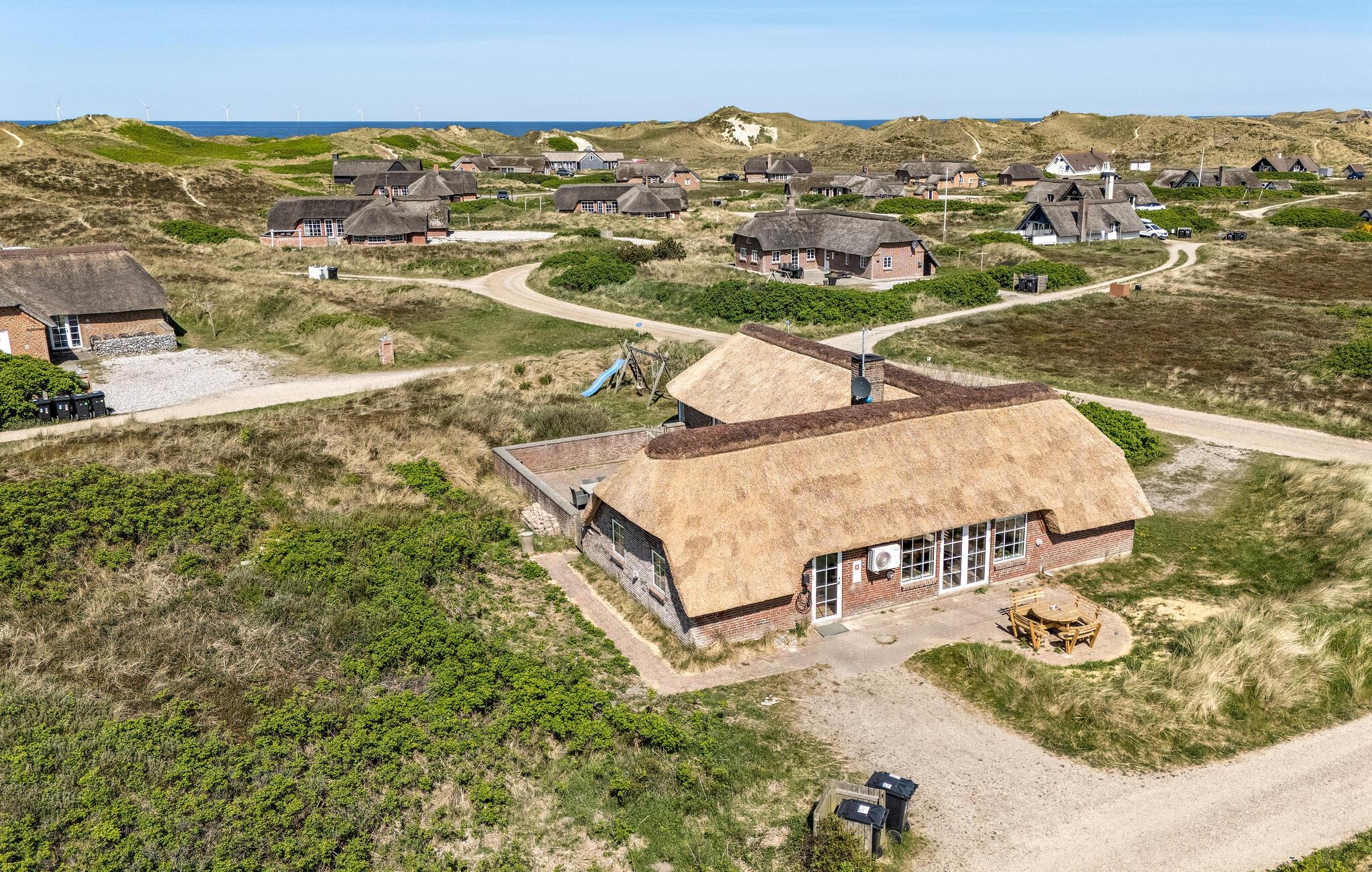 I et roligt og eksklusivt sommerhusområde ligger denne perle af et luksushus, som indeholder alt, hvad man kan ønske sig i forbindelse med en god ferie. Det ligger på en 2000 m² stor kuperet klitgrund med udsigt over det fredede klitområde og tæt på havet. Huset råder over mange faciliteter, men en af de største attraktioner er nok den lyse, 50 m² store poolafdeling, som inviterer til sjov, leg og afslapning. Den indeholder ud over poolen et spabad og en sauna, hvor I kan slappe af efter en dag med oplevelser og lange gåture. I stuen er der underholdning i form af tv med Boxer Max (37 programmer), dvd og stereoanlæg. Hvis vejret er til det, kan I nyde solen på den store, ugenerede og lukkede terrasse. Huset er godt indrettet med bl.a. fire soveværelser med dobbeltseng og to lyse badeværelser. Stuen har faciliteter som tv med parabol og dvd, samt stereoanlæg. Køkkenet har både el-komfur, opvaskemaskine, mikroovn, støvsuger, barnestol mm. Derudover er der gratis trådløst internet i sommerhuset. Udenfor er der fire parkeringspladser, grill, havemøbler samt gynge og sandkasse til børnene.