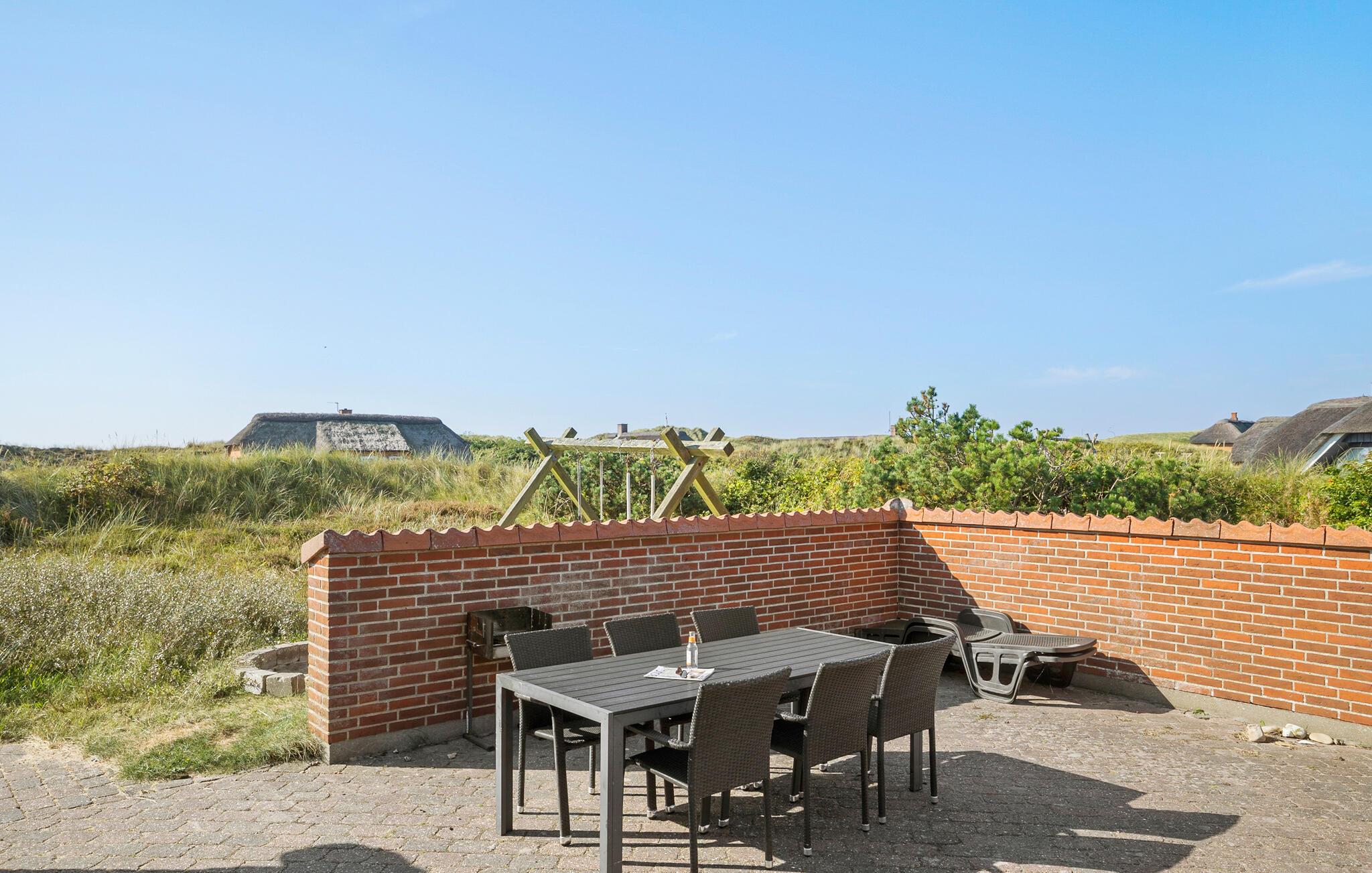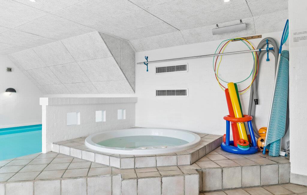 Dette rummelige feriehus byder på alt, hvad I skal bruge til en vellykket ferie. Med plads til en stor familie er dette hus i Klegod ved Vesterhavet det optimale sted for jeres næste ferie i Danmark. Den lyse og komfortable opholdsstue lægger op til at slappe af. Læn jer tilbage i det rummelige sofahjørne og nyd måltiderne sammen ved spisebordet ved siden af den hyggelige brændeovn. Derudover kan I bruge de forskellige faciliteter i huset. Tag en dukkert i den private pool eller slap af i boblebadet efter en dag med eventyr. Saunaen byder på behagelig afslapning efter en lang gåtur på stranden. Udearealet er et paradis for store og små. Mens børnene graver i sandkassen eller leger på gyngerne, kan de voksne slappe af på liggestolene. Afslut dagen med en grillaften på den vindbeskyttede terrasse og nyd den hyggelige atmosfære i klitlandskabet. Oplev også den nærliggende strand, optimal til lange gåture og en forfriskende svømmetur i havet. Besøg Søndervig eller det maleriske fiskerleje Hvide Sande, hvor I kan købe frisk fisk direkte fra båden. For friluftsmennesker byder Ringkøbing Fjord på talrige muligheder for vandreture, cykling og vandsport.
