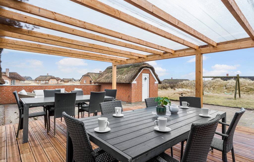 Dette smukke, stråtækte sommerhus ligger på en af de mest attraktive grunde i Klegod, i første klitrække og kun 50 m fra havet. Huset er opført i de bedste materialer og er udstyret med alle moderne hjælpemidler. Samtidig er det funktionelt indrettet med bl.a. to badeværelser med gulvvarme, som gør det perfekt til flere familier. Der er en stor flisebelagt terrasse med gode læforhold hvor det er oplagt at sidde og nyde den friske havluft. Efter en dejlig gåtur langs havet kan I slappe af i det pers. spabad i det flotte poolrum, få varmen i saunaen eller tage en svømmetur i swimmingpoolen. Et hus til en dejlig ferie ved vesterhavet.