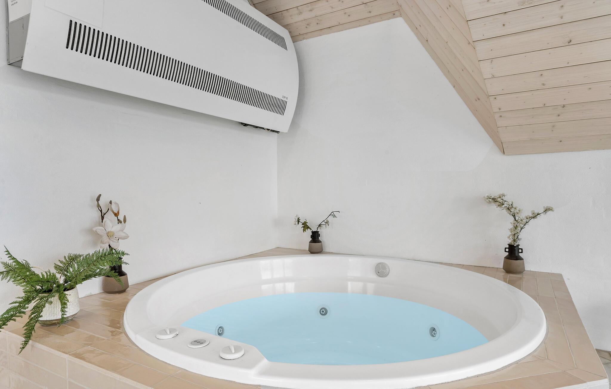 Stråtækt sommerhus i Klegod nær Vesterhavet med pool, sauna og spabad, perfekt til flere familier og afslapning.