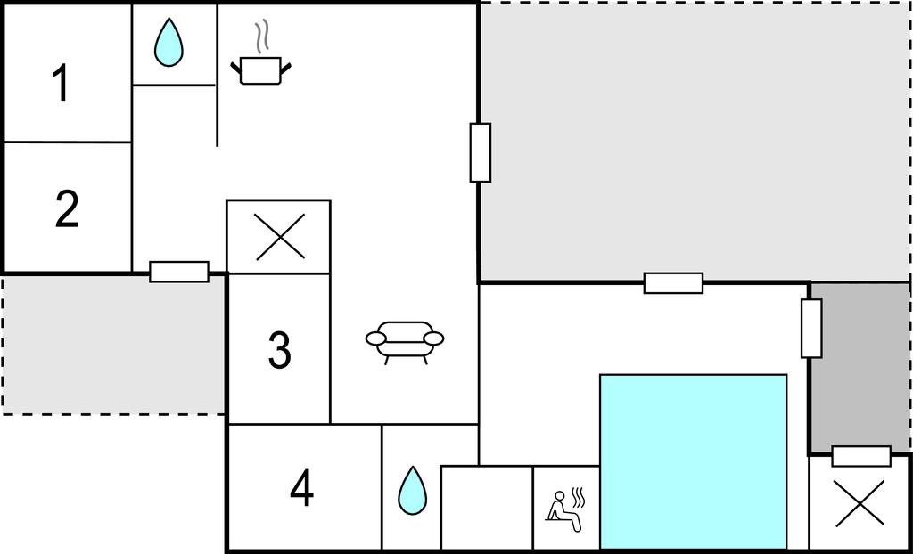 Badeværelse 6m2 (nr. 1) - WC. Varmt og koldt vand. Bruser