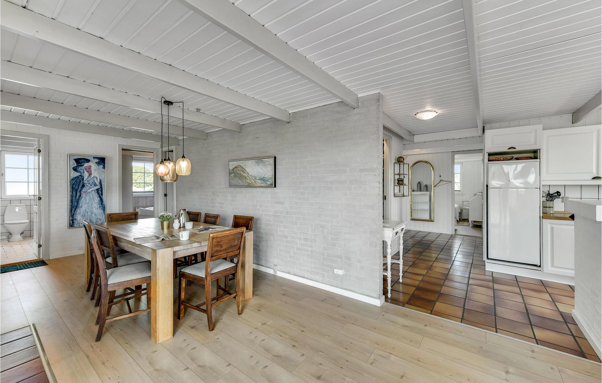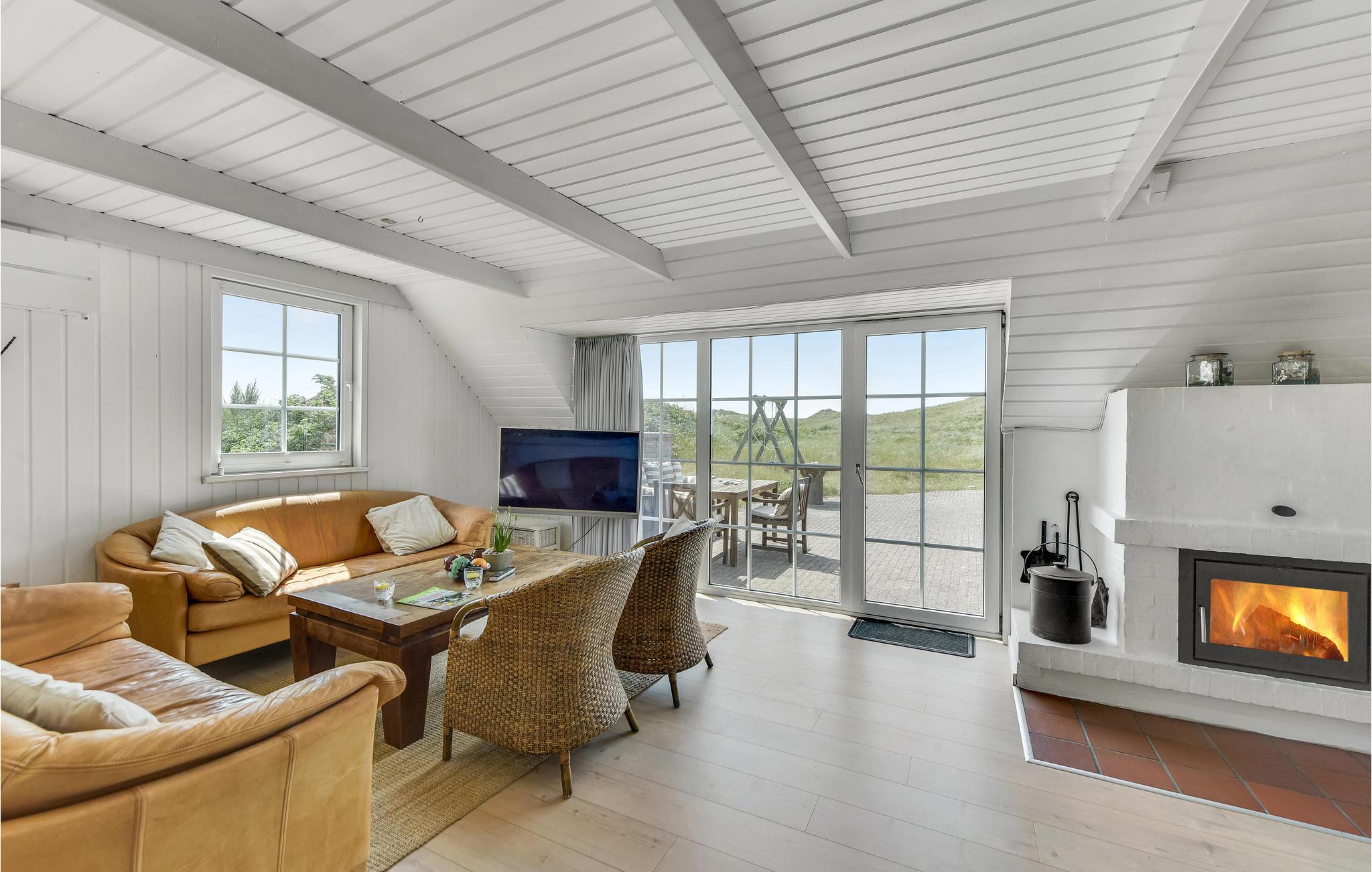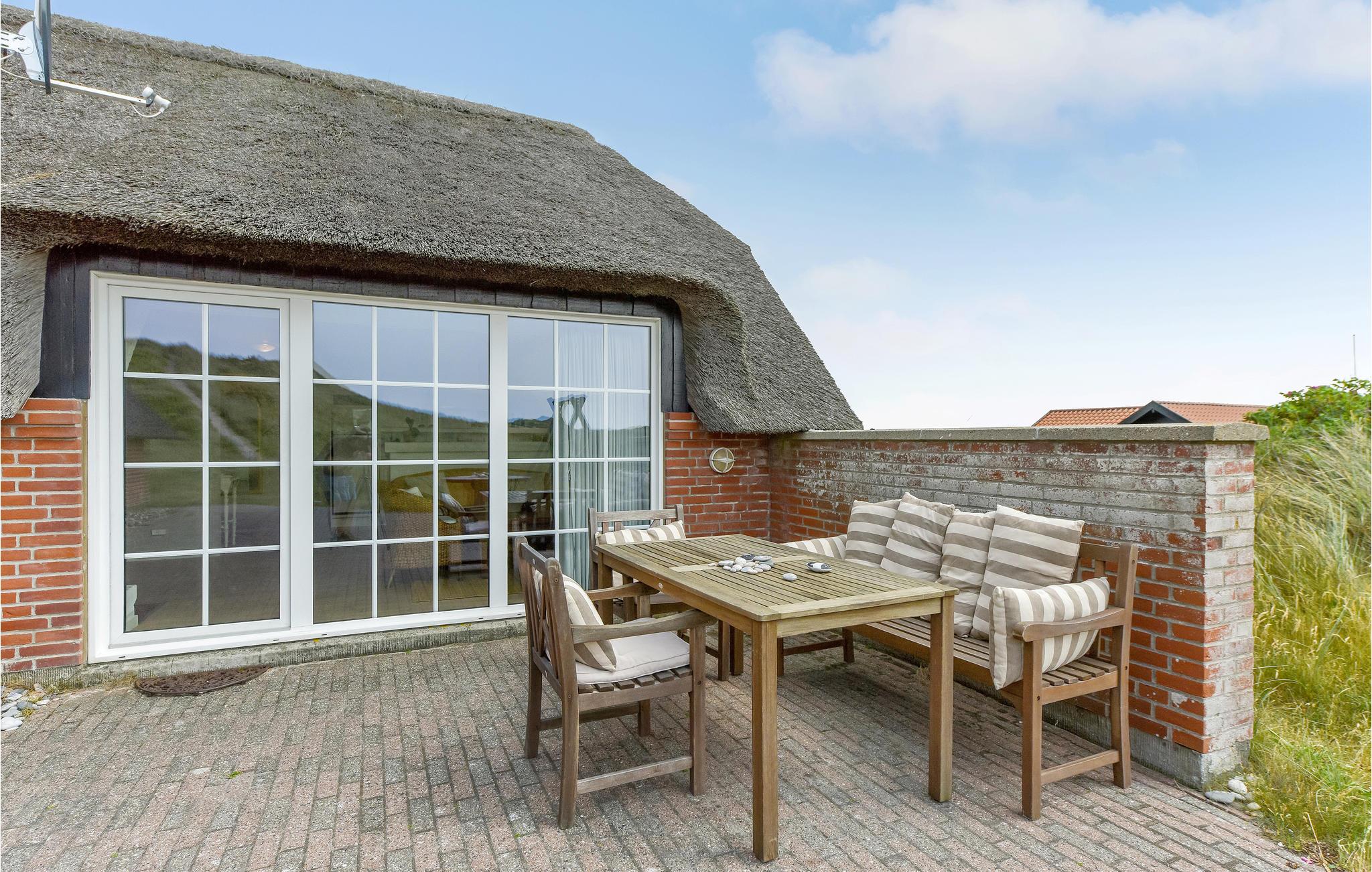 Dette hyggelige, stråtækte sommerhus er beliggende i første klitrække, op til et stort fredet areal og kun et par minuttets gang gennem klitterne til en af områdets fineste sandstrande. Sommerhuset er til otte personer og indrettet med en kombineret køkken og stue, fire soveværelser, to badeværelser samt den skønne poolafdeling med swimmingpool og sauna. Udendørs kan I nyde terrassen og udsigten til det specielle klitlandskab. På den anden side af klitterne ligger Vesterhavet, hvor stranden indbyder bl.a. til leg, afslapning, en dukkert, drageflyvning og lange gåture, og måske er I endda så heldige at finde rav.