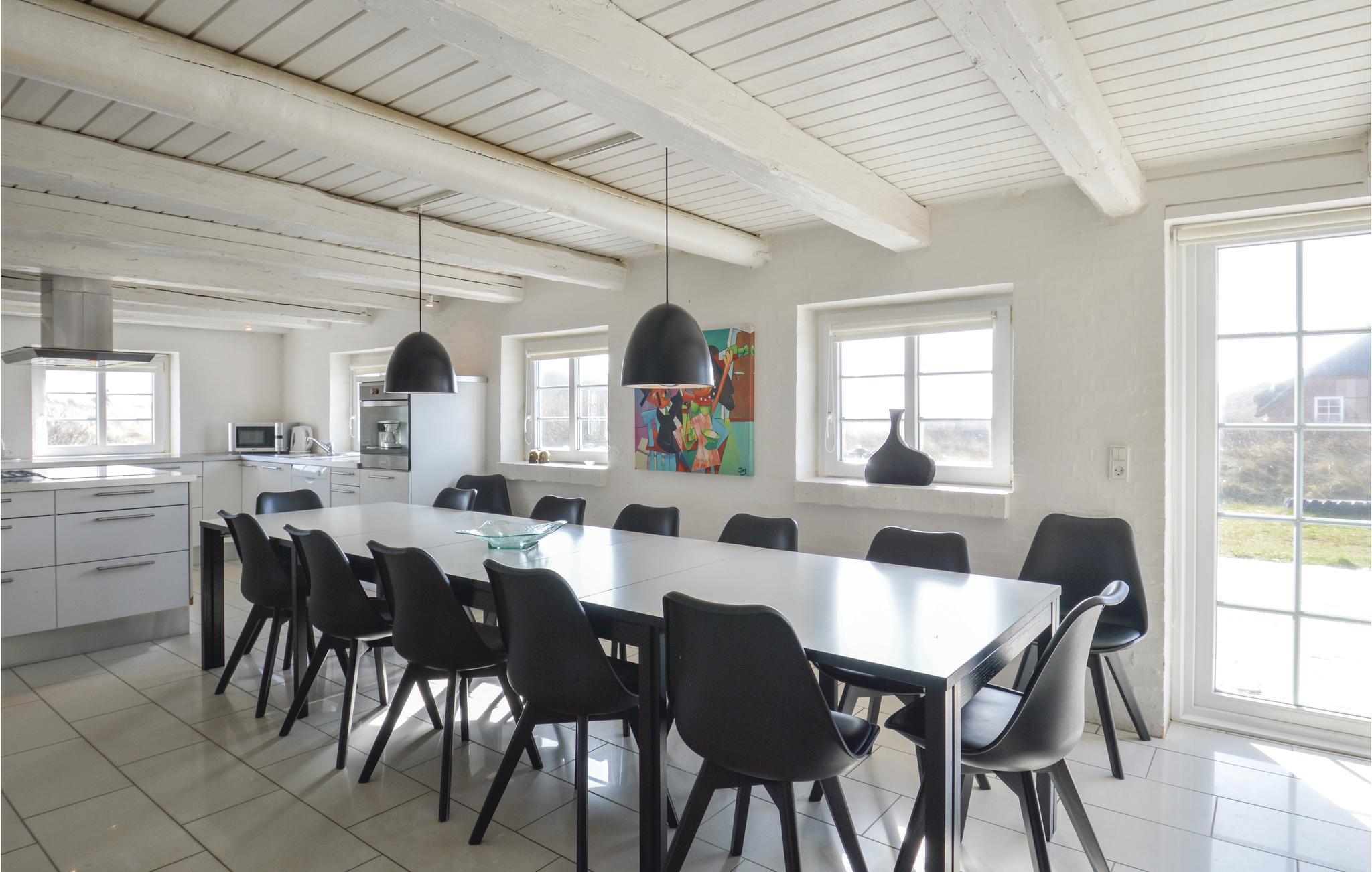 Kun 200 m fra en af vestkystens bedste badestrande ved Klegod, ligger denne drøm af et sommerhus med plads til den helt store familie. Det flotte sommerhus på intet mindre end 230 m² er bygget i traditionel klitgårdsstil, og falder godt ind i landskabet med det karakteristiske stråtag. Huset byder på alt, hvad I kan forestille jer til en luksusferie. En af de største attraktioner er nok den lyse, store poolafdeling, som inviterer til sjov, leg og afslapning. I stueetagen finder I det store lyse køkken i åben forbindelse til den store stue med plads til alle. Derudover er der i stueetagen tre soveværelser samt badeværelse med brus. På 1. sal finder I yderligere fire soveværelser, hvoraf der fra det ene er adgang til endnu et badeværelse med bruser og sauna. Det ene soveværelse er meget rummeligt og perfekt til børnene eller teenagerne, værelset er specielt indrettet med seks gode kvalitetsmadrasser, der er placeret som i en alkove på værelset. Fra husets fine, store terrasse er der udsigt til klitterne og hedelandskabet.