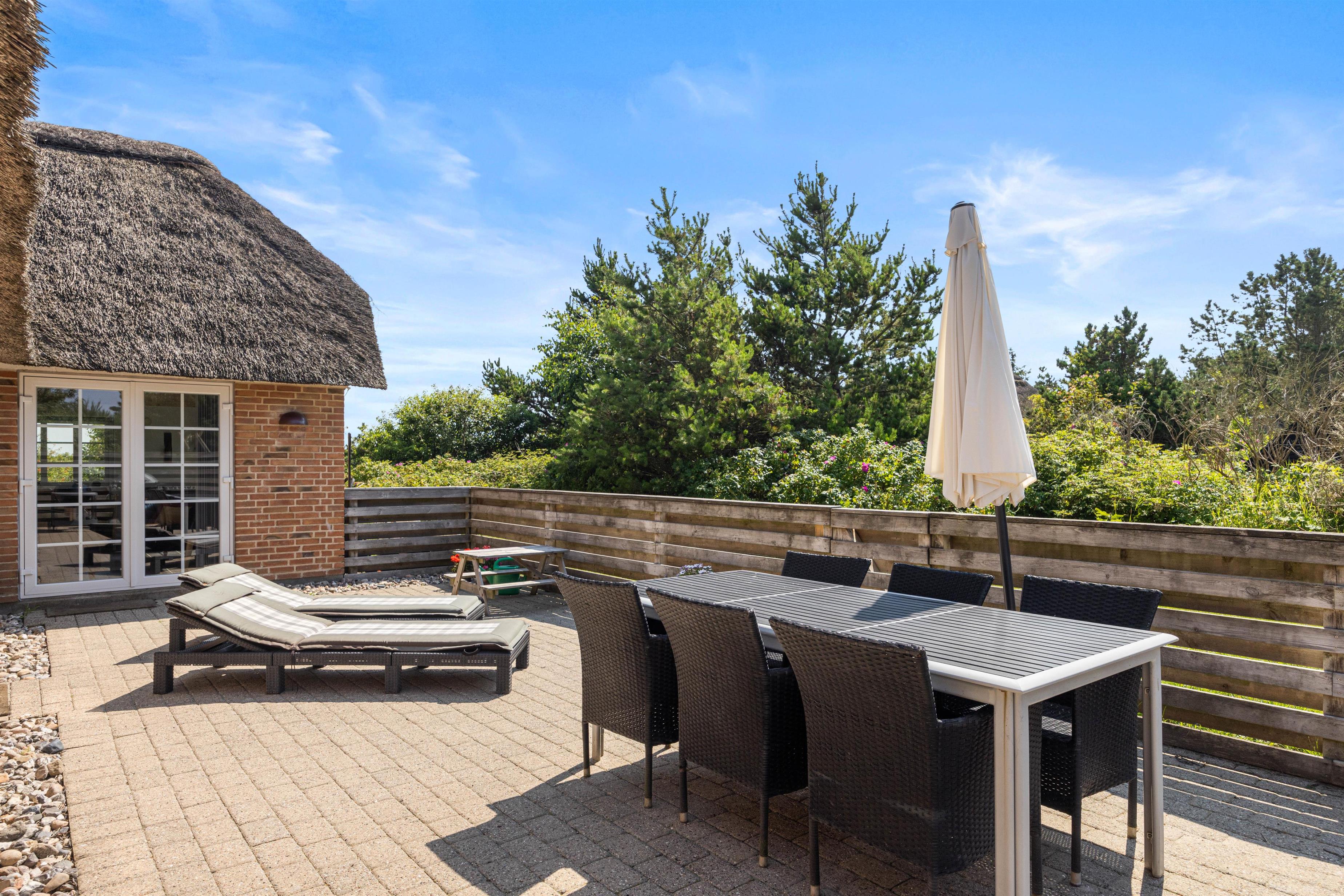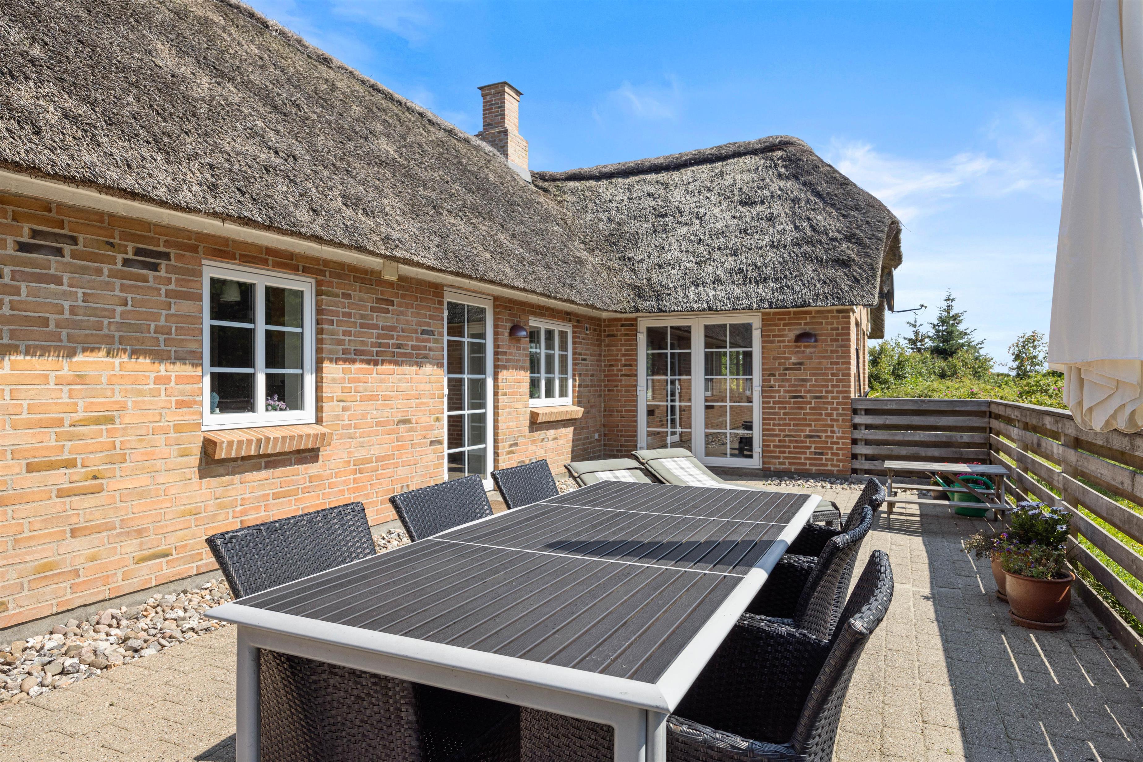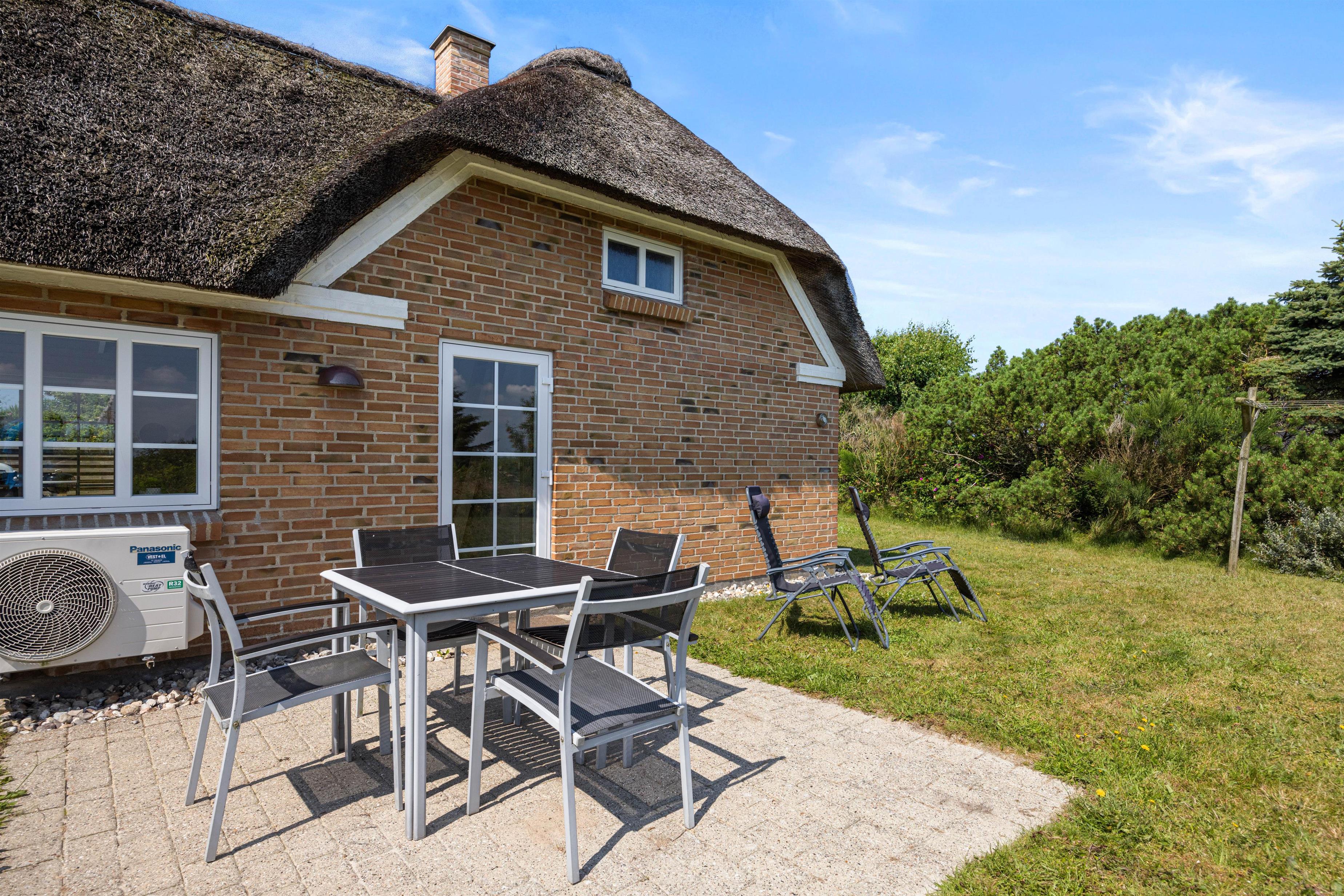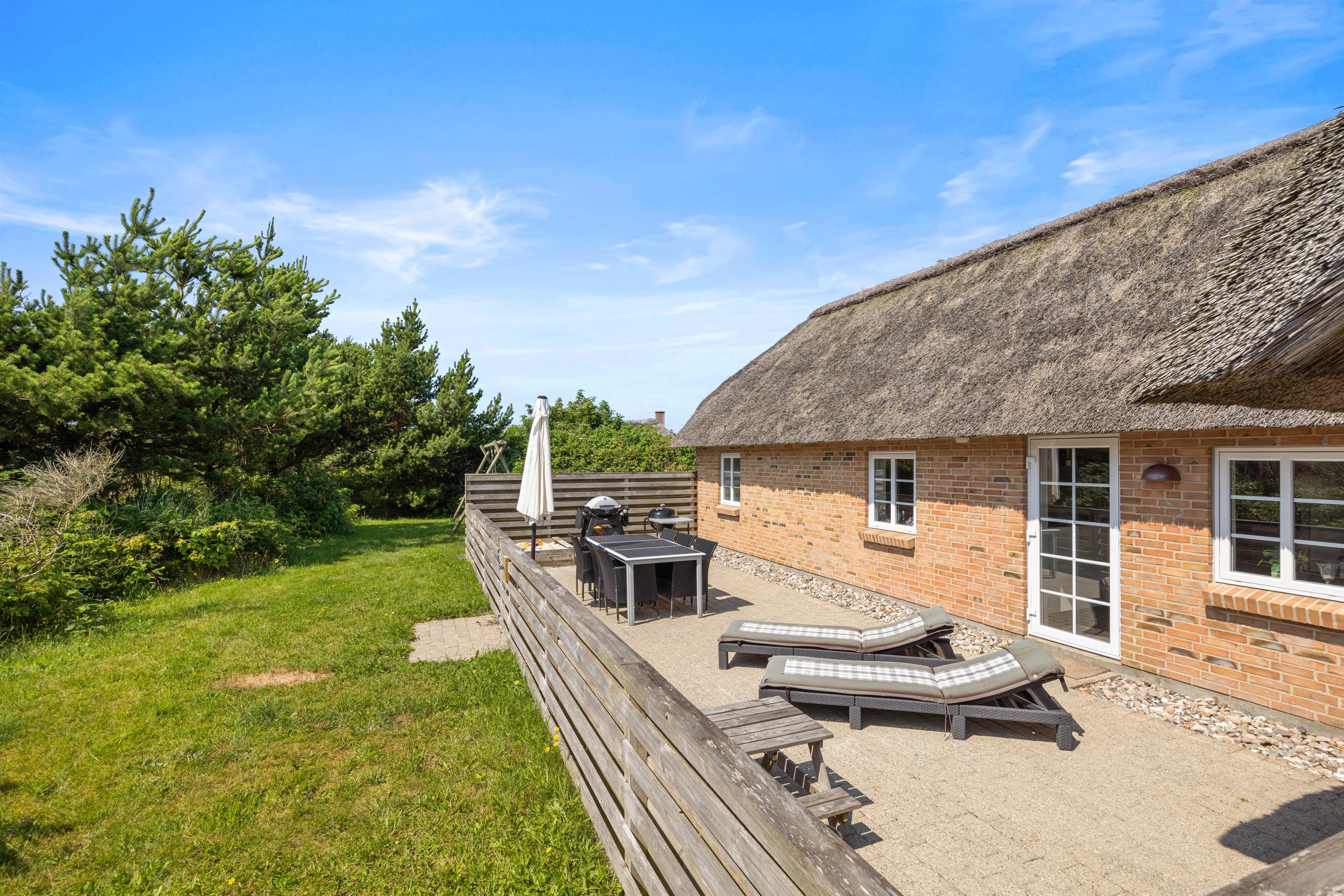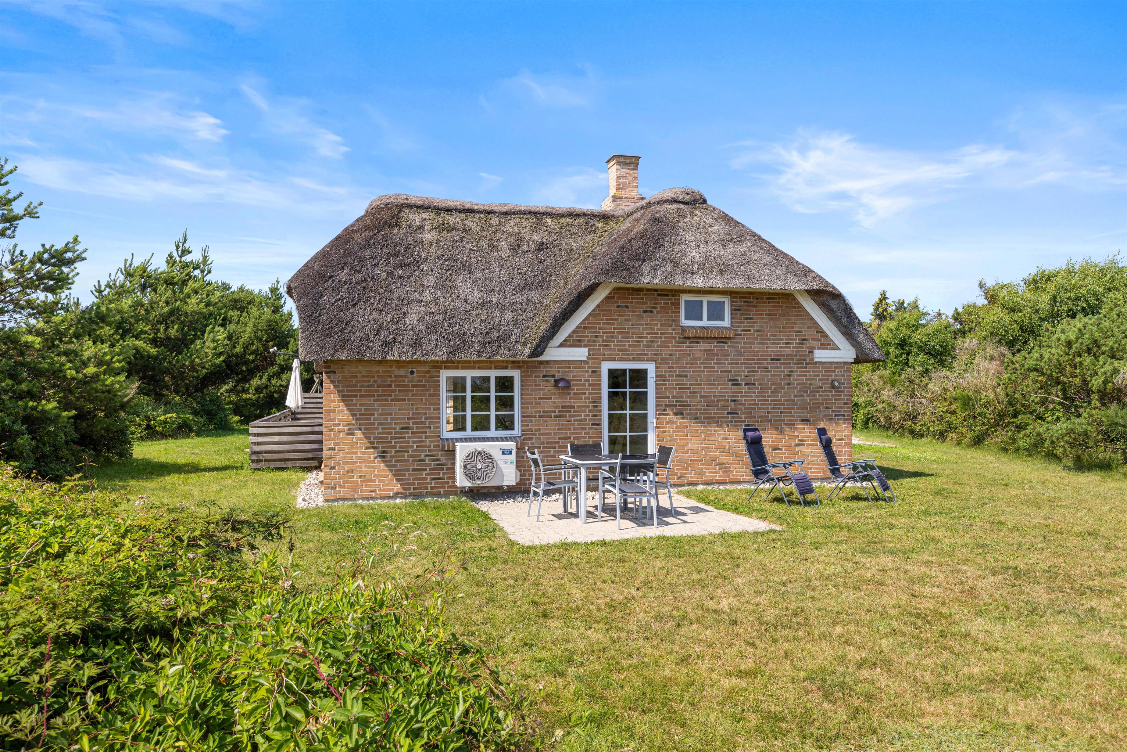 I dette hyggelige sommerhus med stråbelagt tag kan der bo 6 personer. Sommerhuset har både spa og sauna samt en dejlig lukket terrasse. Mod øst kan I nyde udsigten til smukke Ringkøbing Fjord, hvortil I også kan tage på udflugt.