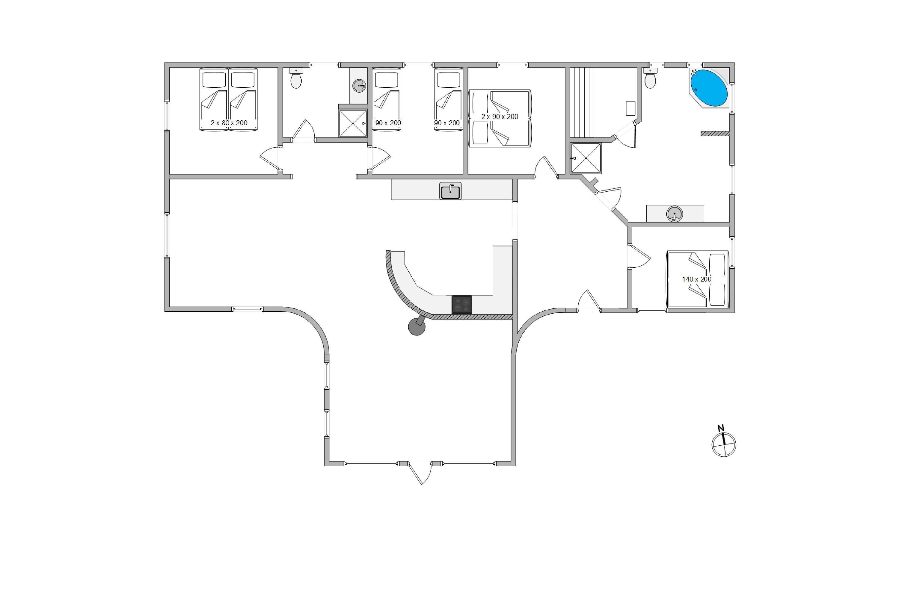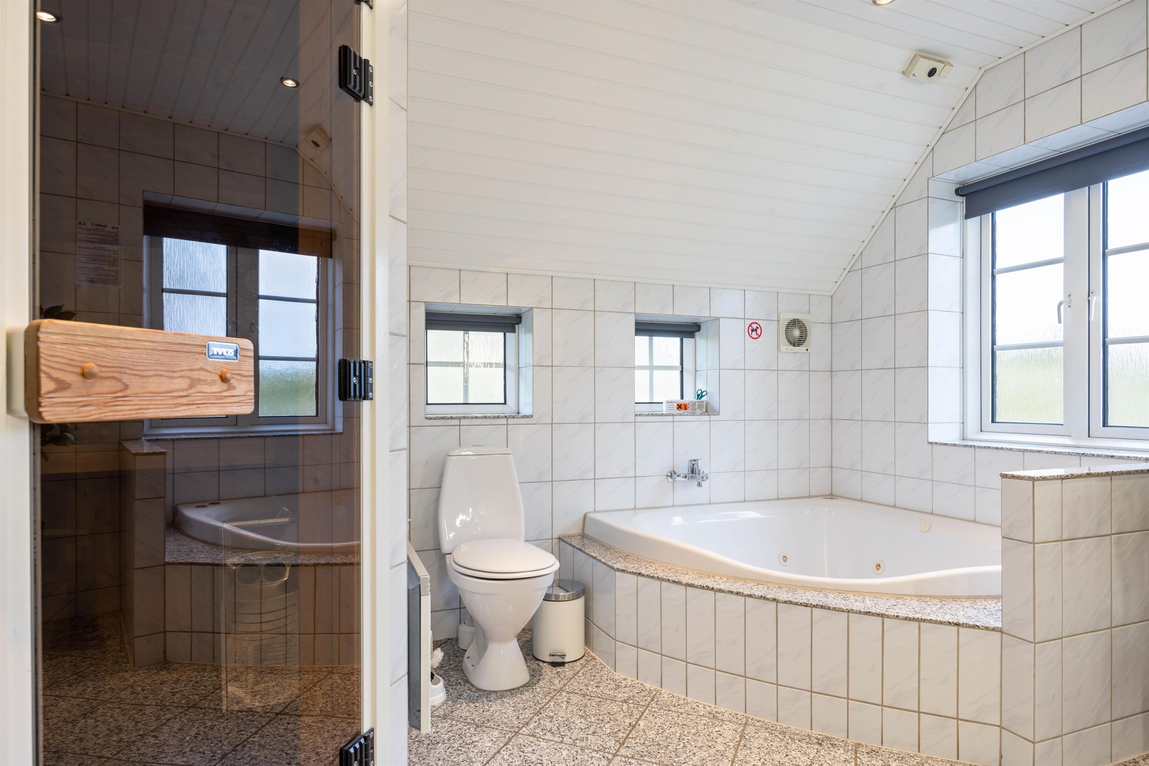 Er I en stor familie eller to mindre, så værdsætter alle, at der er 2 badeværelser. Børn og unge vil hygge sig med husets spa, og de voksne sætter pris på saunaen, især efter en lang travetur langs stranden og Vesterhavet – dette er ægte ferie og helse for krop og sjæl.