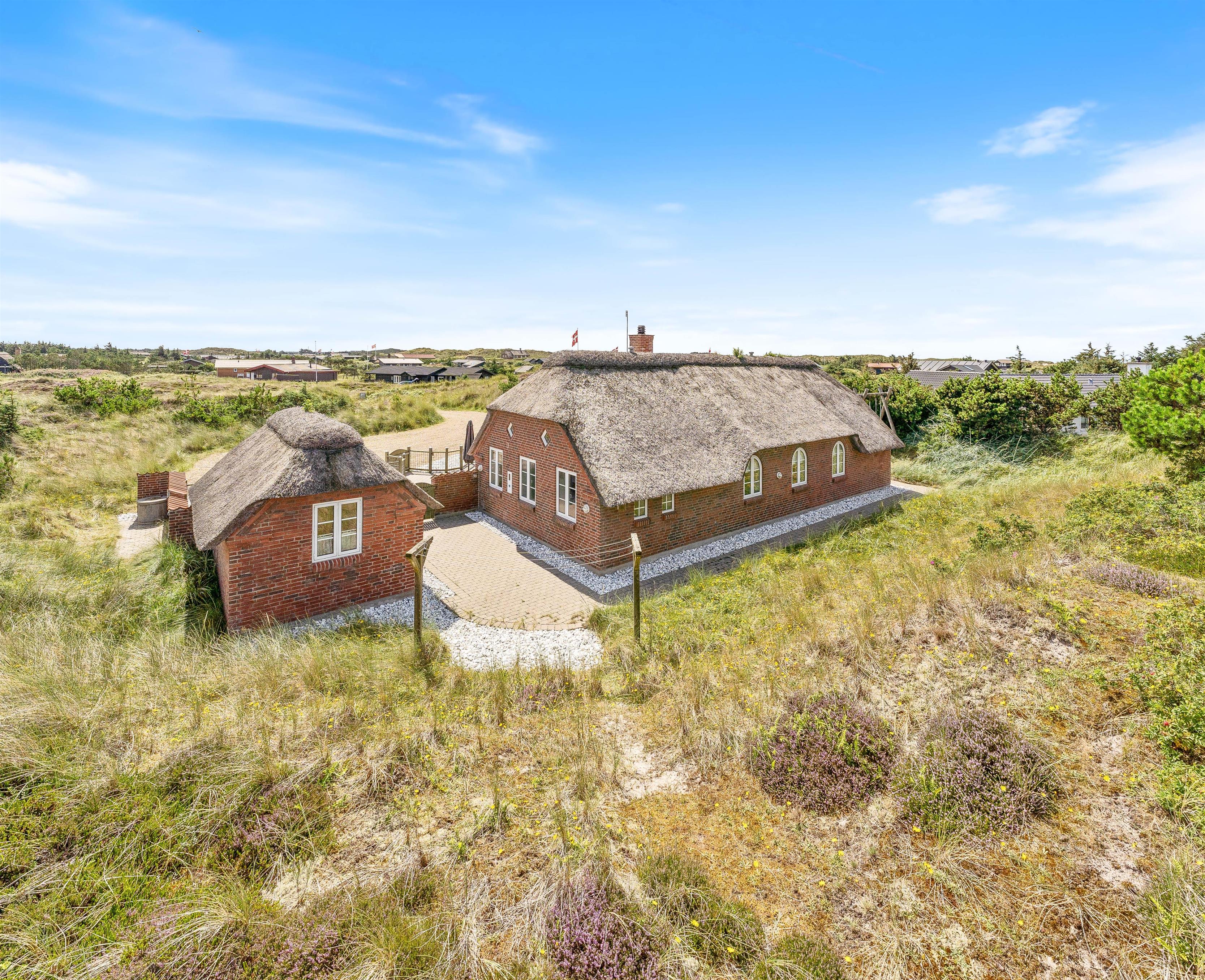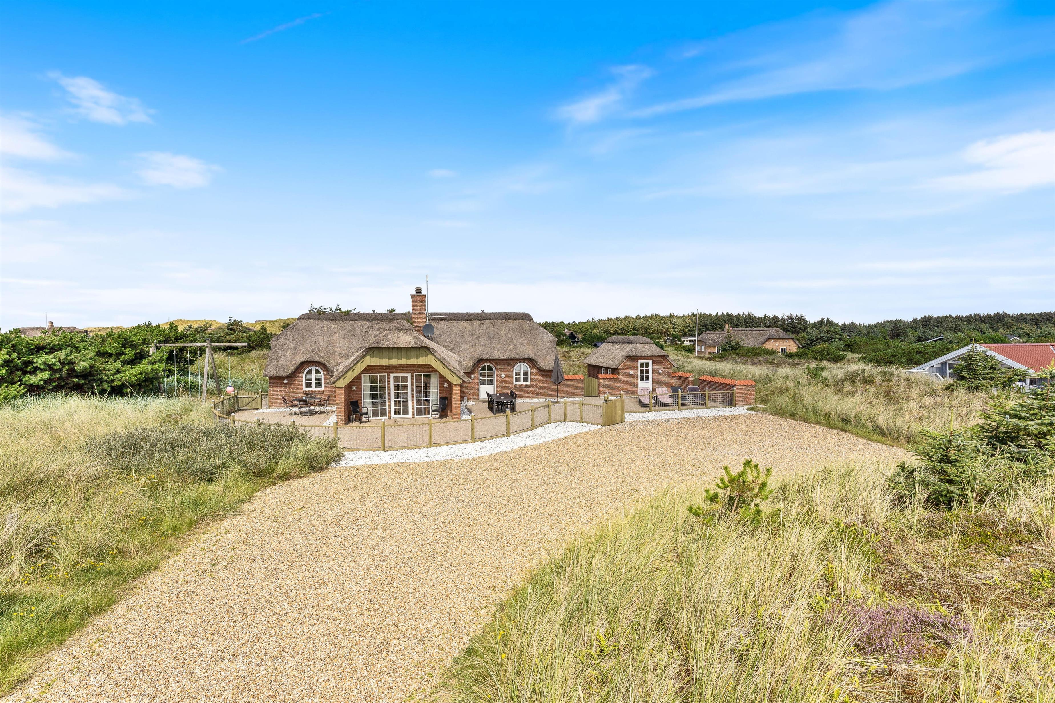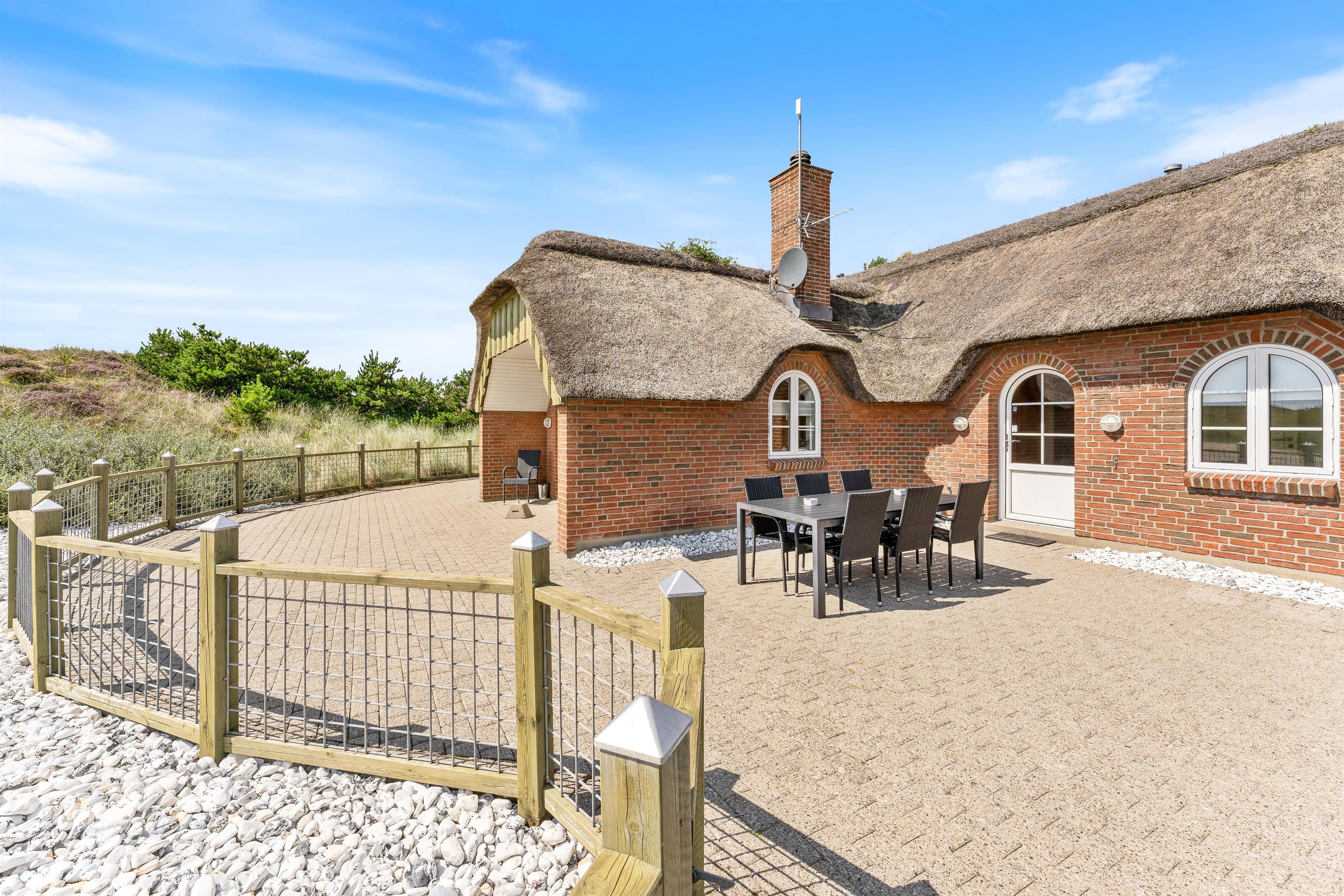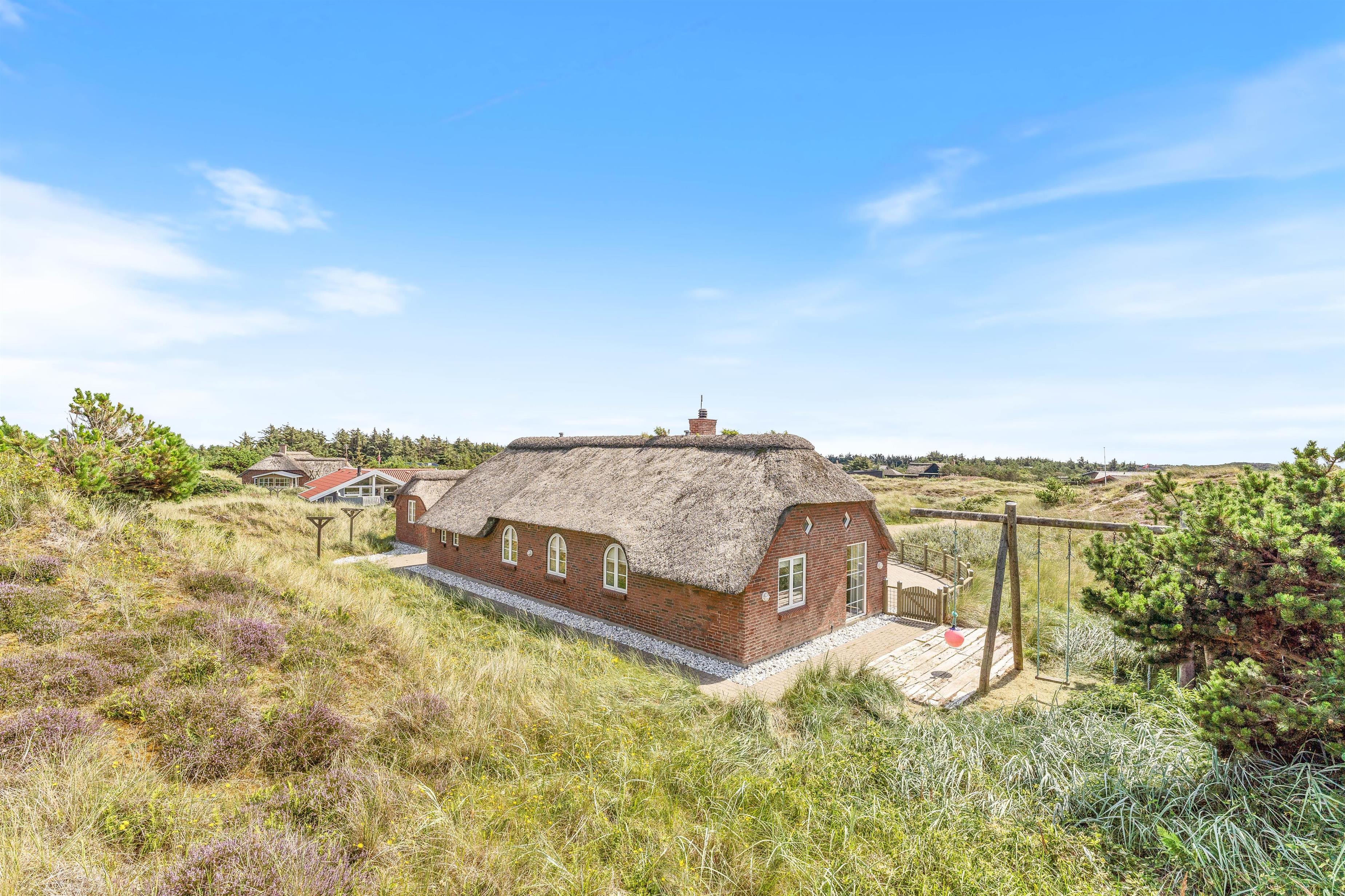 Et godt og velholdt feriehus i Klegod, ikke langt fra Vesterhavet og beliggende på en fredfyldt og lettere kuperet naturgrund. Der er en stor lukket terrasse til huset, perfekt for de familier som har mindre børn eller hund med. De lidt større børn kan hygge sig med at gynge eller lege i sandkassen, mens de voksne tænder op i den store grill på terrassen. Huset bygget i mursten og med stråtag emmer bare af ferie ved Holmsland Klit.