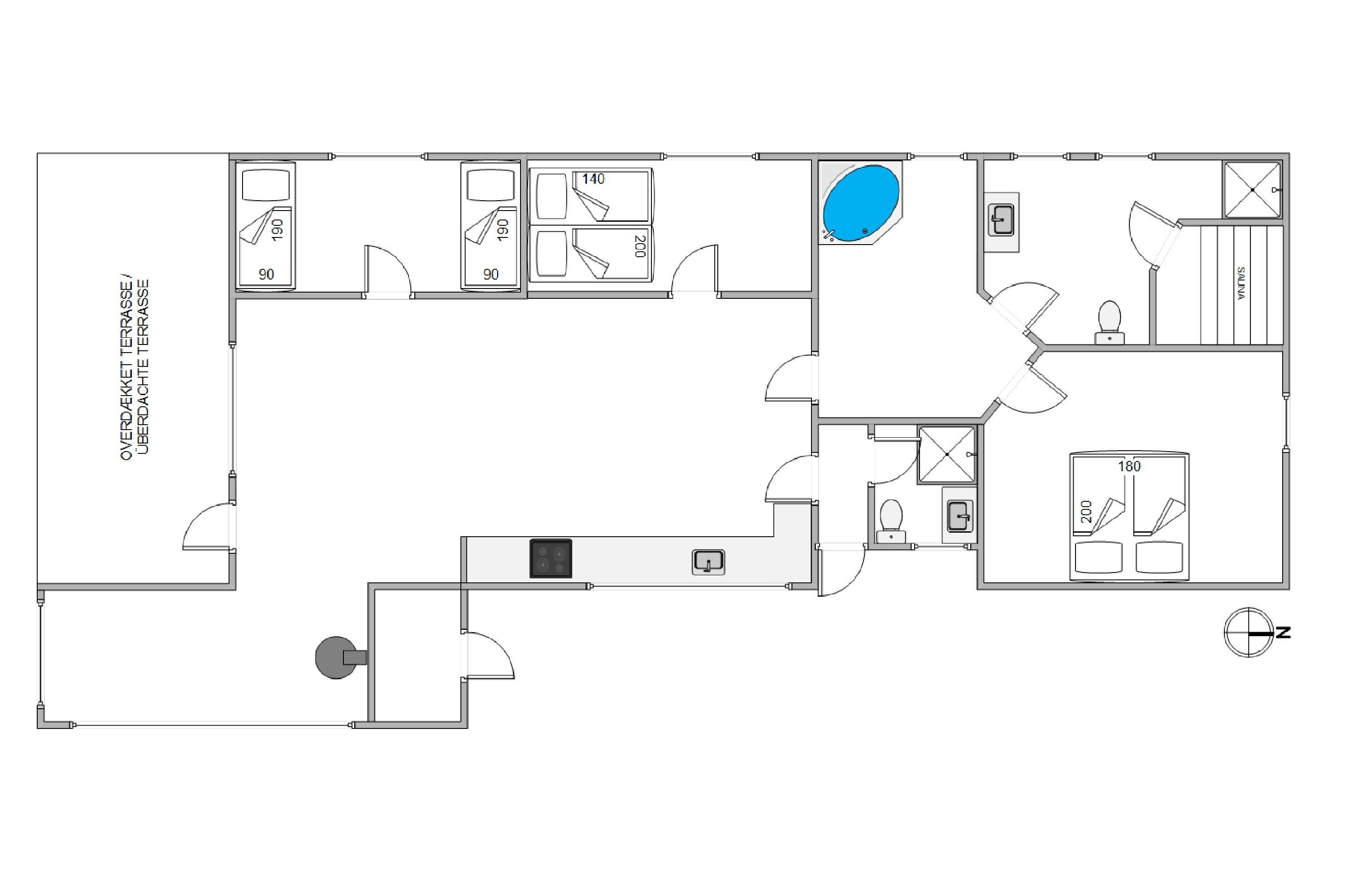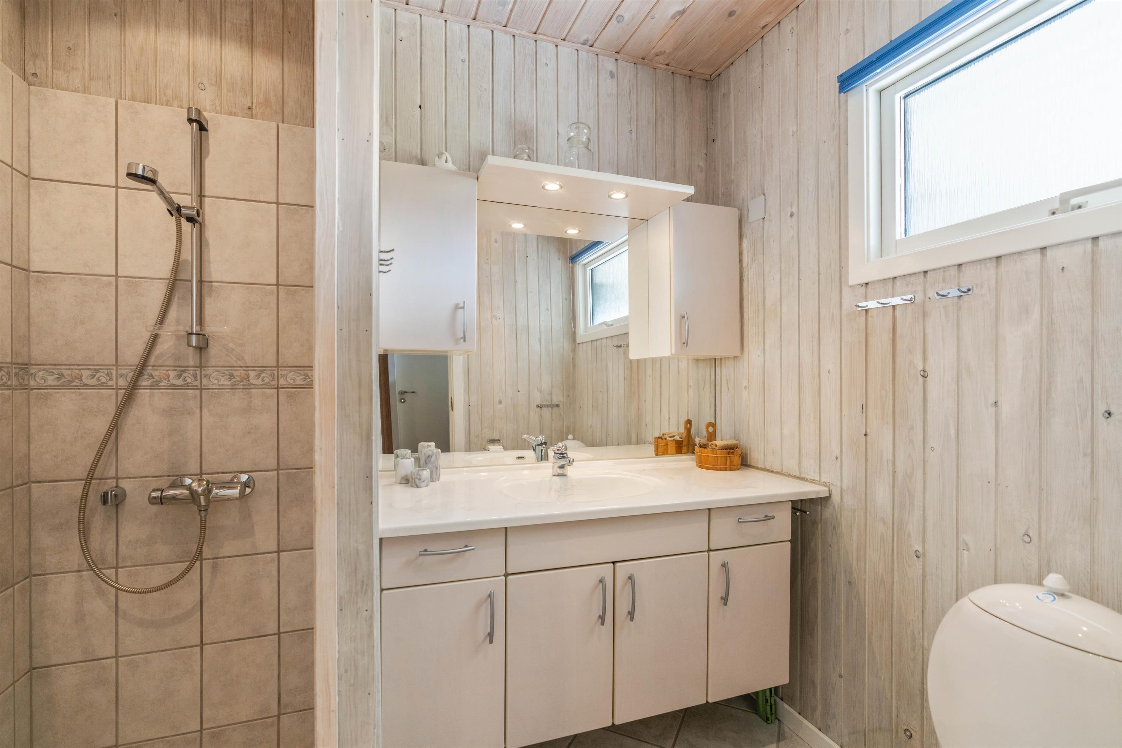 Der bliver ikke kø ved toiletterne, når I indlogerer jer på Havklitvej 1. Her er nemlig 2 badeværelser med opvarmet flisegulv. Det ene badeværelse ligger i forbindelse med saunaen og husets skønne spabad. Sparummet er en ren velværeoplevelse i sig selv og er indrettet med hyggelige kurvestole, så I kan opholde jer sammen derude, selv hvis enkelte af familiens medlemmer ikke ønsker at dyppe tæerne.