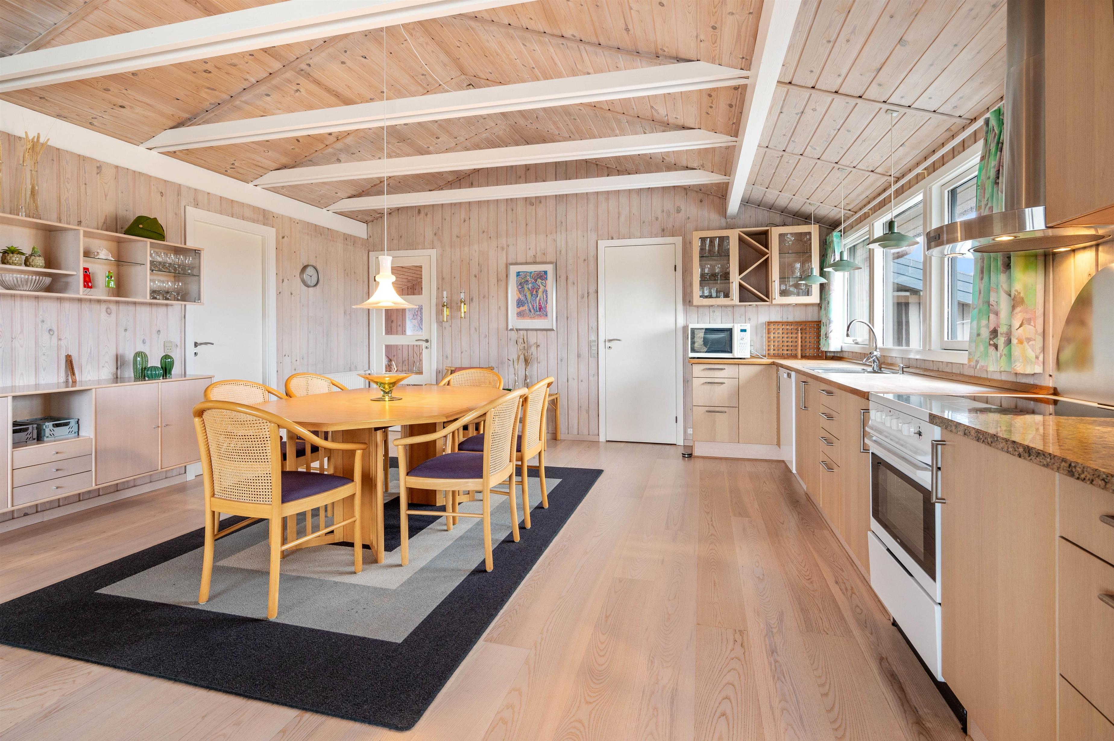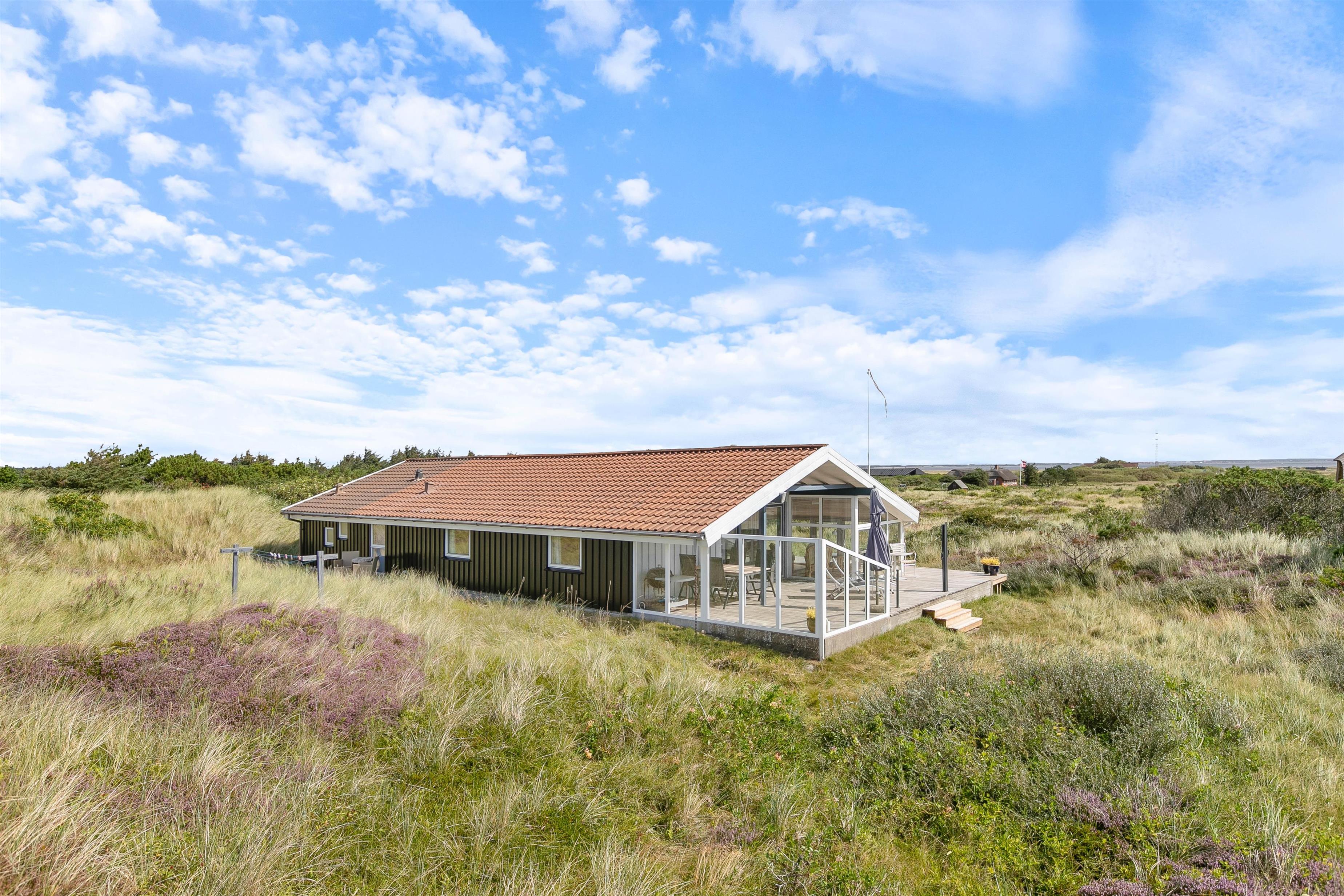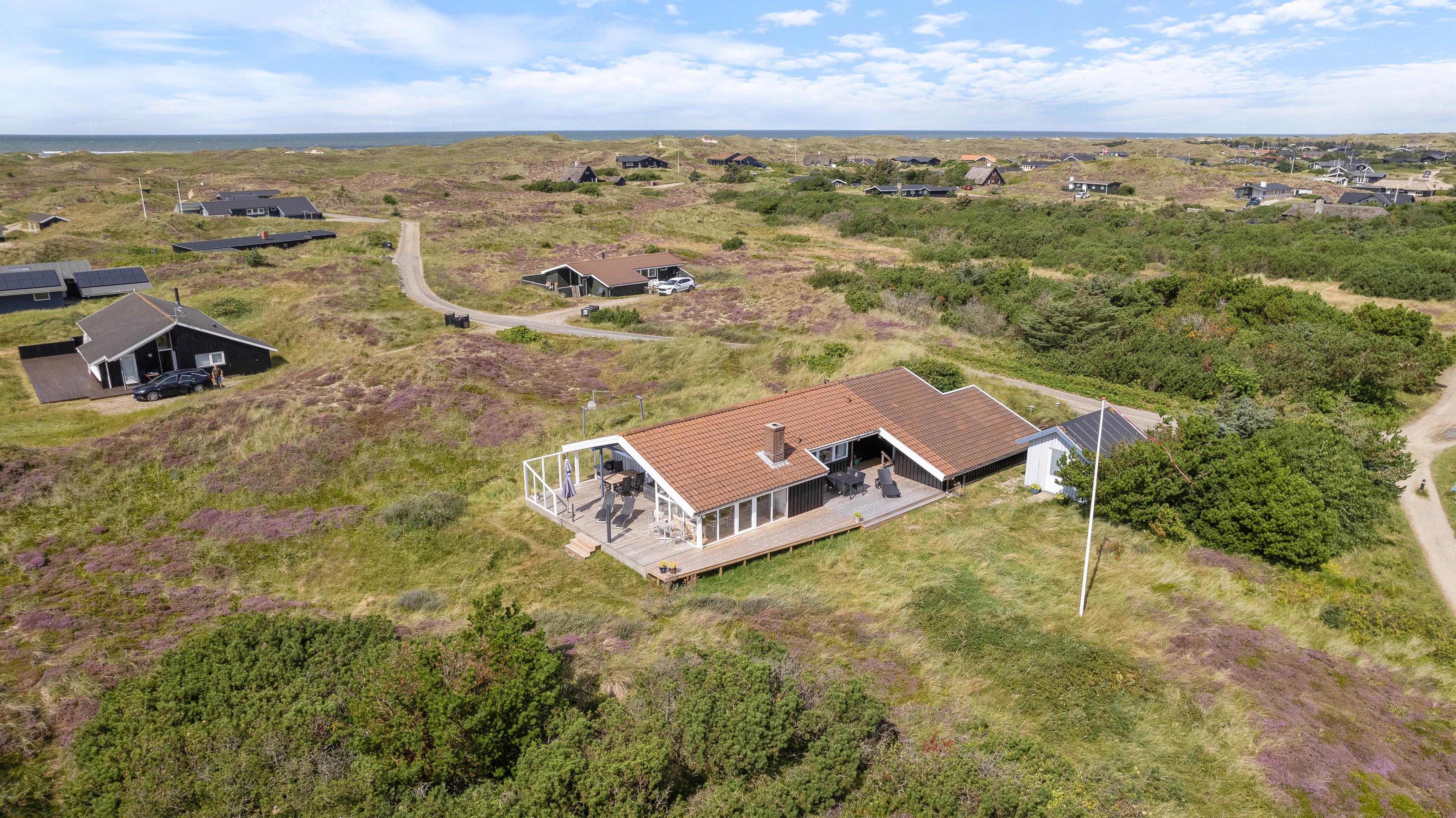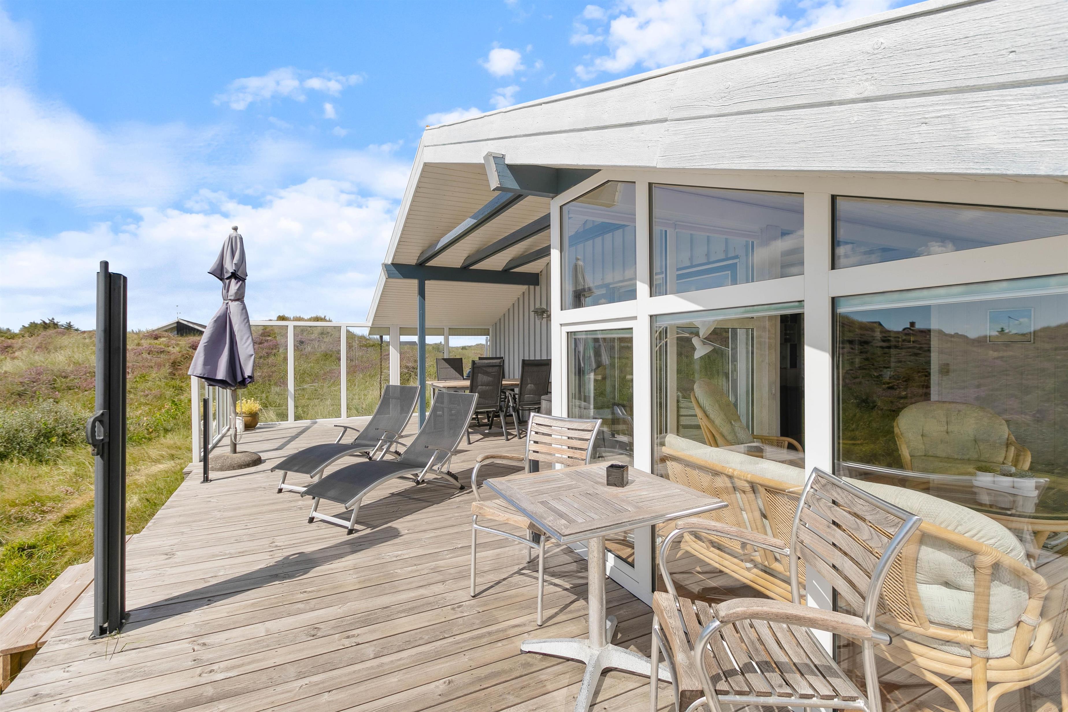 Men I behøver ikke bevæge jer udenfor for at nyde naturen helt tæt på. Sommerhuset er udstyret med en fantastisk udestue, der ovenikøbet er opvarmet med brændeovn. Udestuen består af store vinduer, hvorfra lyset strømmer ind i rummet. I vil uden tvivl føle, at I på det nærmeste kan række ud og mærke sandet mellem fingrene.