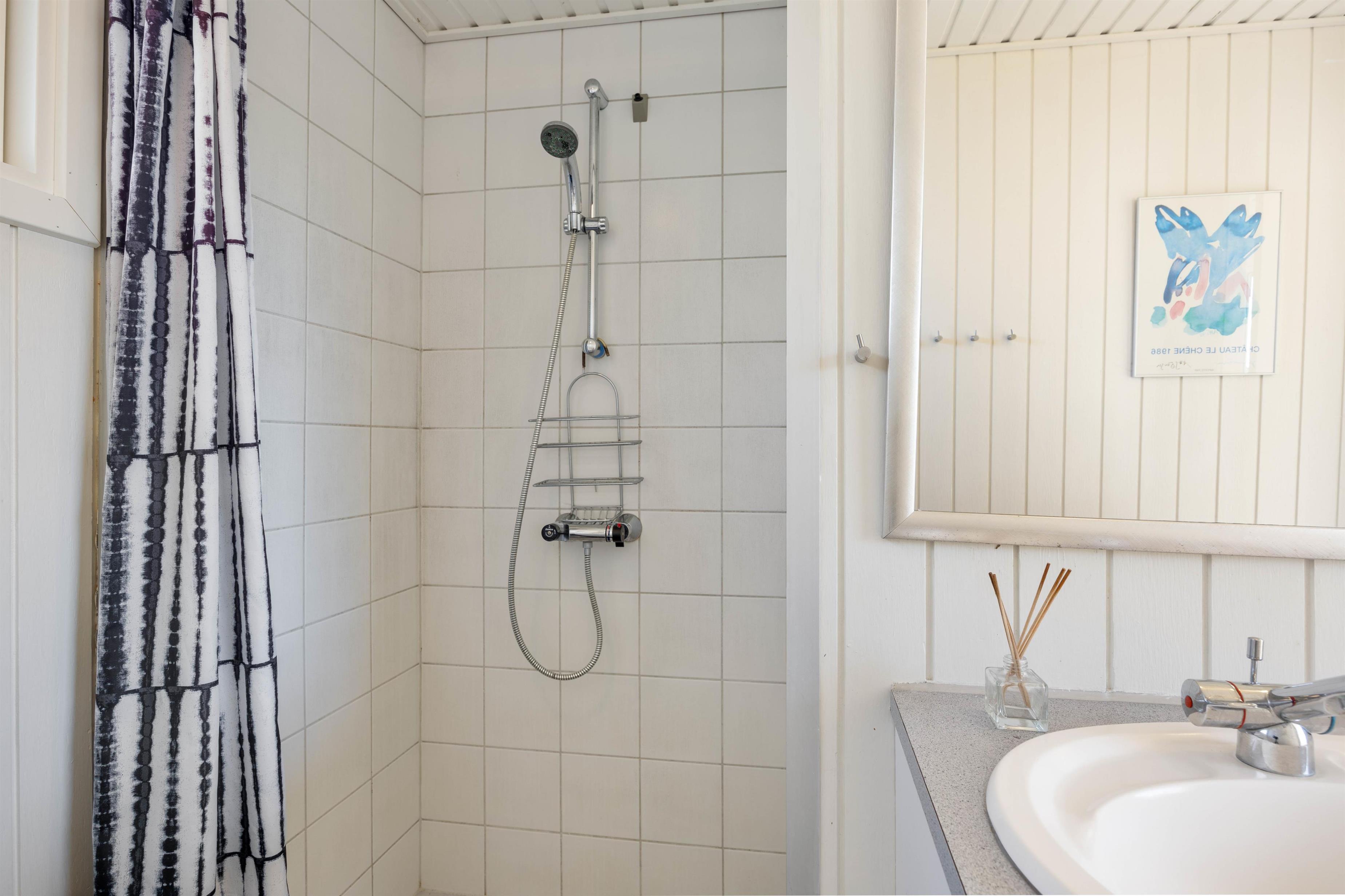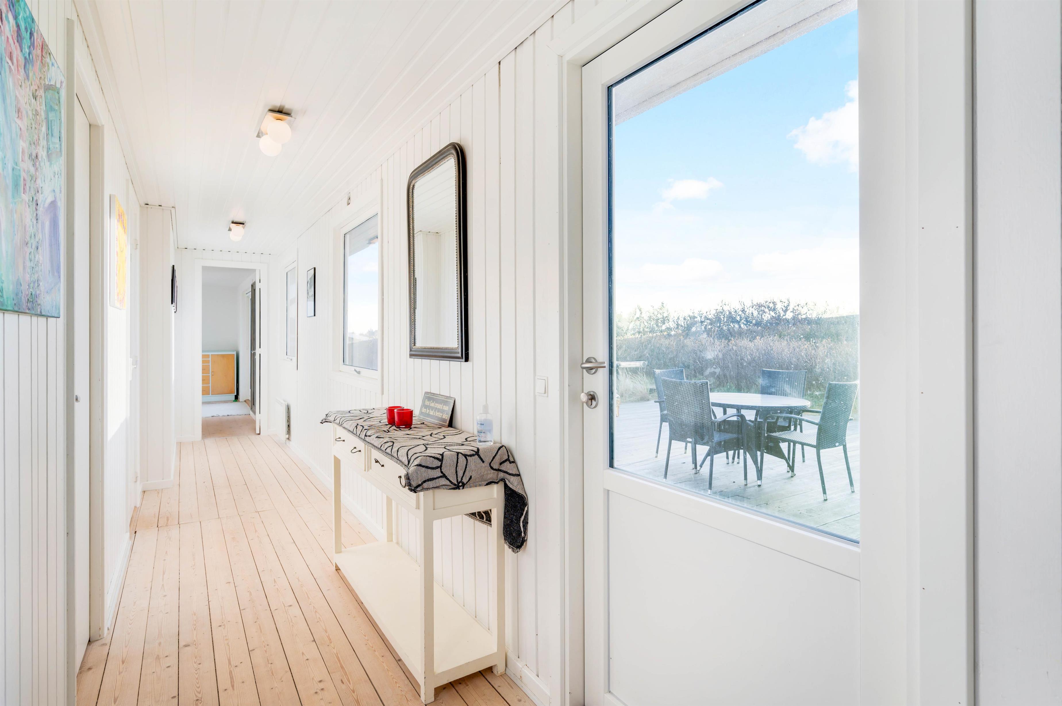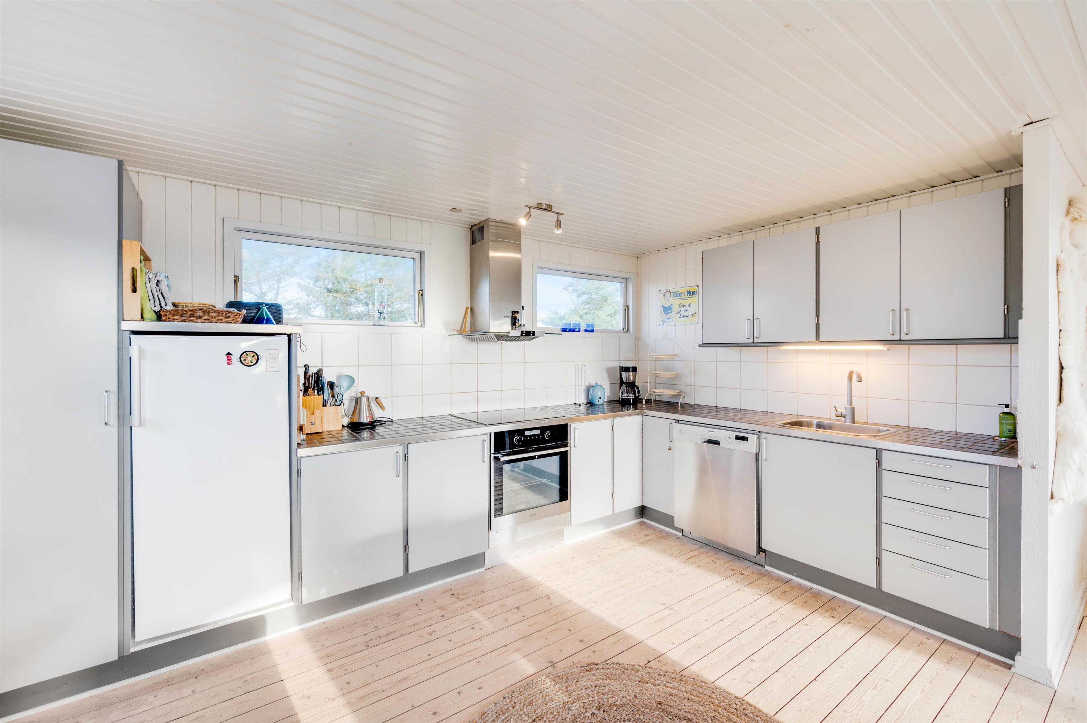 Dette sommerhus byder jer velkommen med den hyggelige indretning, hvor brændeovnen sørger for den sidste feriestemning. Fra det store vinduesparti i stuen får I både et dejligt lysindfald fra solens stråler og ikke mindst udsigt til det smukke klitlandskab. Derudover har sommerhuset 3 soveværelser og hele 2 badeværelser, hvor det ene er med gulvvarme. I kan være sikker på, at der ikke bliver kø om morgenen, og hvis I er to familier, kan hver familie have deres eget badeværelse.