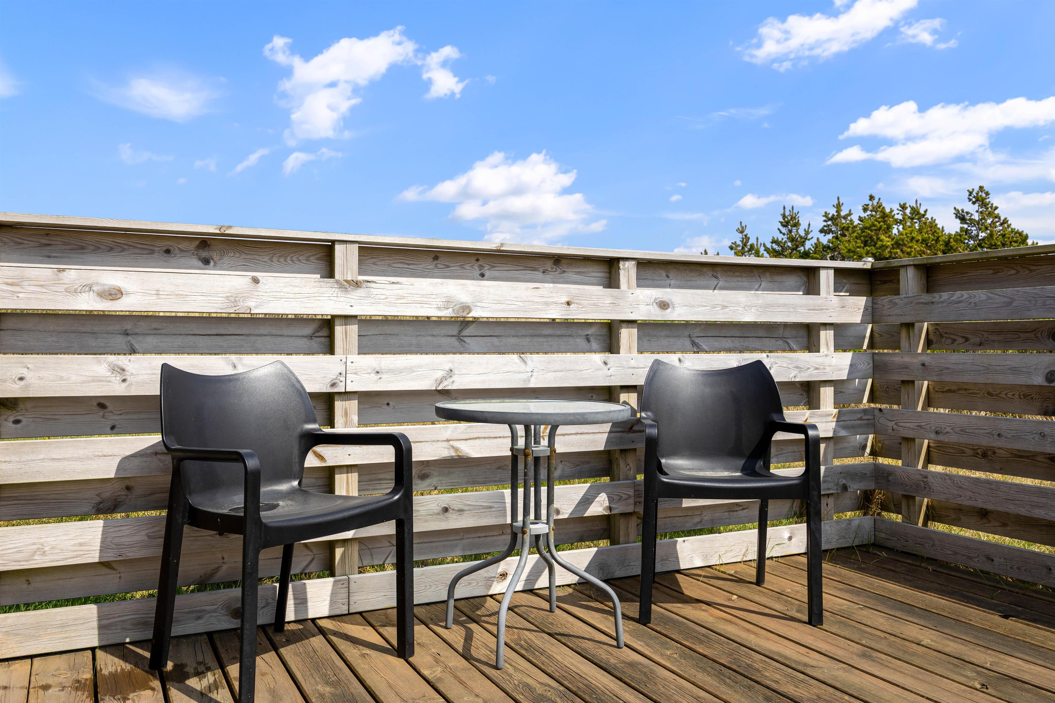 Der findes også her en afskærmet terrasse, hvor man kan nyde vejret med en god kop kaffe.