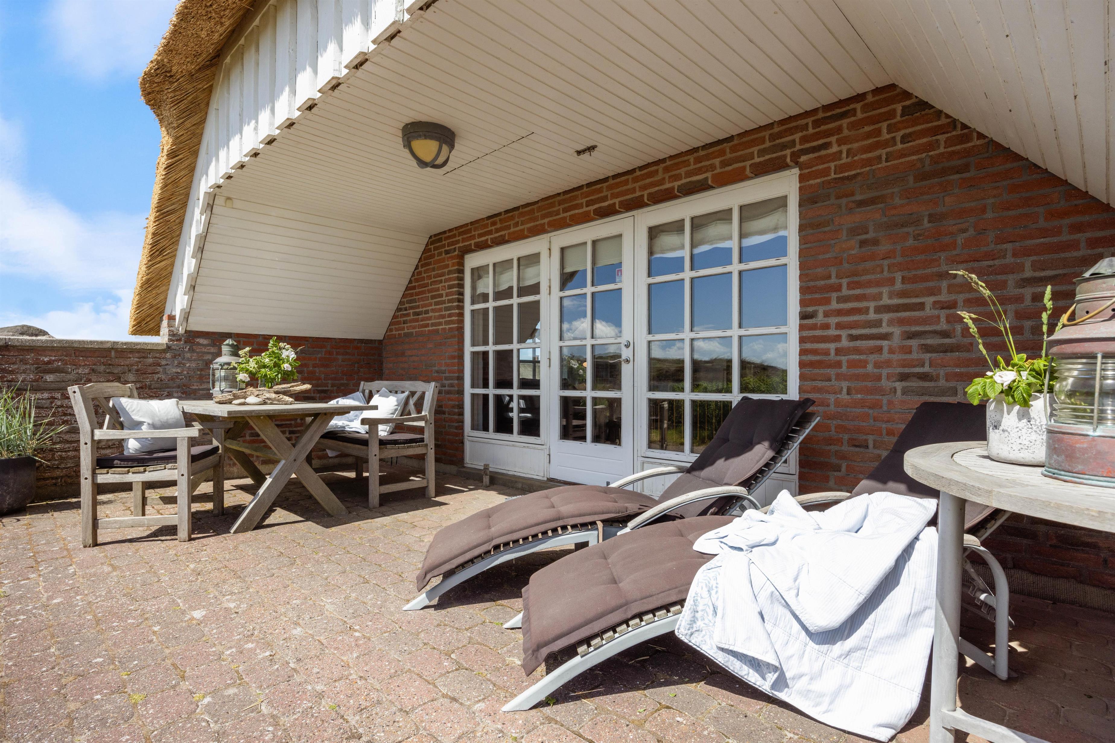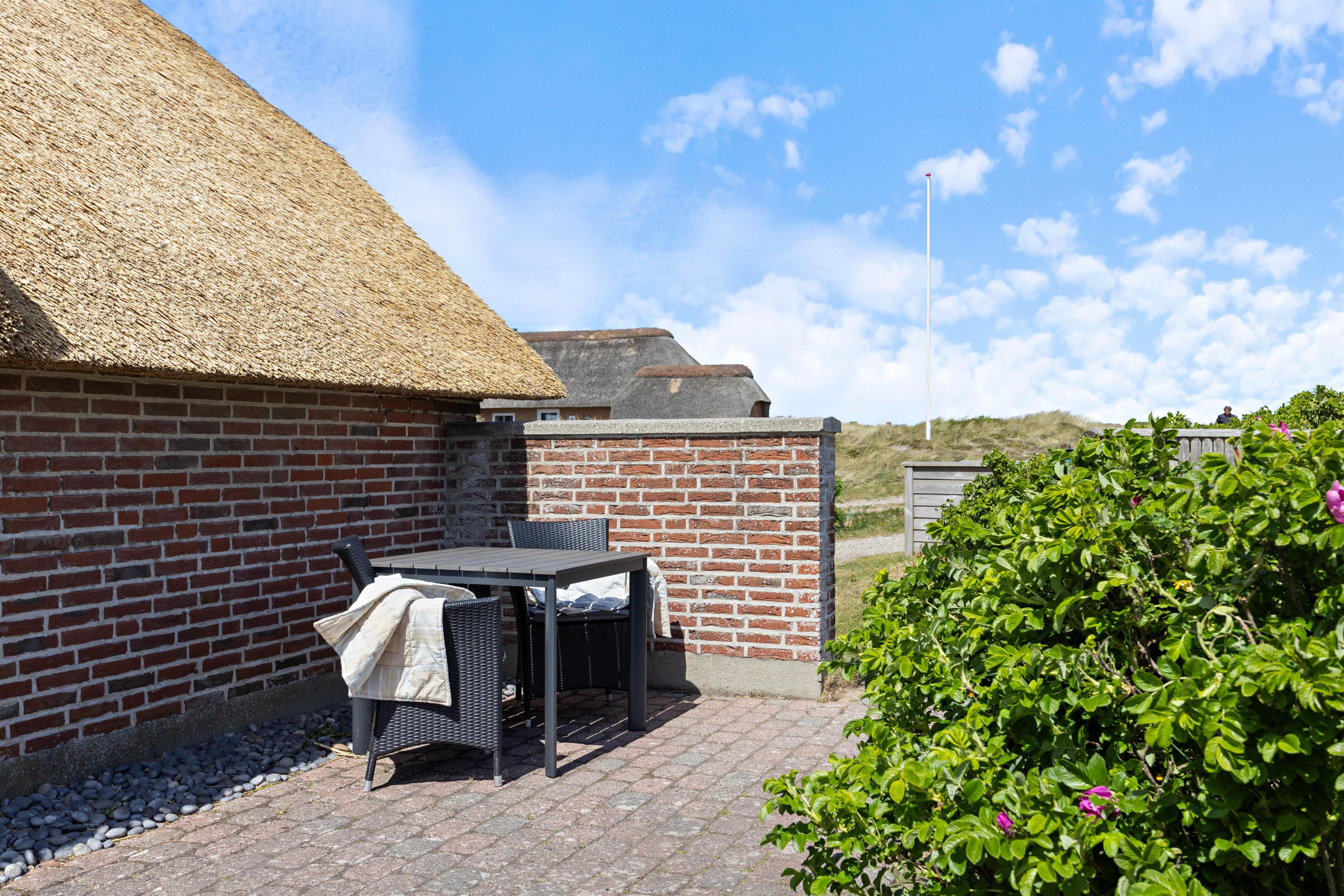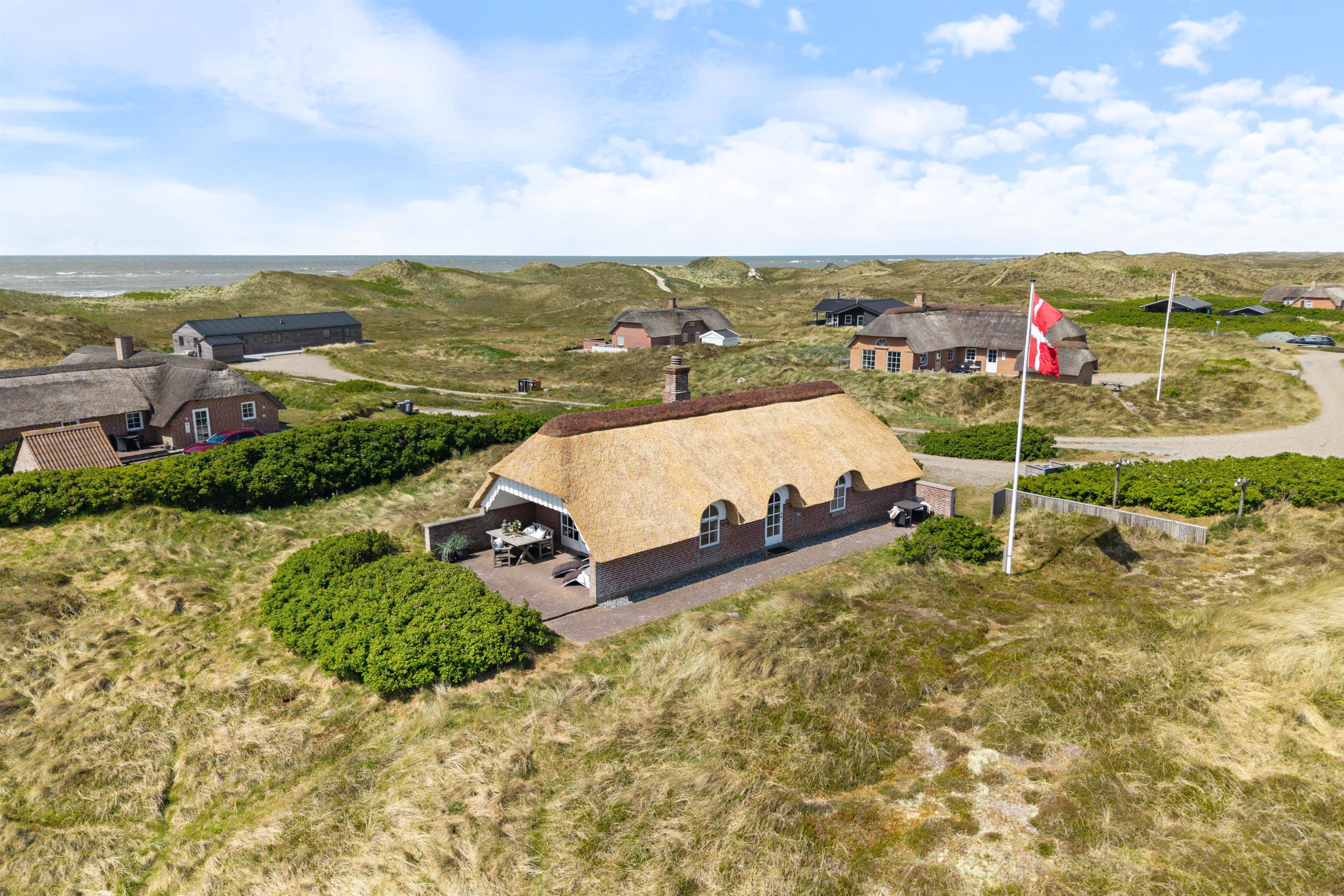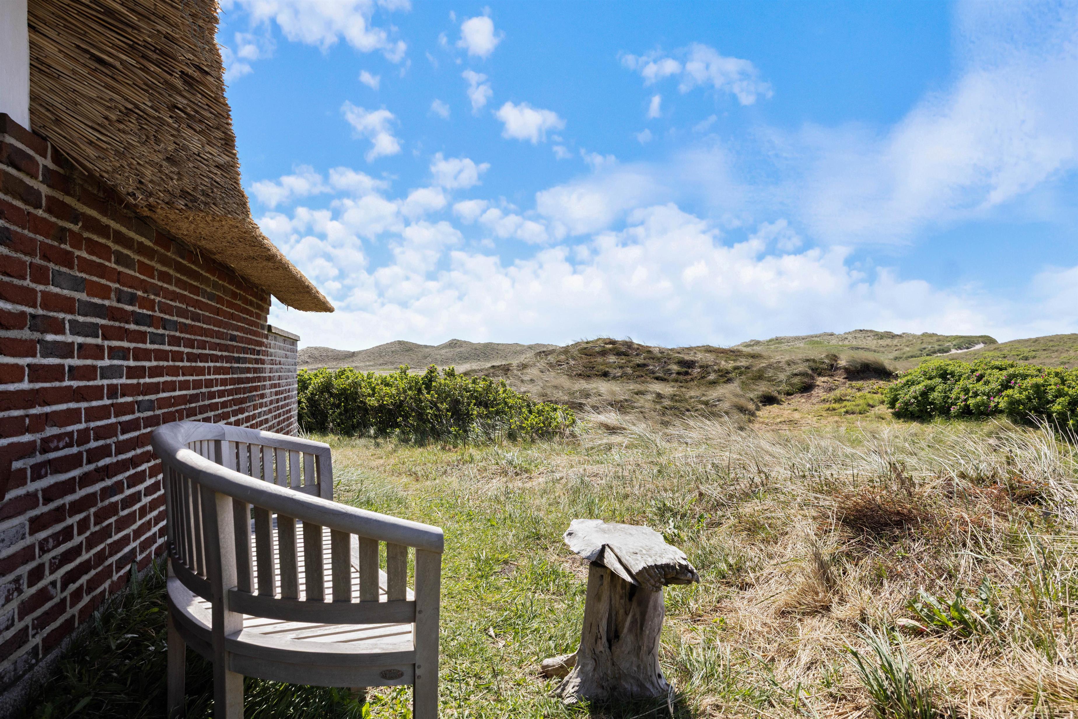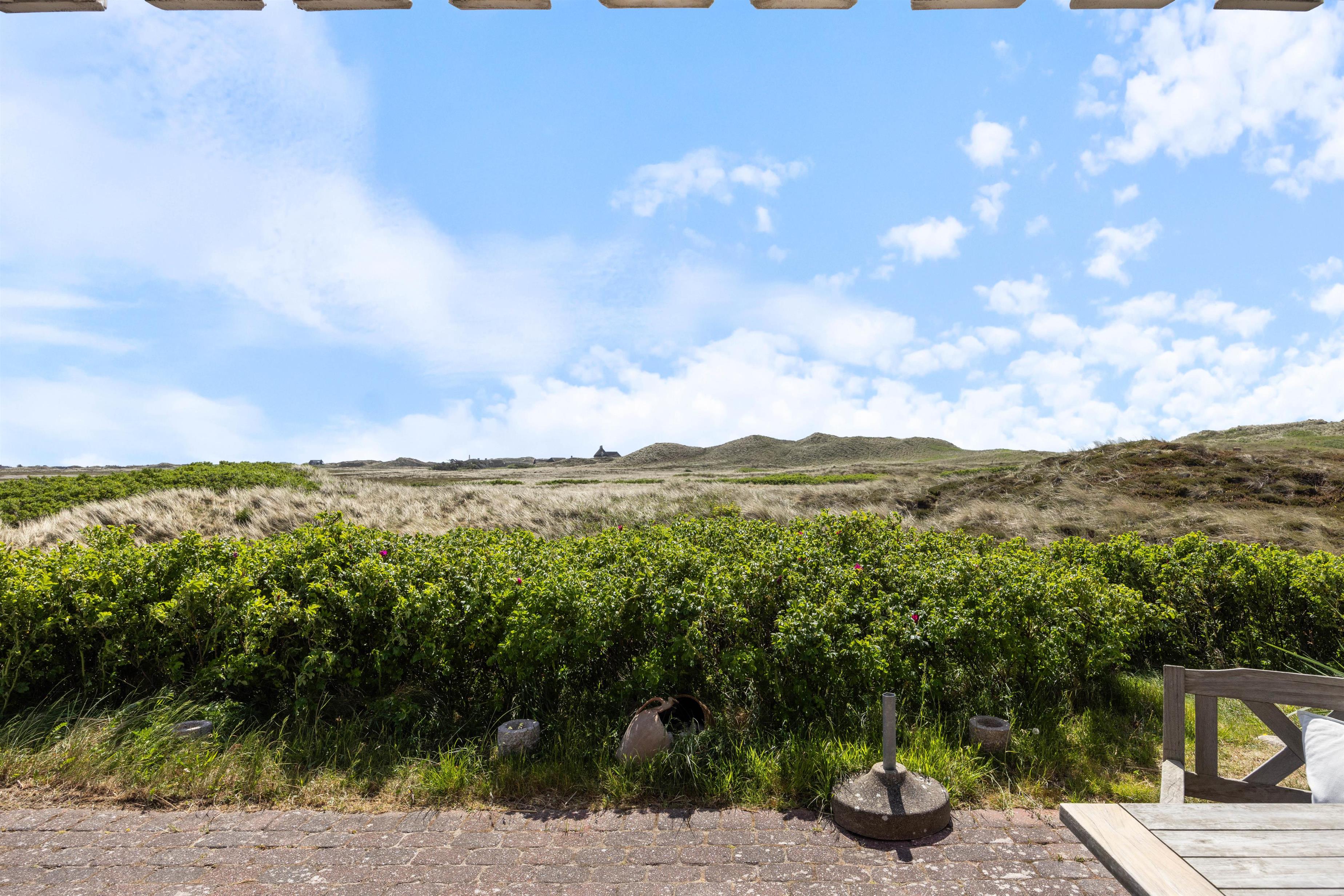 Både fra stuen og især fra den sydvendte terrasse er der en smuk og fantastisk panoramaudsigt over det smukke klitlandskab mod syd og mod vest. Her er det marehalmsklædte klitområde helt fredet, hvilket er et smukt syn og så er det samtidigt fredfyldt. At vågne op med åbent vindue i soveværelset er ubeskriveligt, bruset fra Vesterhavet høres, og vindens susen i marehalmen og den frisk luft i kombination er en skøn start på en feriedag.