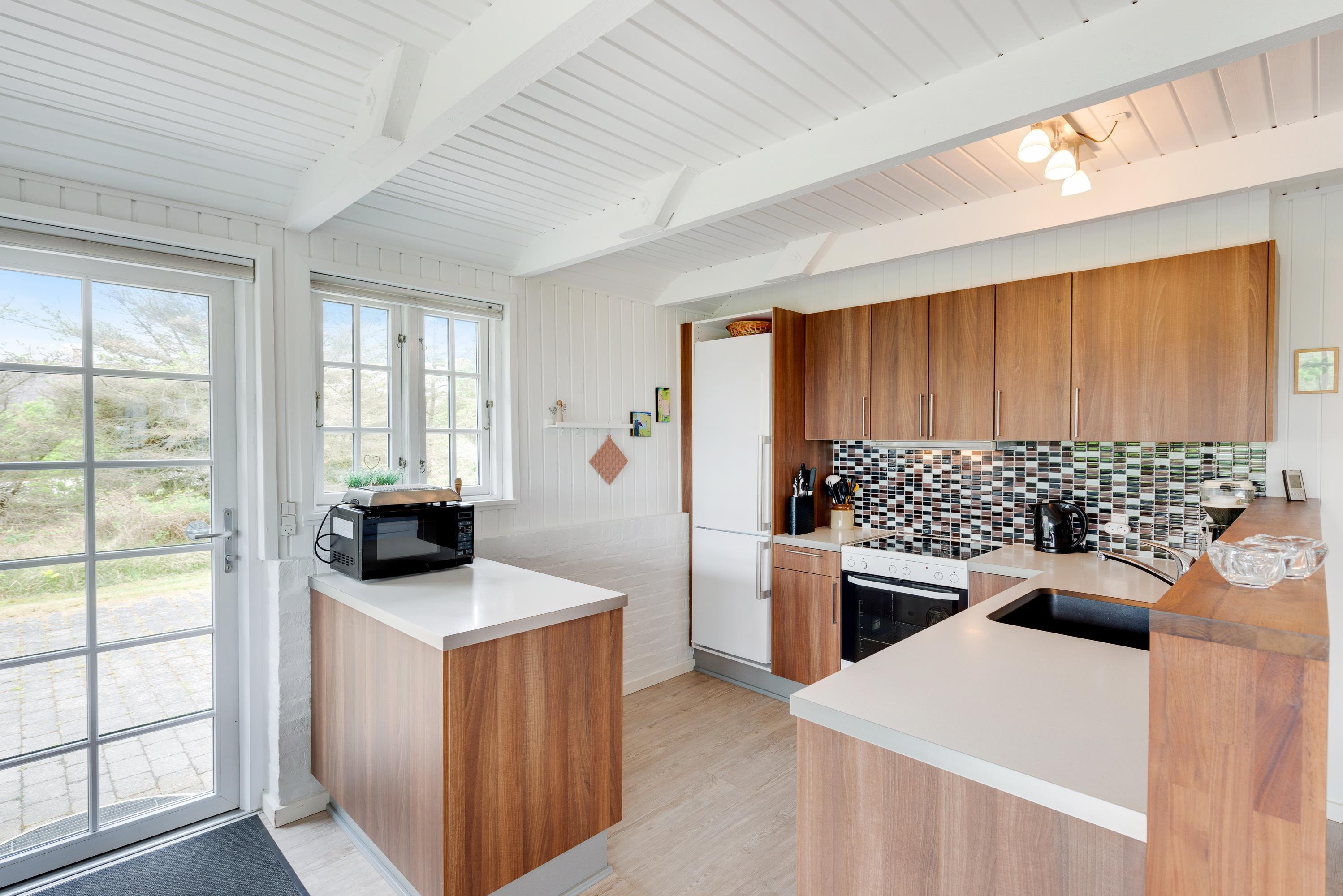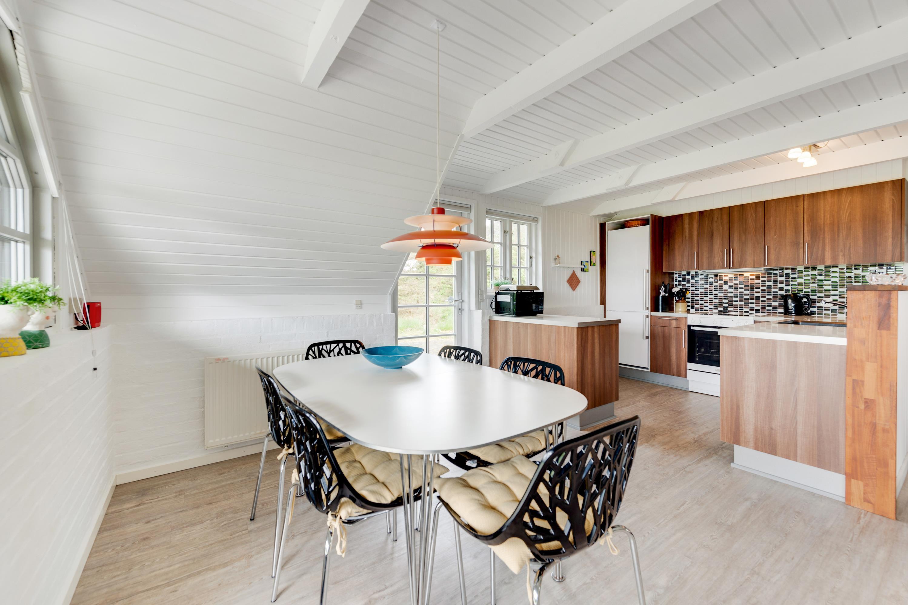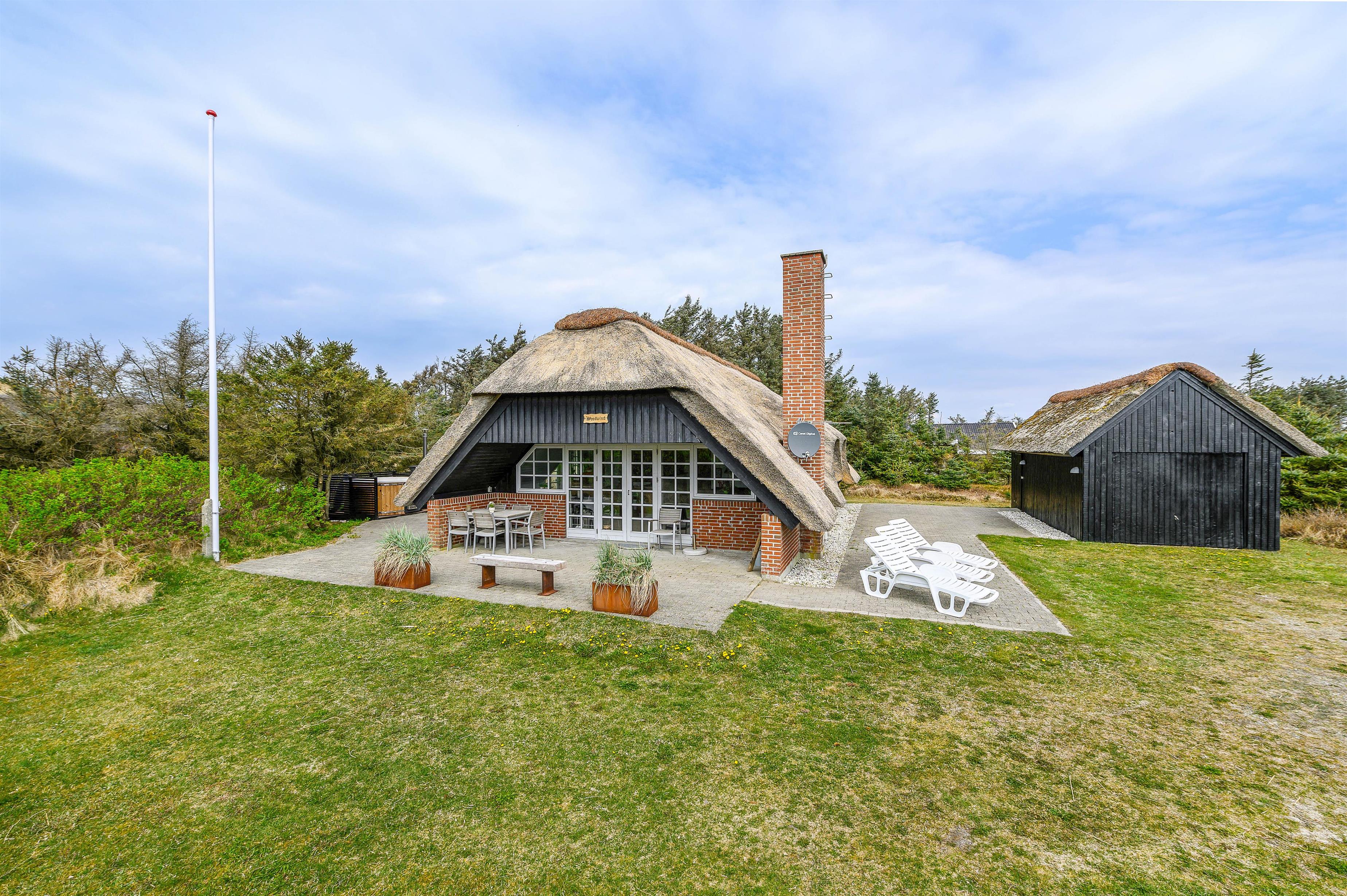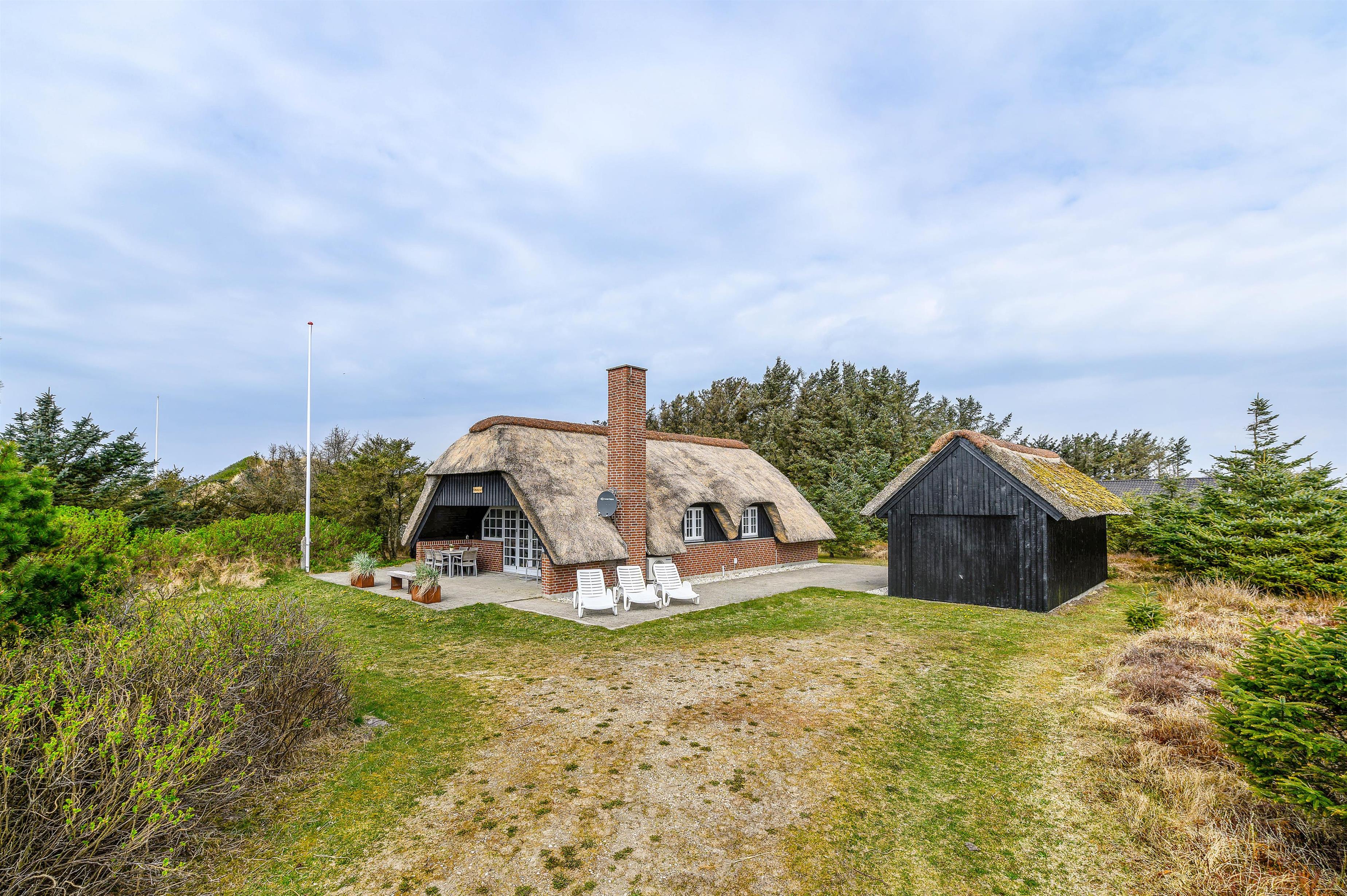 Et meget velholdt murstenshus med stråtag, hvor der er masser af charme og hygge – perfekt til en dejlig familieferie. Huset fremstår lyst og indbydende overalt og fra stuen kan du slå dobbeltdørene op til den delvist overdækkede terrasse, hvor I kan nyde den flotte og naturligt afskærmede grund.