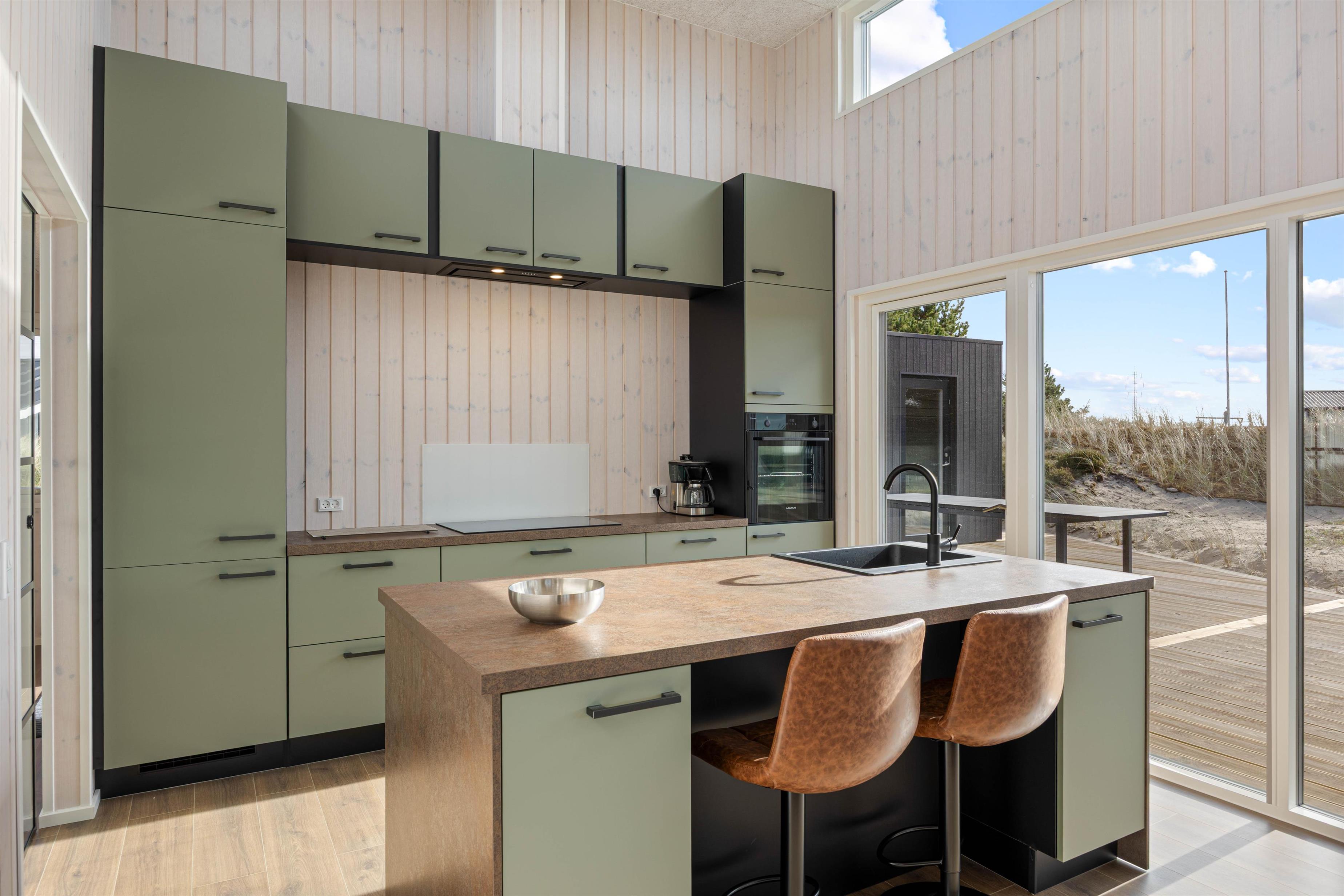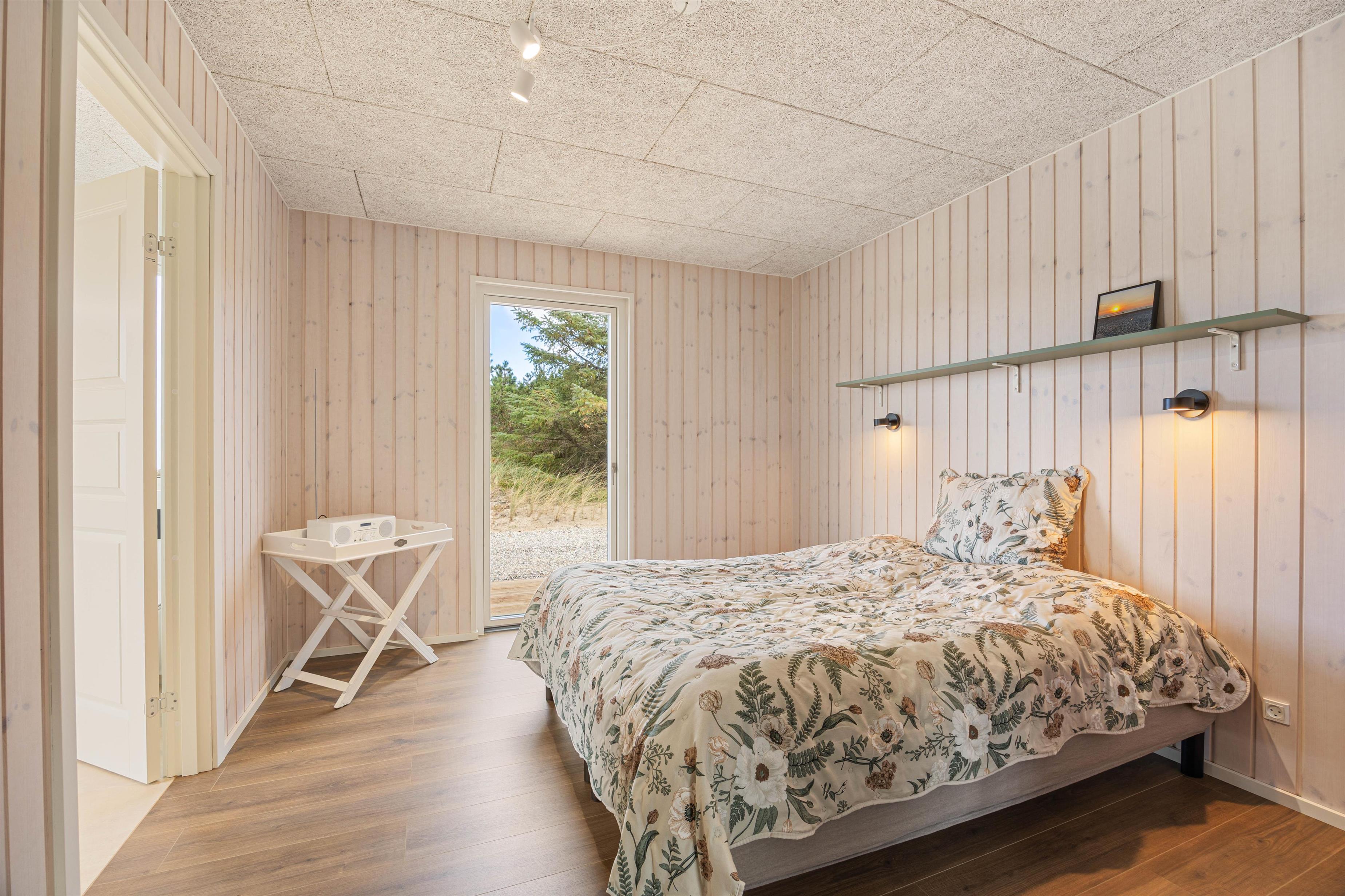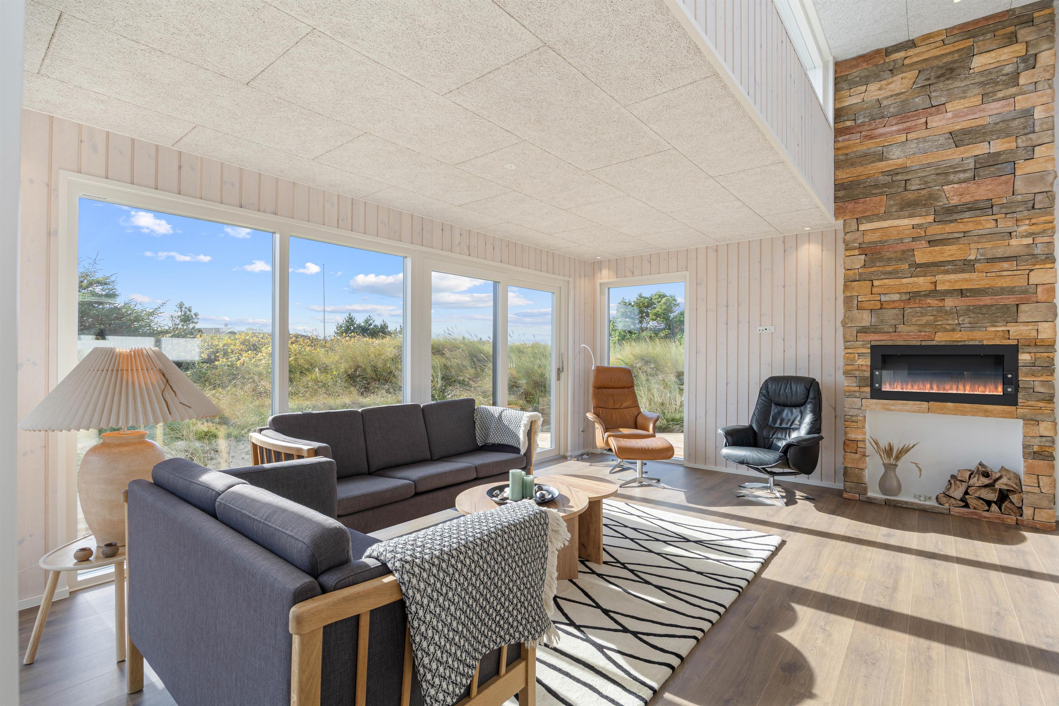 Det moderne sommerhus er udstyret med en biopejs, der skaber en hyggelig atmosfære indendørs. Her kan man fra husets belyste stue nyde den dejlige varme fra biopejsen samt den gode udsigt. For jer, der har el-bil, er der adgang til et ladestik, hvilket gør sommerhuset til et miljøvenligt valg. Når det bliver tid til at købe ind, ligger nærmeste mulighed blot 4000 meter væk, hvilket gør det bekvemt at handle lokalt under opholdet.