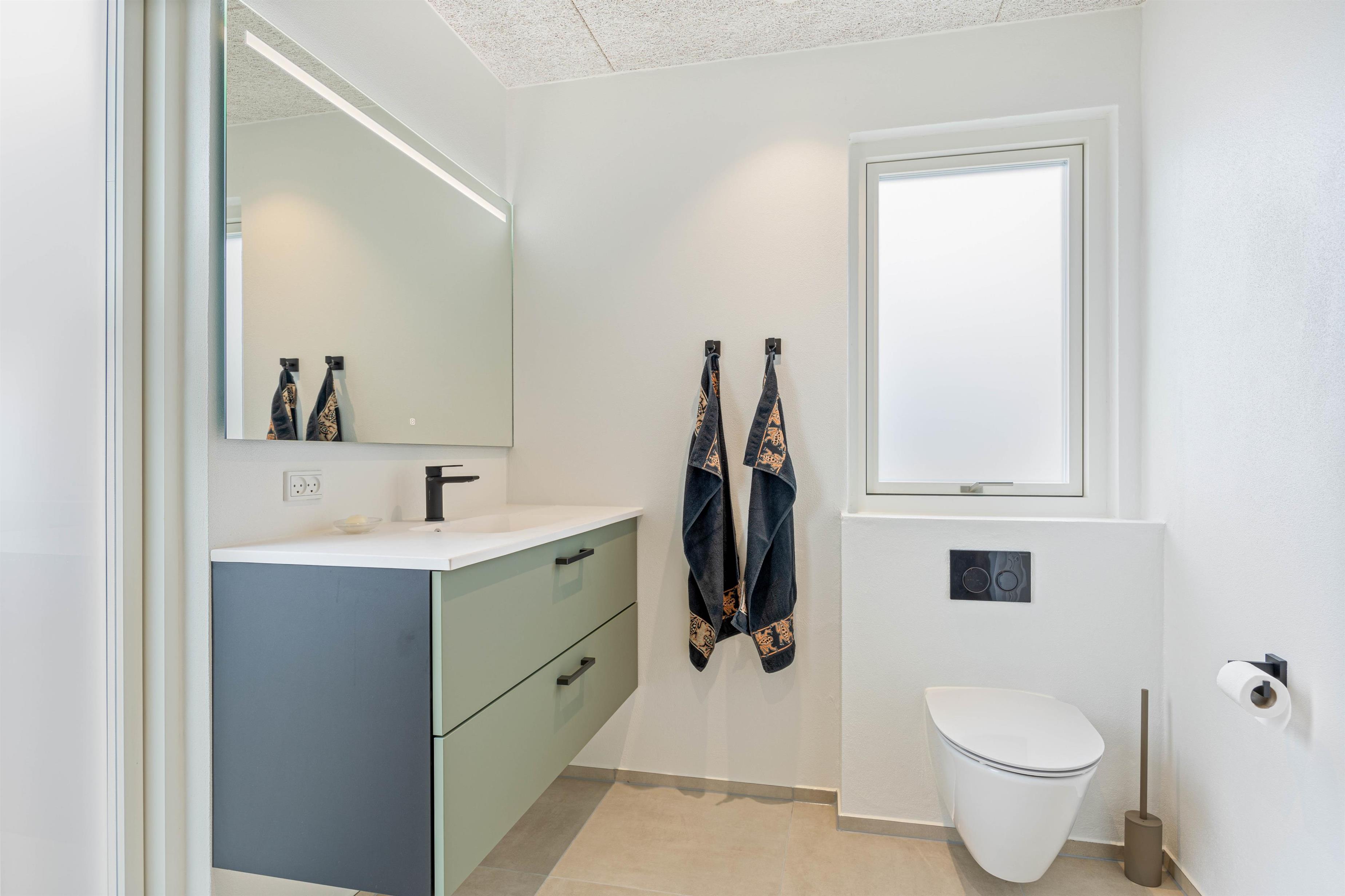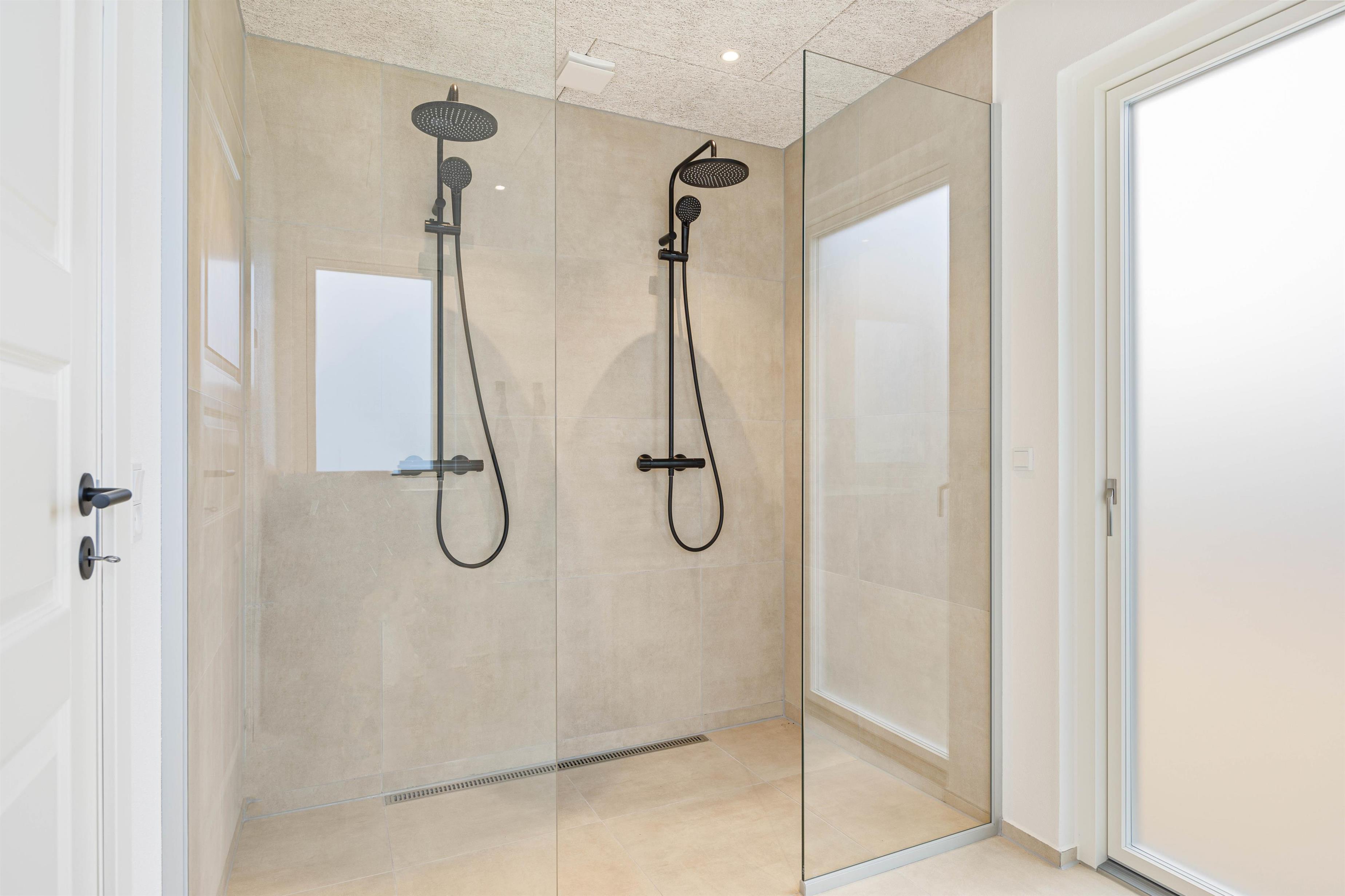 Sommerhuset har 3 rummelige soverum, alle med gulvvarme, som sikrer en behagelig temperatur året rundt. Her oplever man komforten i at træde ud af sengen om morgenen på et dejligt opvarmet gulv. Når det er tid til at tage et bad, kan I benytte jer af de 2 badeværelser, der skaber optimal bekvemmelighed for alle gæster. Til de praktiske gøremål er sommerhuset udstyret med både opvaskemaskine, vaskemaskine og tørretumbler.