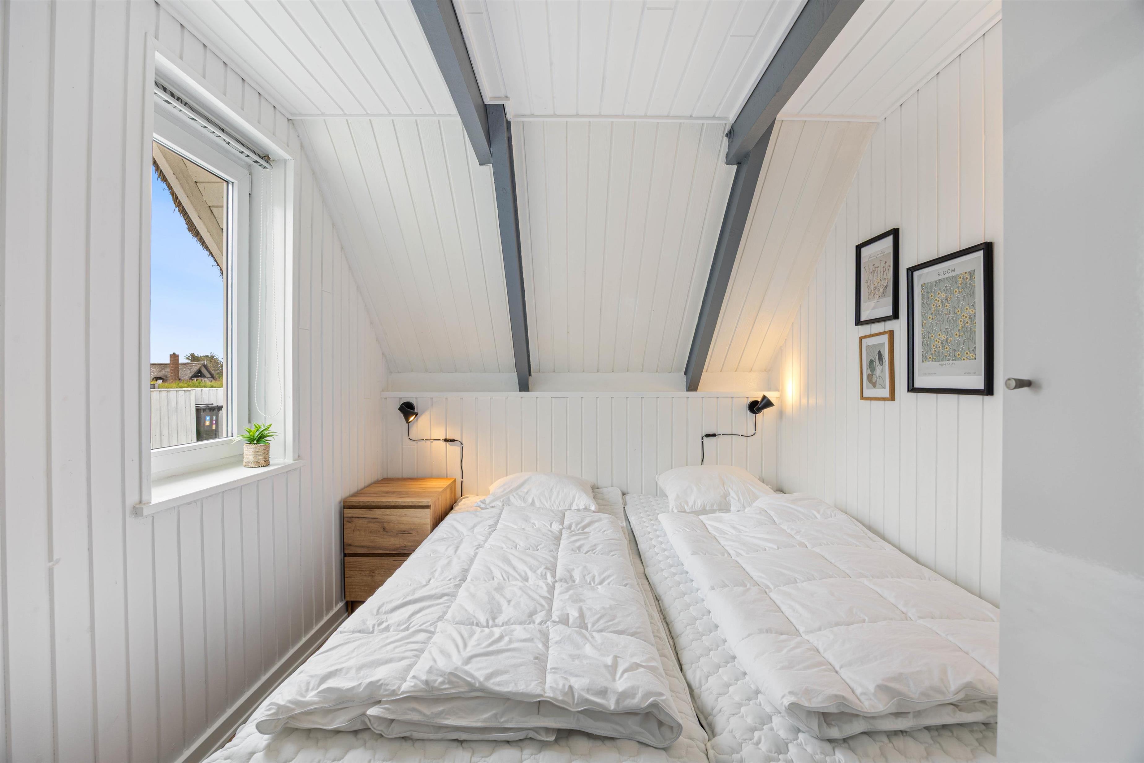 De 6 sovepladser fordeler sig på 2 soveværelser og en hems, så der er god mulighed for at få en god nats søvn efter en dejlig dag. Gulvvarmen på sommerhusets badeværelse sikrer en behagelig start på dagen, selv på de køligere morgener.