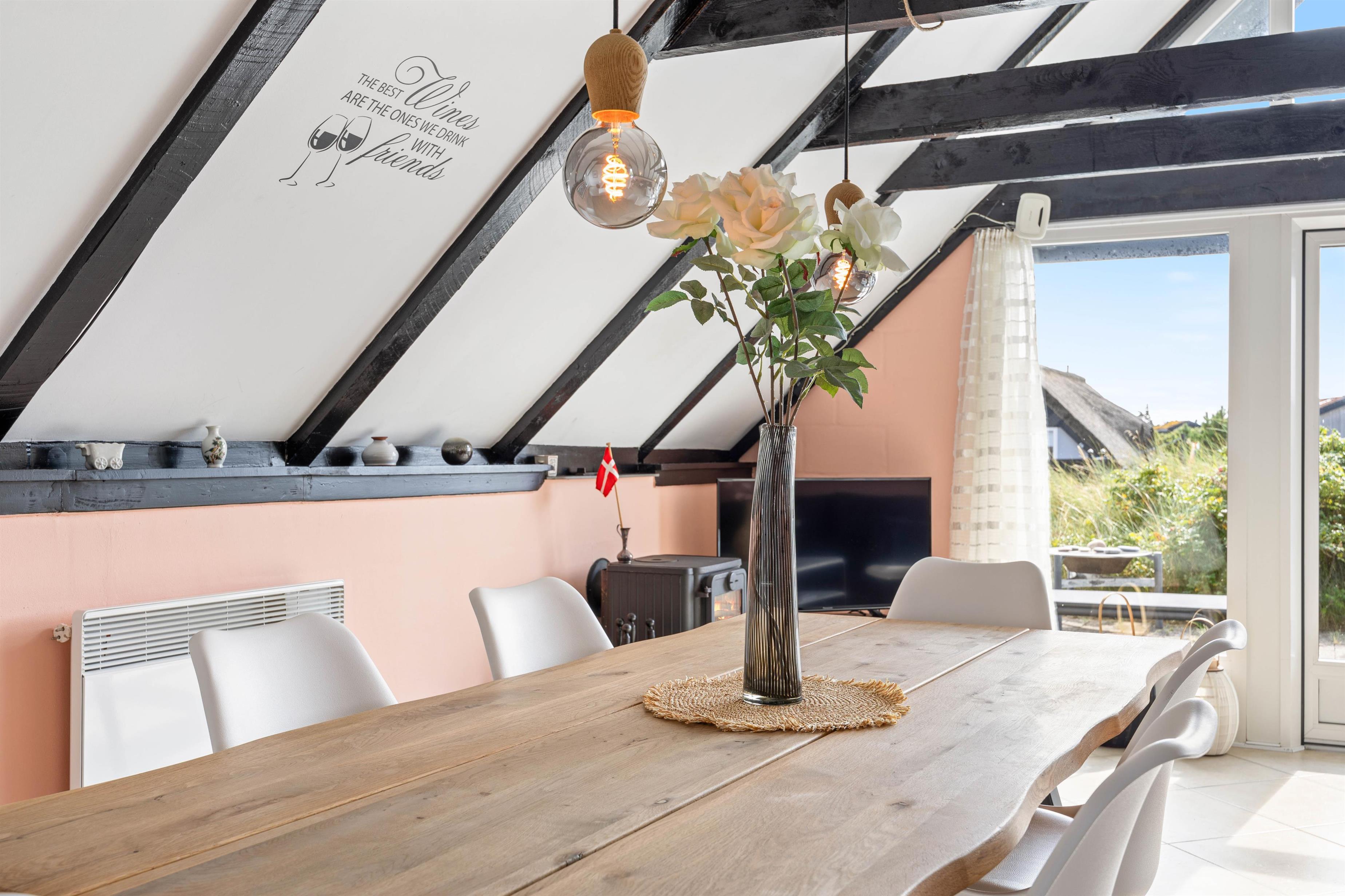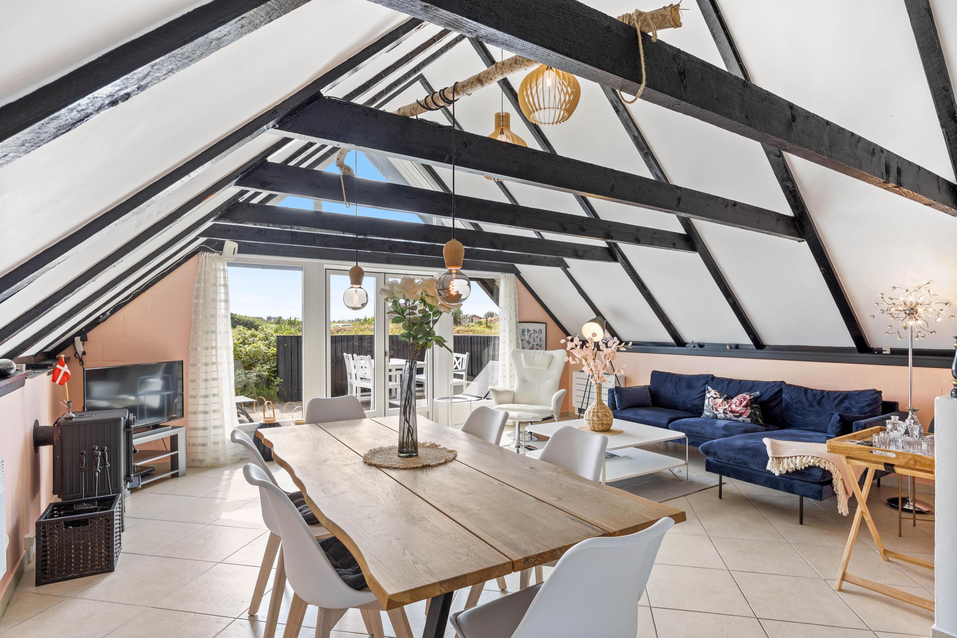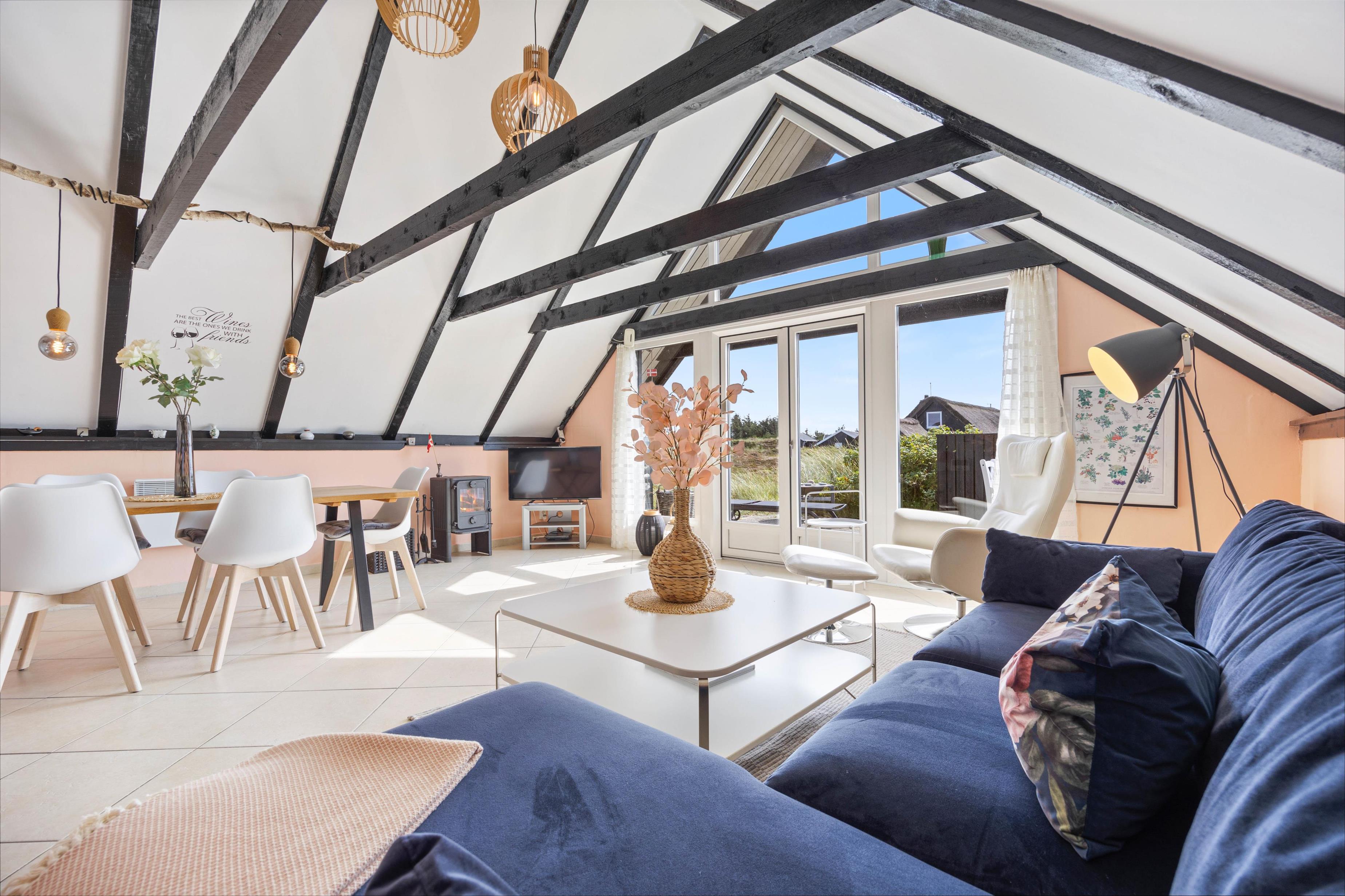 Dette sommerhus på Havklitvej 26 har en hyggelig indretning og i sammenspil med de sorte træbjælker, skaber dette en hyggelig atmosfære, som I vil mærke med det samme, I træder ind ad døren. Sommerhuset indbyder til afslapning i køkken/alrummet, hvor I kan tænde op i brændeovnen og nyde den dejlige ro. Til de kolde dage finder I også en varmepumpe i sommerhuset, som er med til, at I kan have en dejlig temperatur i sommerhuset.