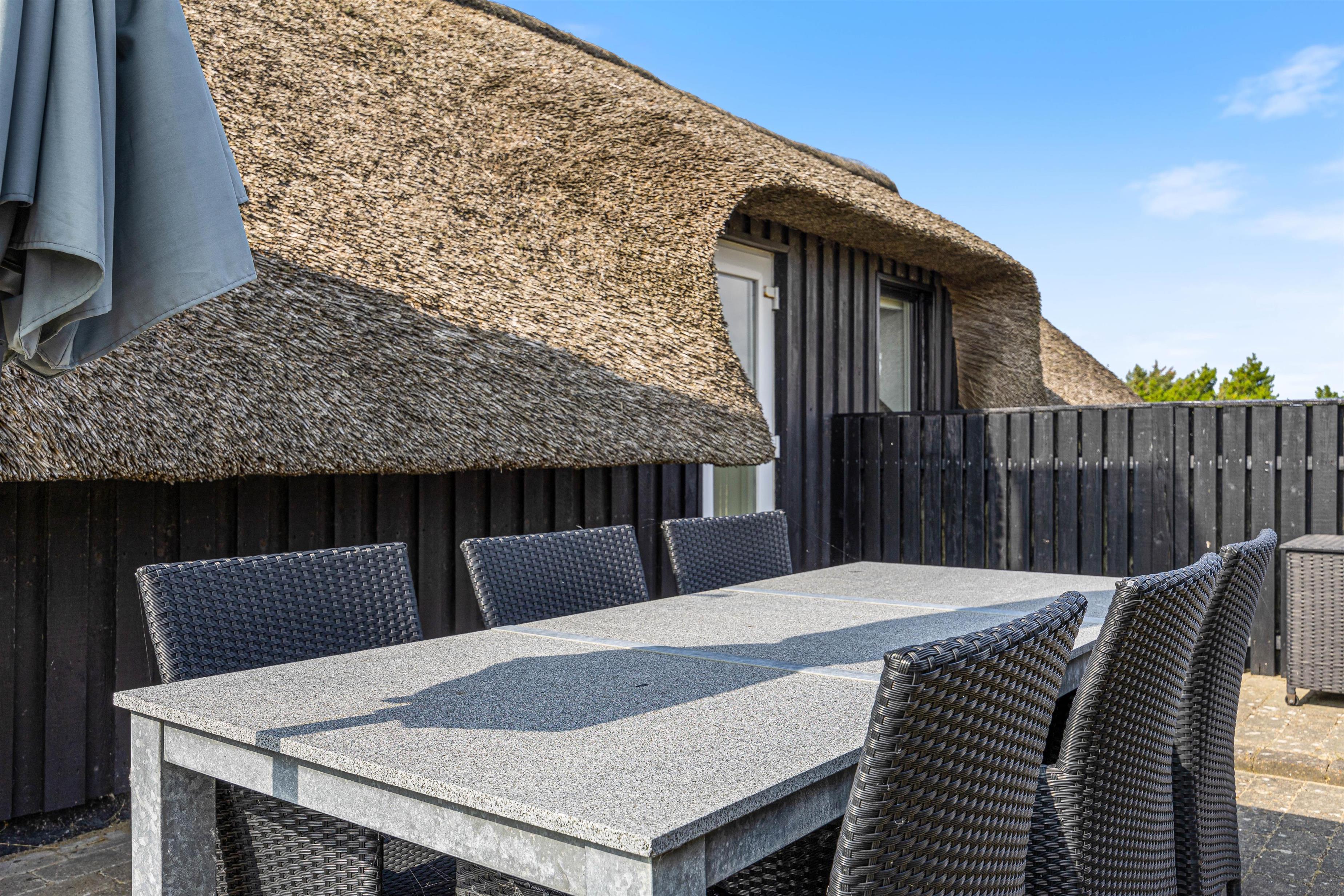 Sommerhuset er placeret på en skøn naturgrund, så når vejret byder er til det, kan I sætte jer udenfor på den afskærmede terrasse og nyde den omkringliggende natur. Der er også plads til, at I kan samles og spille spil eller læse en god bog. Hvis I har lyst, kan I finde sommerhusets grill frem og rykke aftensmaden udenfor.