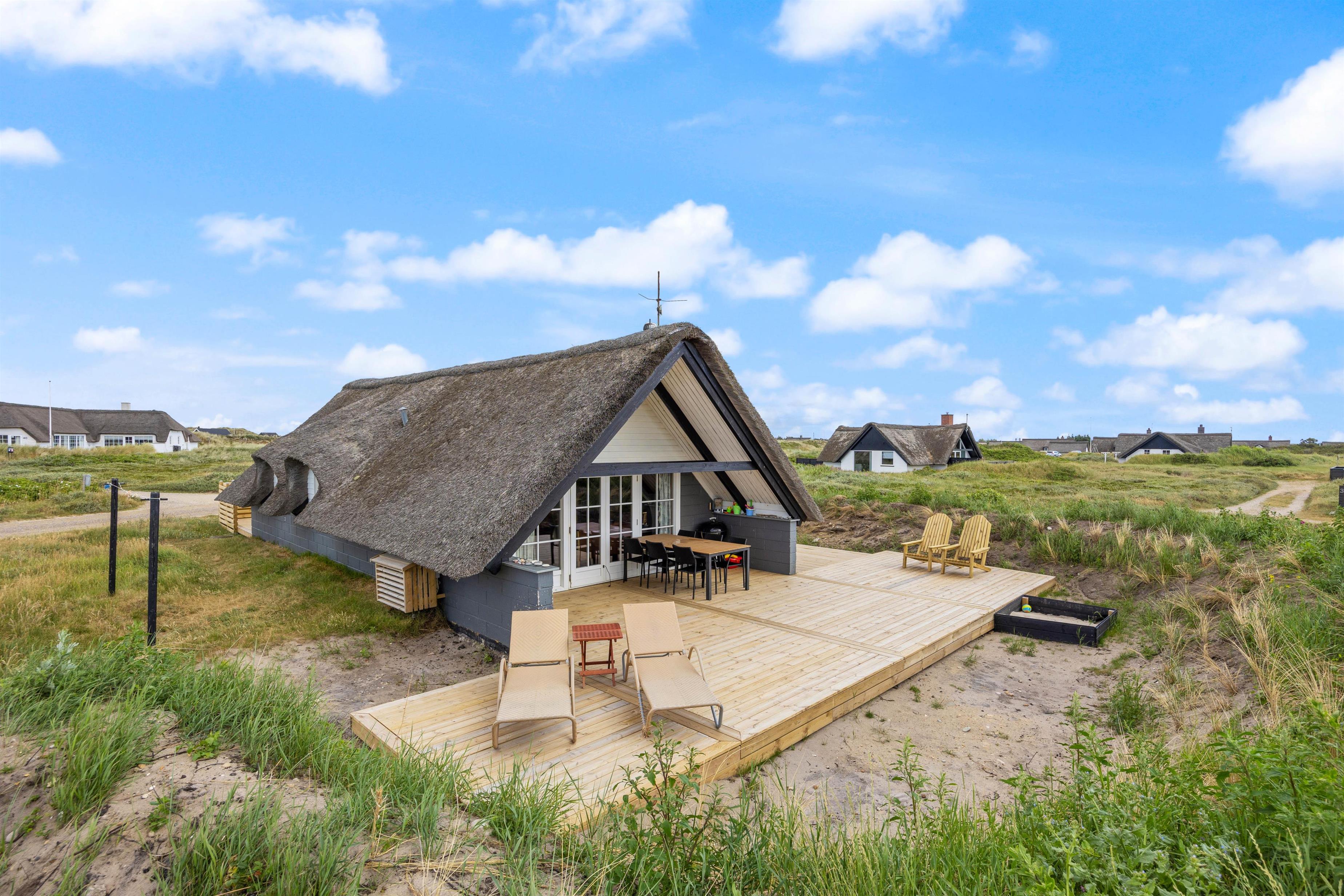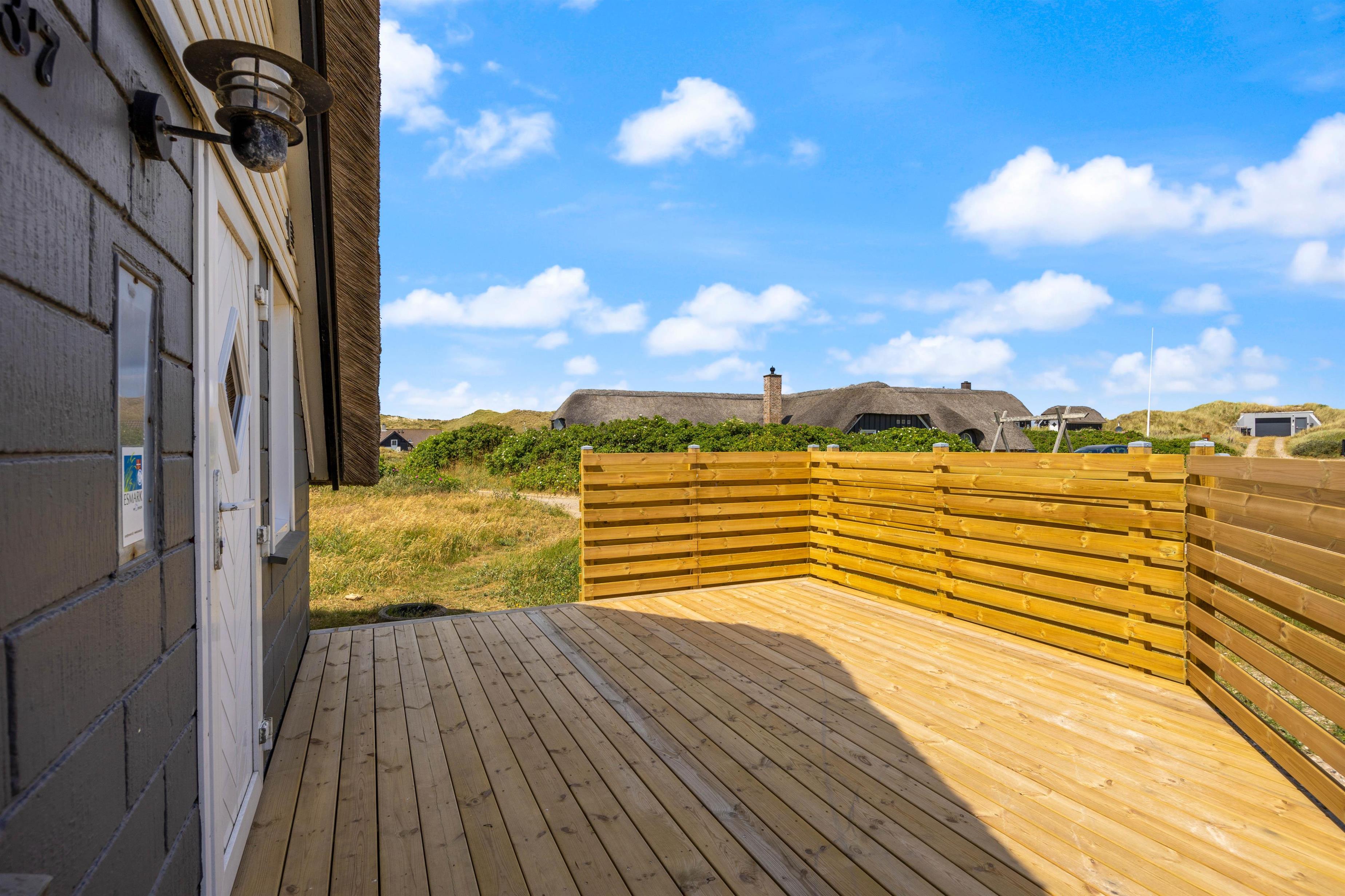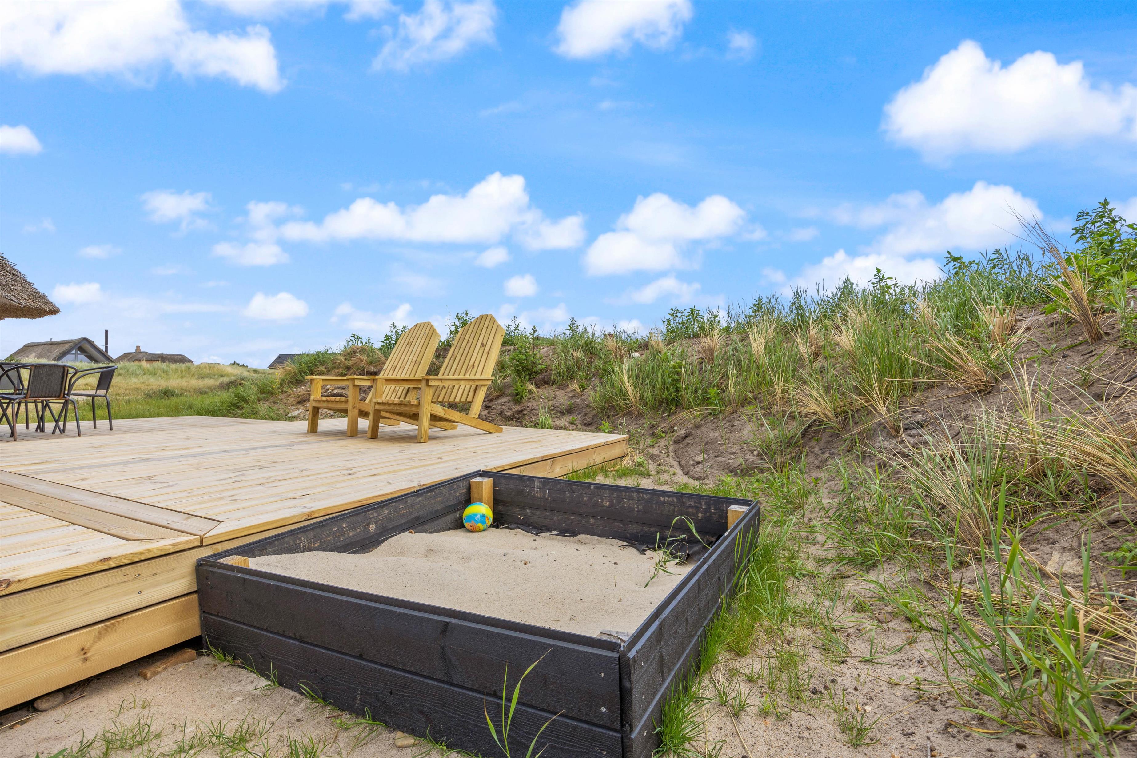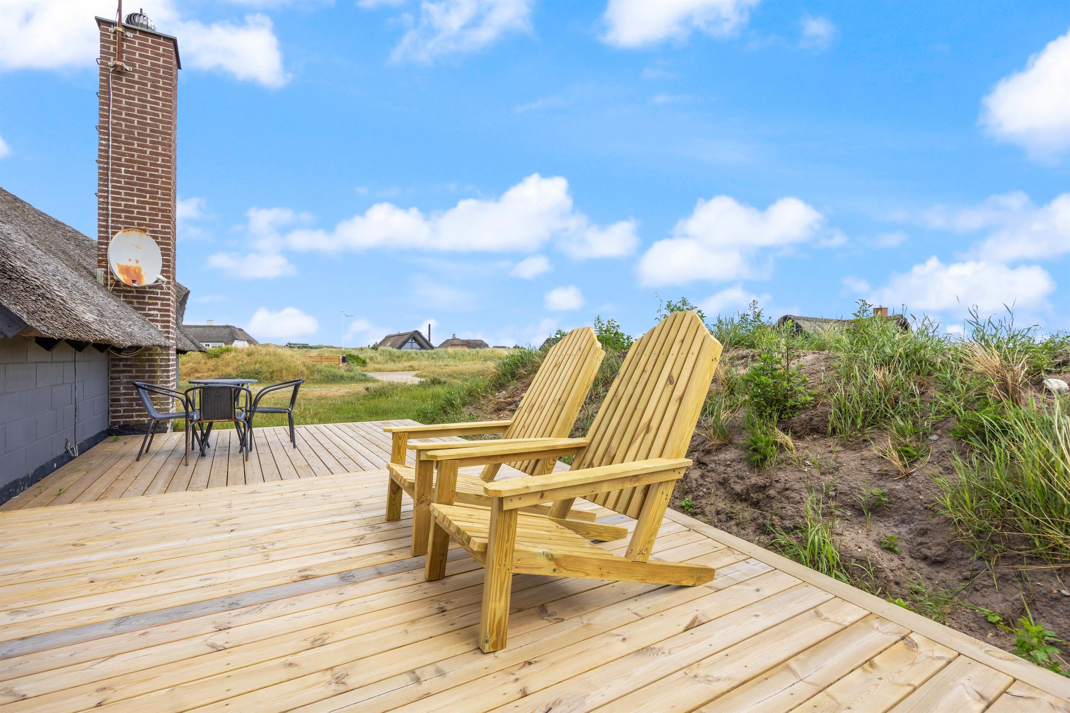 Udover den smukke natur og klitterne byder feriehuset på Kræ Degns Vej 37 også på to terrasser; en delvist overdækket terrasse og en delvist afskærmet terrasse. Her kan I på en af de varmere sommerdage nyde en kold drink eller tænde op i grillen og tilberede aftensmaden derpå.
