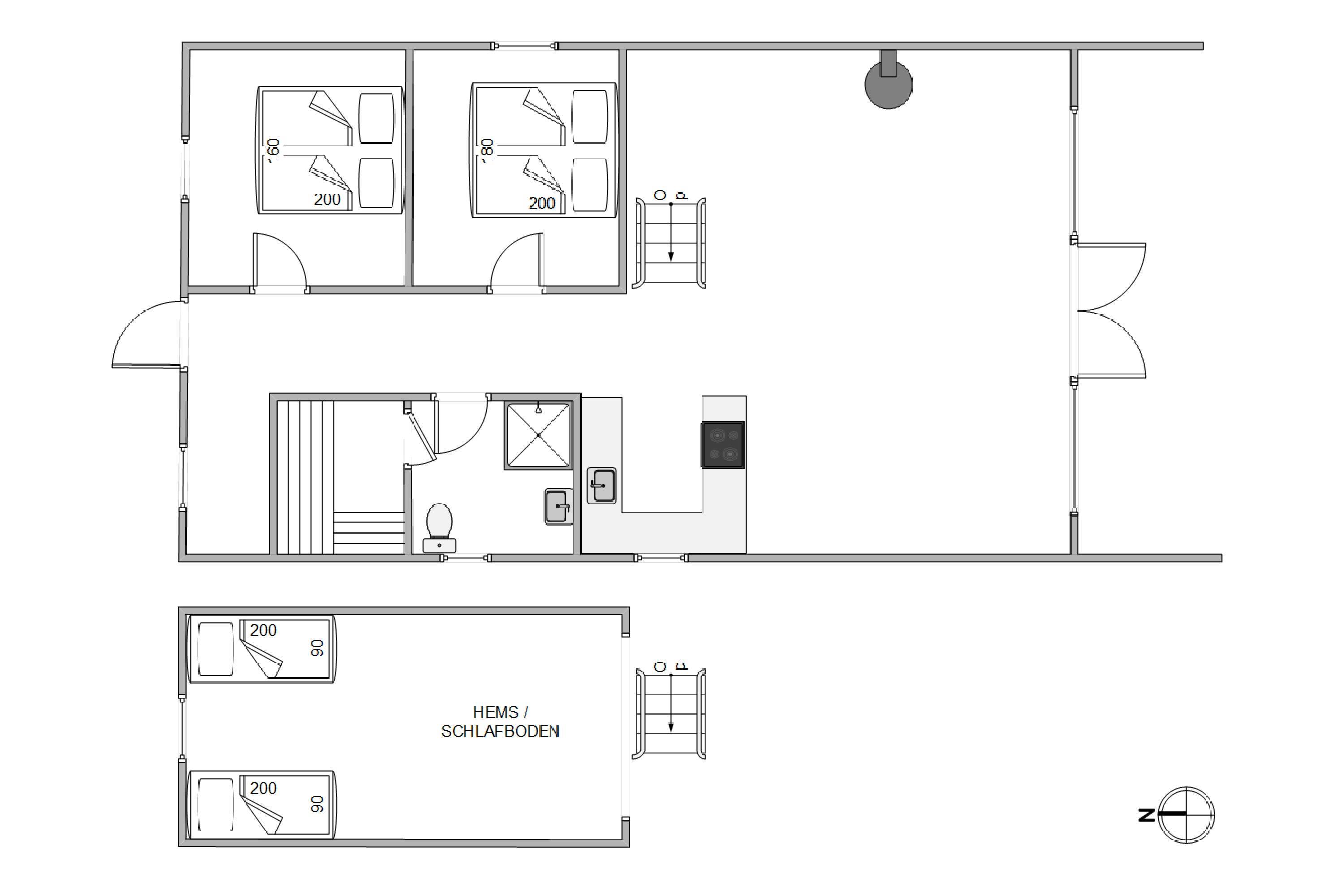 Feriehuset på Kræ Degns Vej 37 råder over 2 soveværelser. Begge soveværelser er udstyret med en dobbeltseng, og ydermere er der en hems, hvor der også er 2 sovepladser. Her har især de lidt større børn god mulighed for at sove og have deres eget.