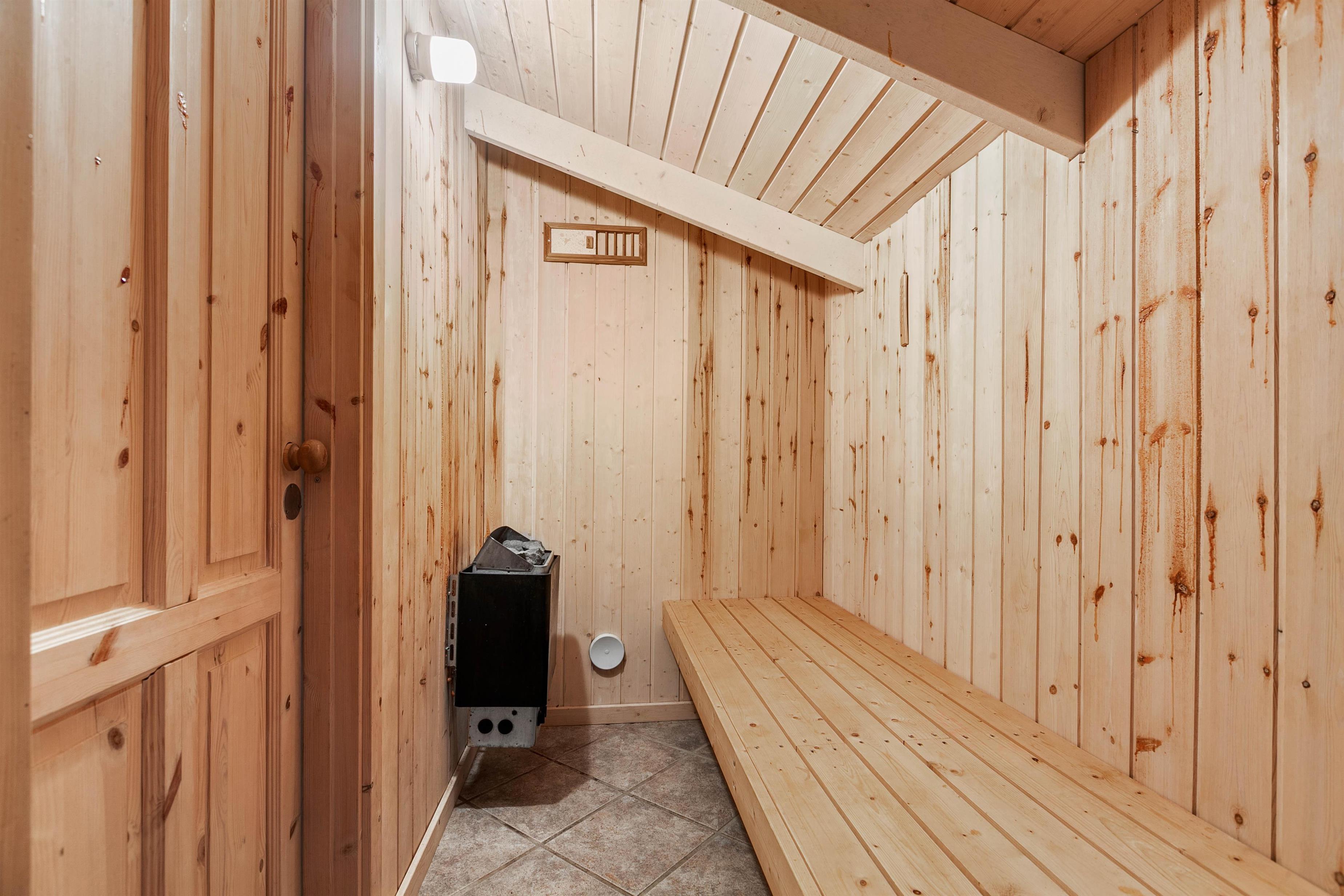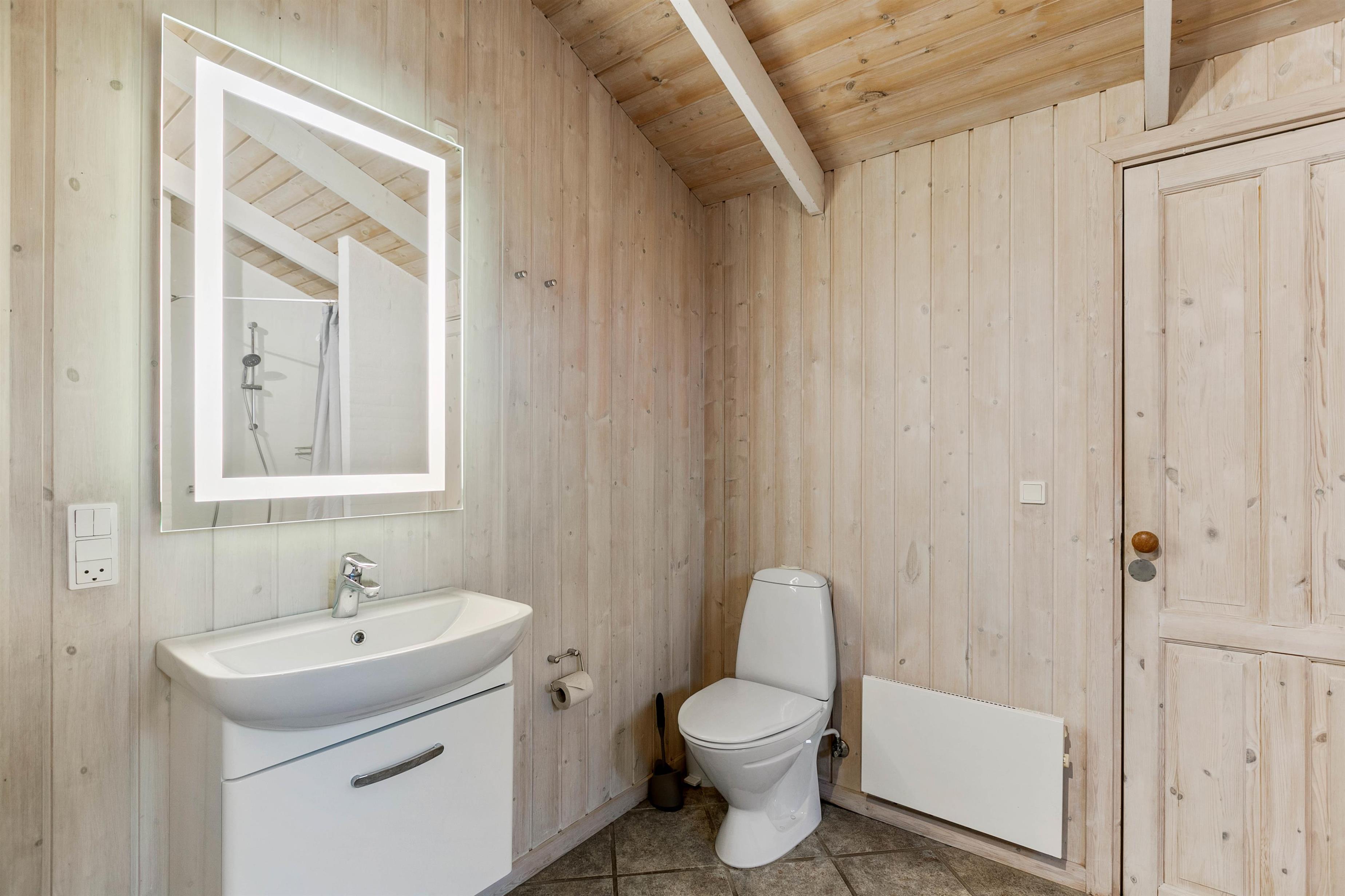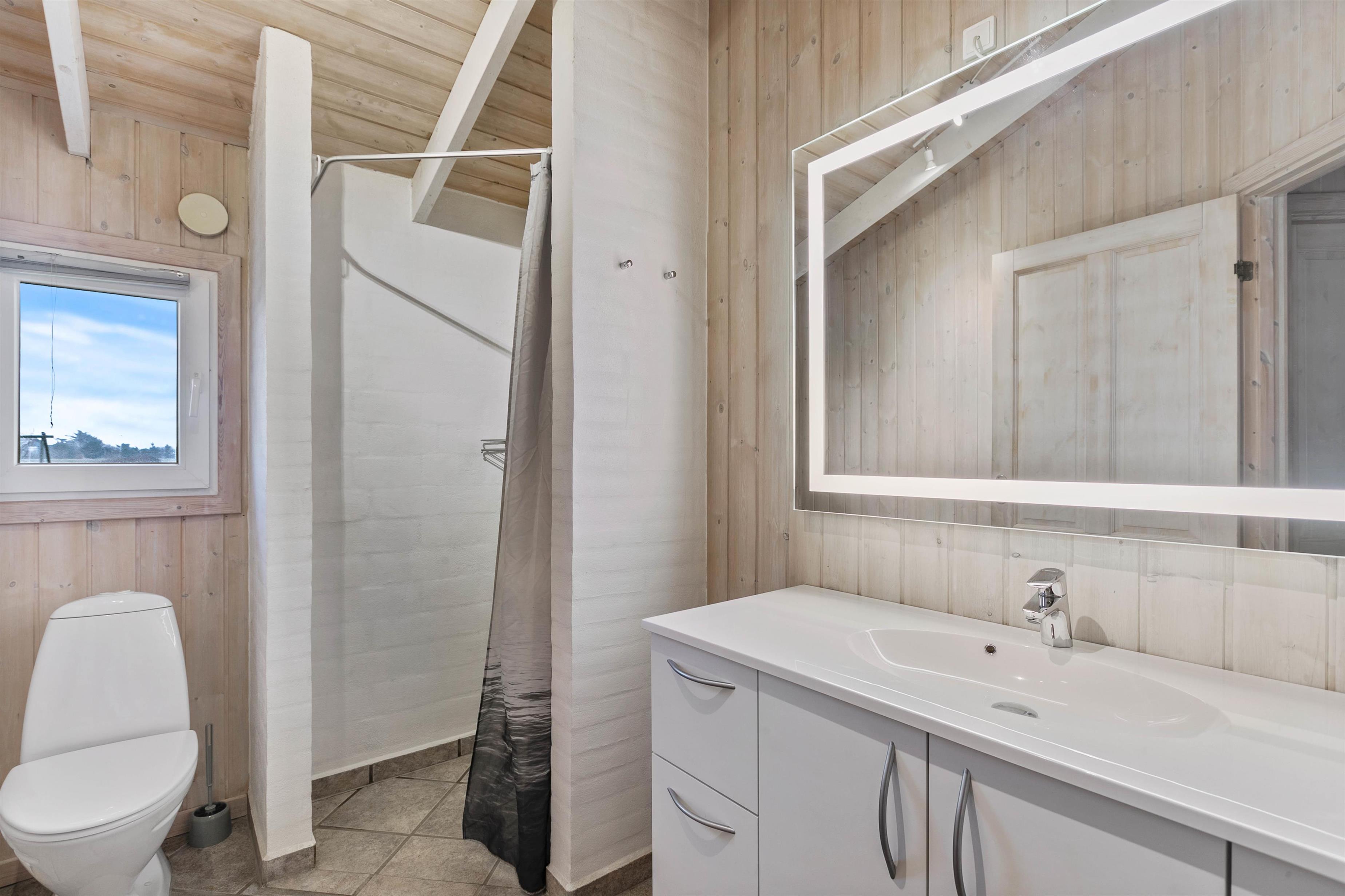 Sommerhuset er lyst og venligt indrettet, den varme træbeklædning sørger for en hyggelig atmosfære og i stuen er der en alkove til de hyggelige timer med ren afslapning med en god bog eller surfe på det gratis internet. I det store badeværelse med gulvvarme er der spabad og sauna, her kan du rigtig slappe af. I det praktiske køkken er udstyret i orden og her kan forberedelserne til feriens måltider udrettes, det kunne jo være de selv fangede fisk.