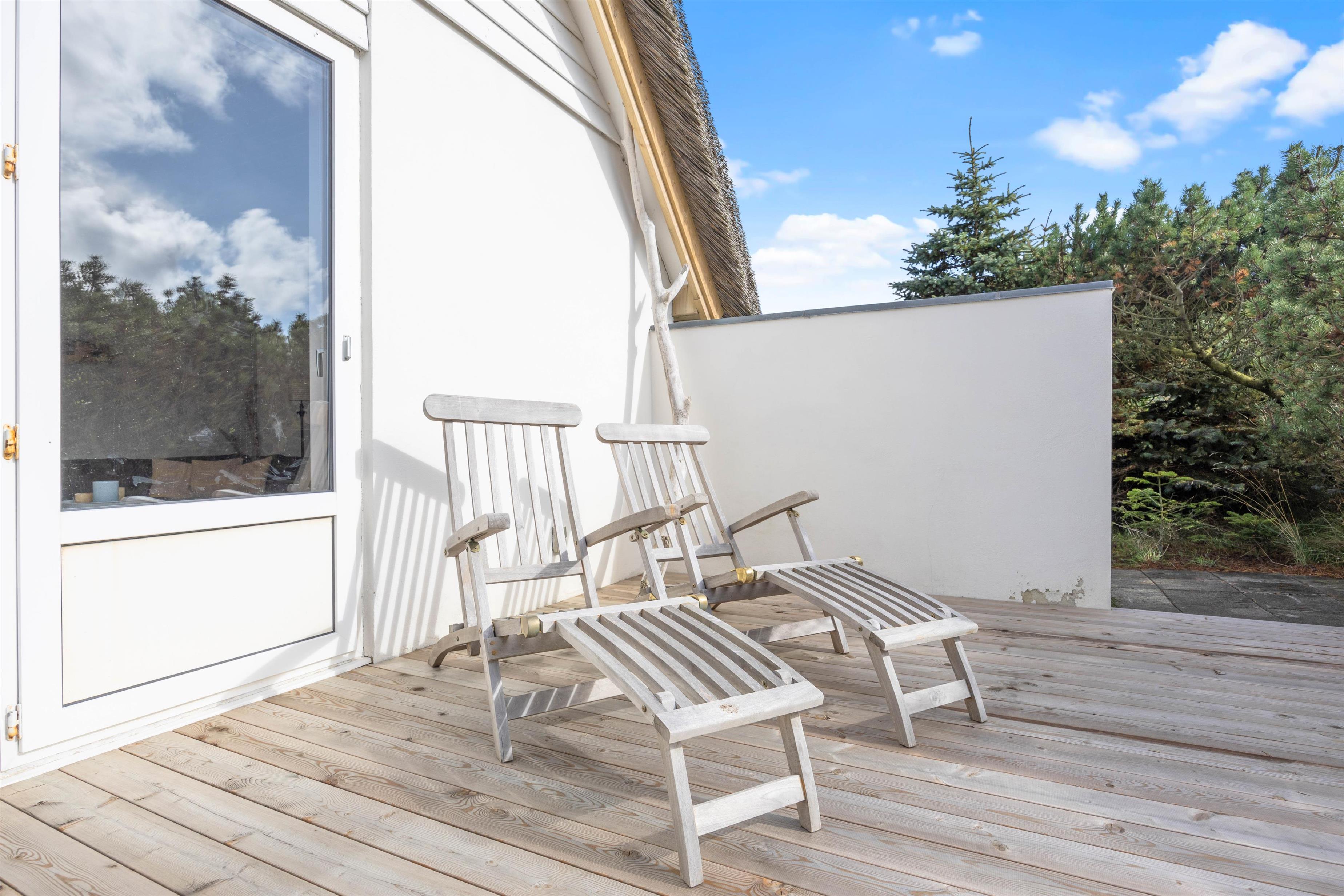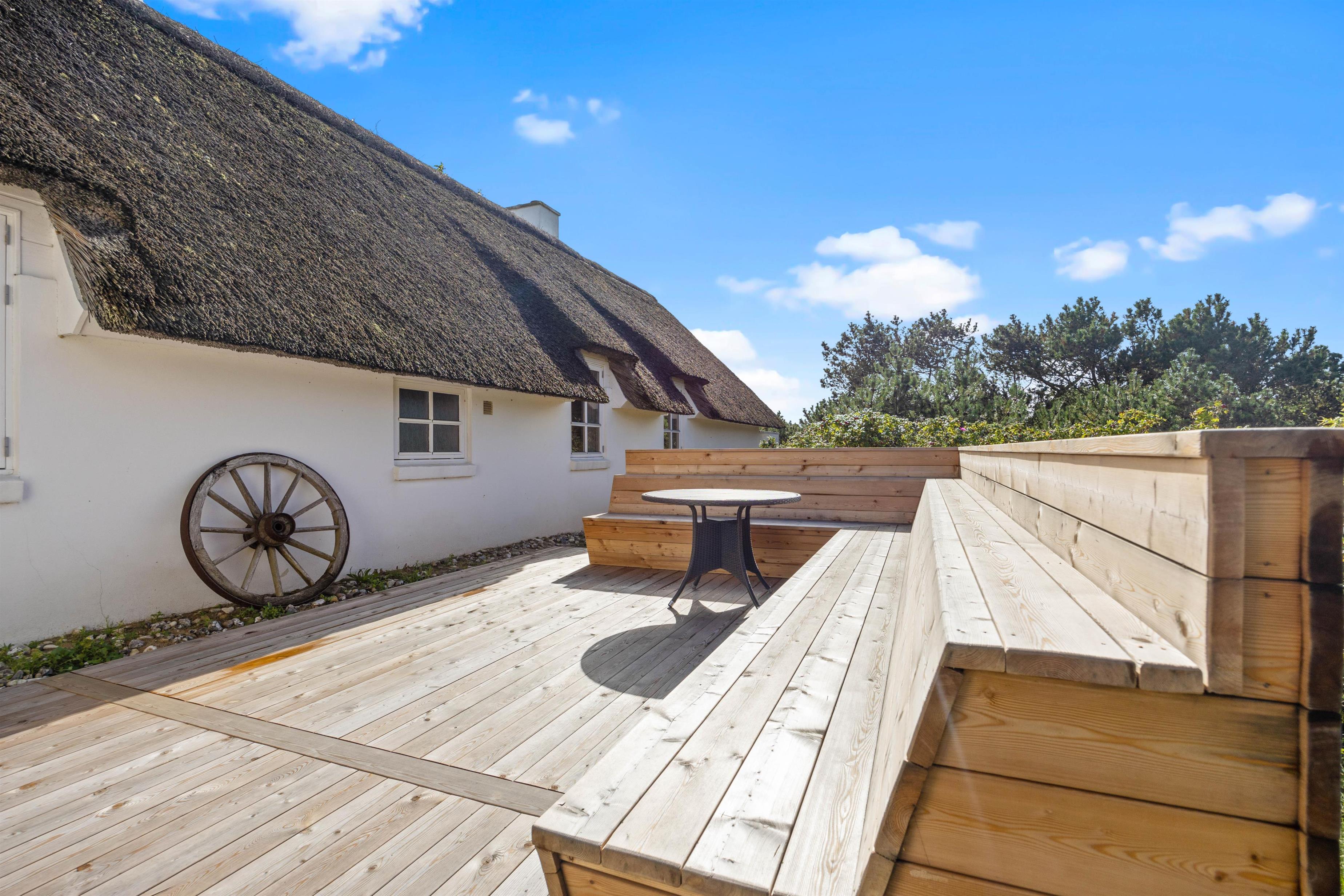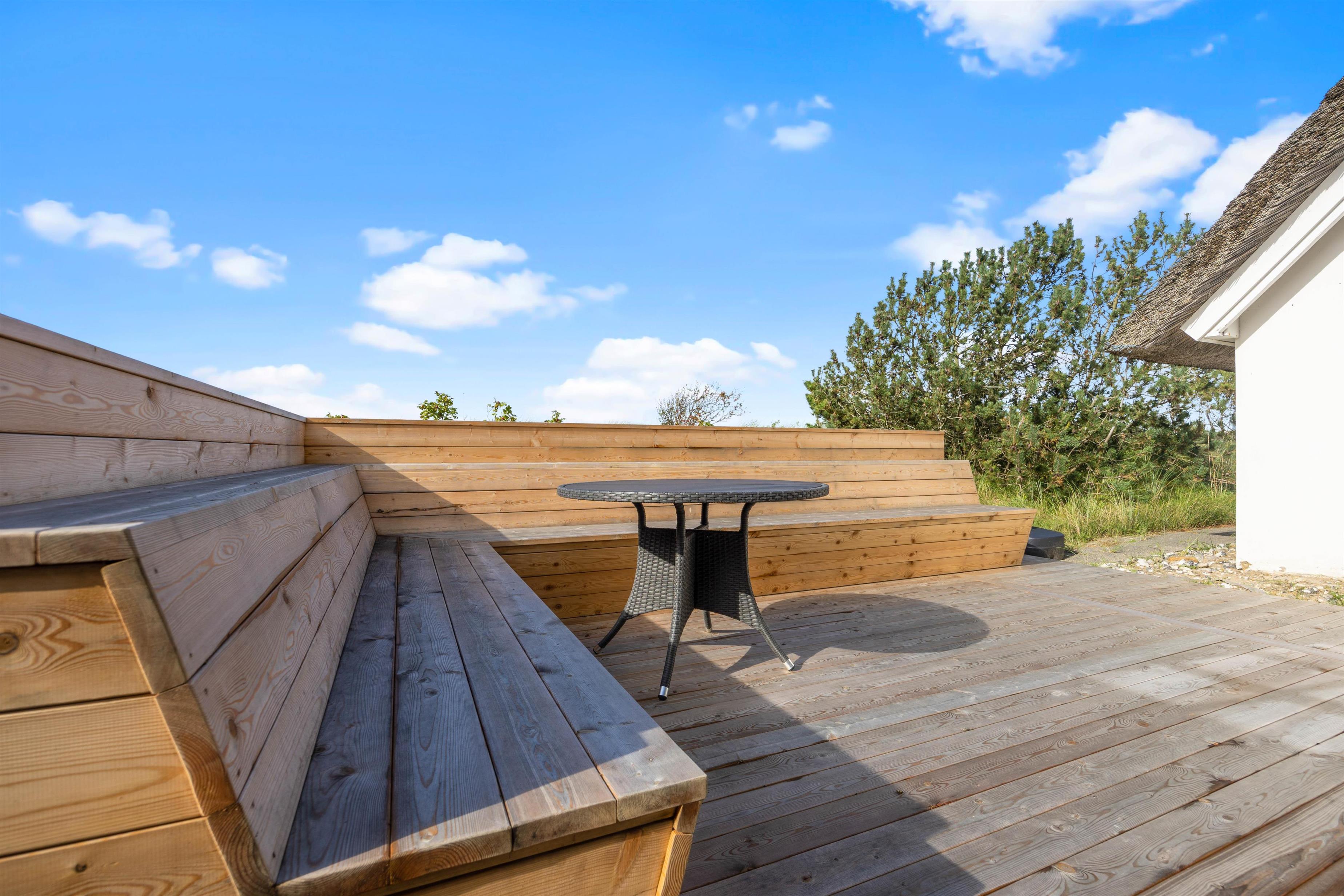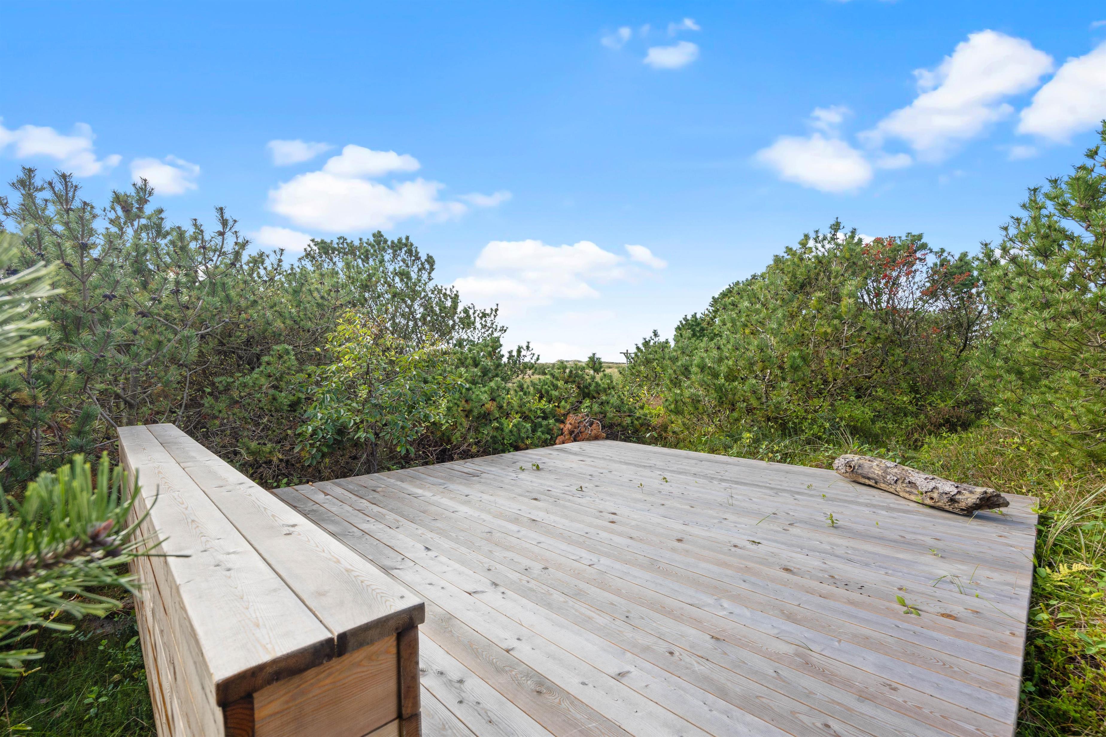 Omkring sommerhuset ligger der fliser, der forbinder sommerhusets forskellige terrasser. Med flere terrasser til rådighed vil I altid kunne finde en skøn plads i solen, hvor I kan finde jer til rette i havemøbler og liggestole.