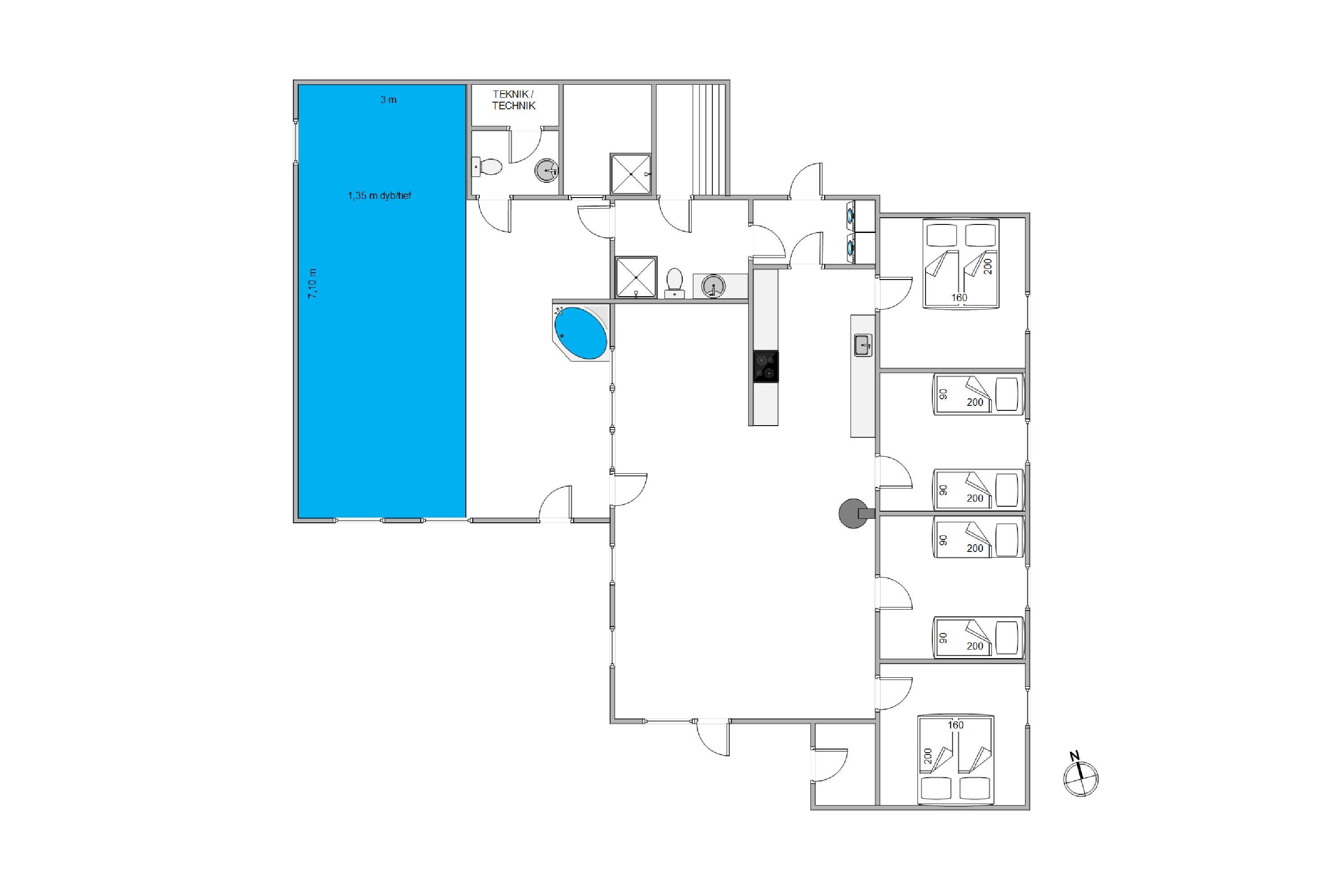 Feriehuset på Vestklitvej 4 egner sig perfekt til en dejlig familieferie i moderne omgivelser. Det store køkken ligger i direkte forbindelse med opholdsrummet, som består af stuen og spiseområdet. De høje lofter og store vinduer sørger for et dejligt lys i sommerhuset, og brændeovnen udsender året rundt en dejlig varme i opholdsrummet.