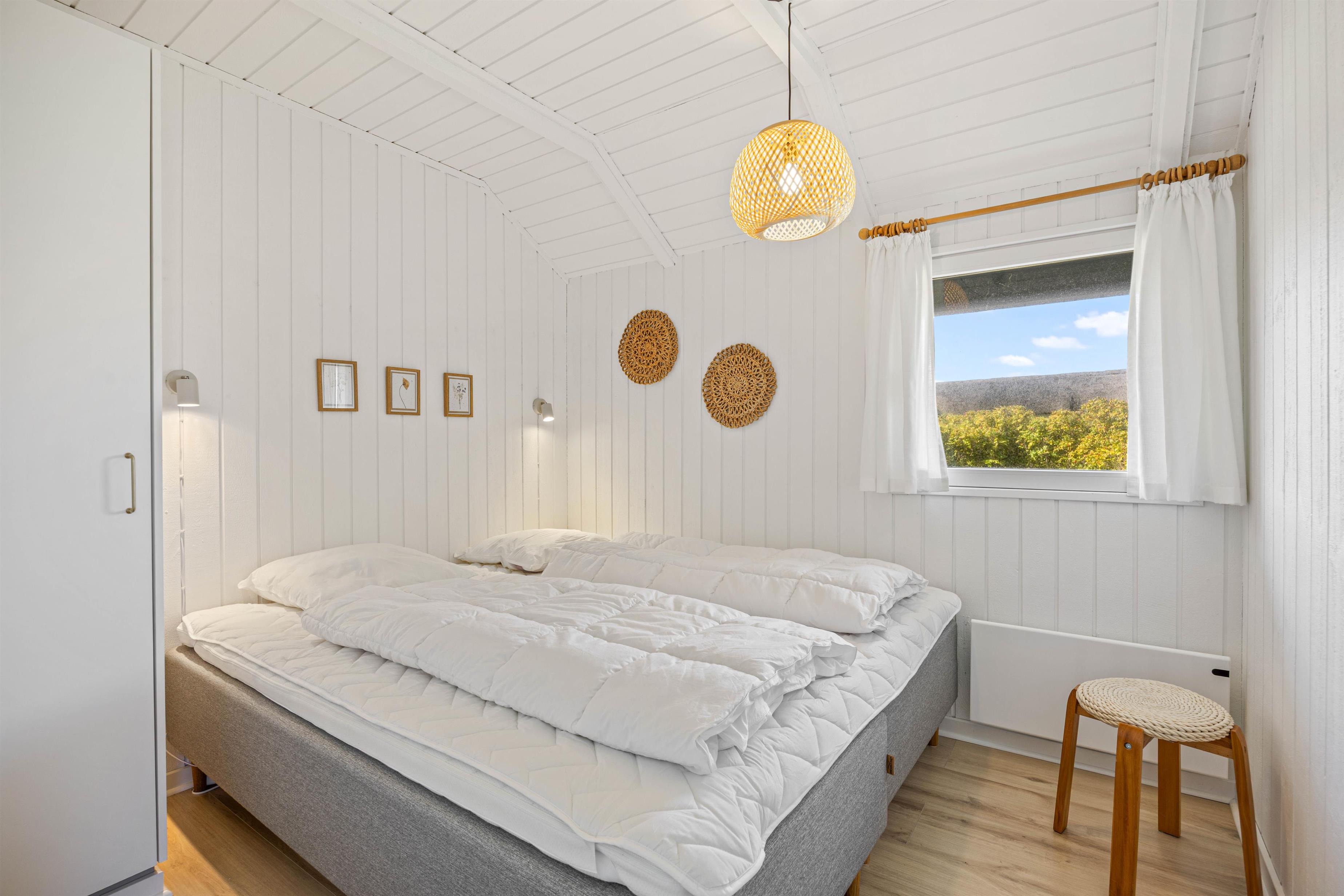 Sommerhuset har plads til 4 personer fordelt på 3 soverum. Badeværelset er lyst og har gulvvarme samt vaskemaskine, så I nemt kan klare praktiske gøremål under ferien.