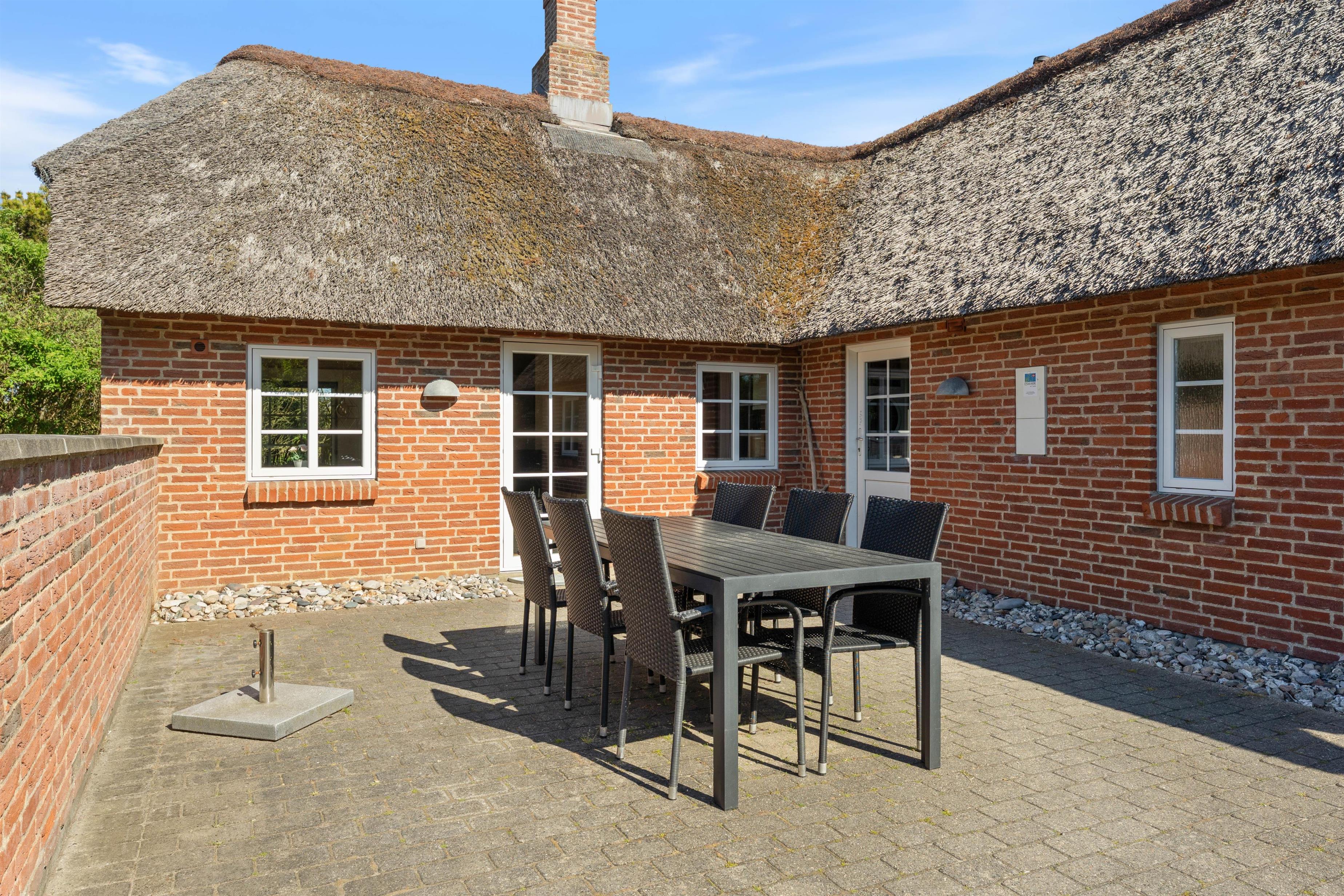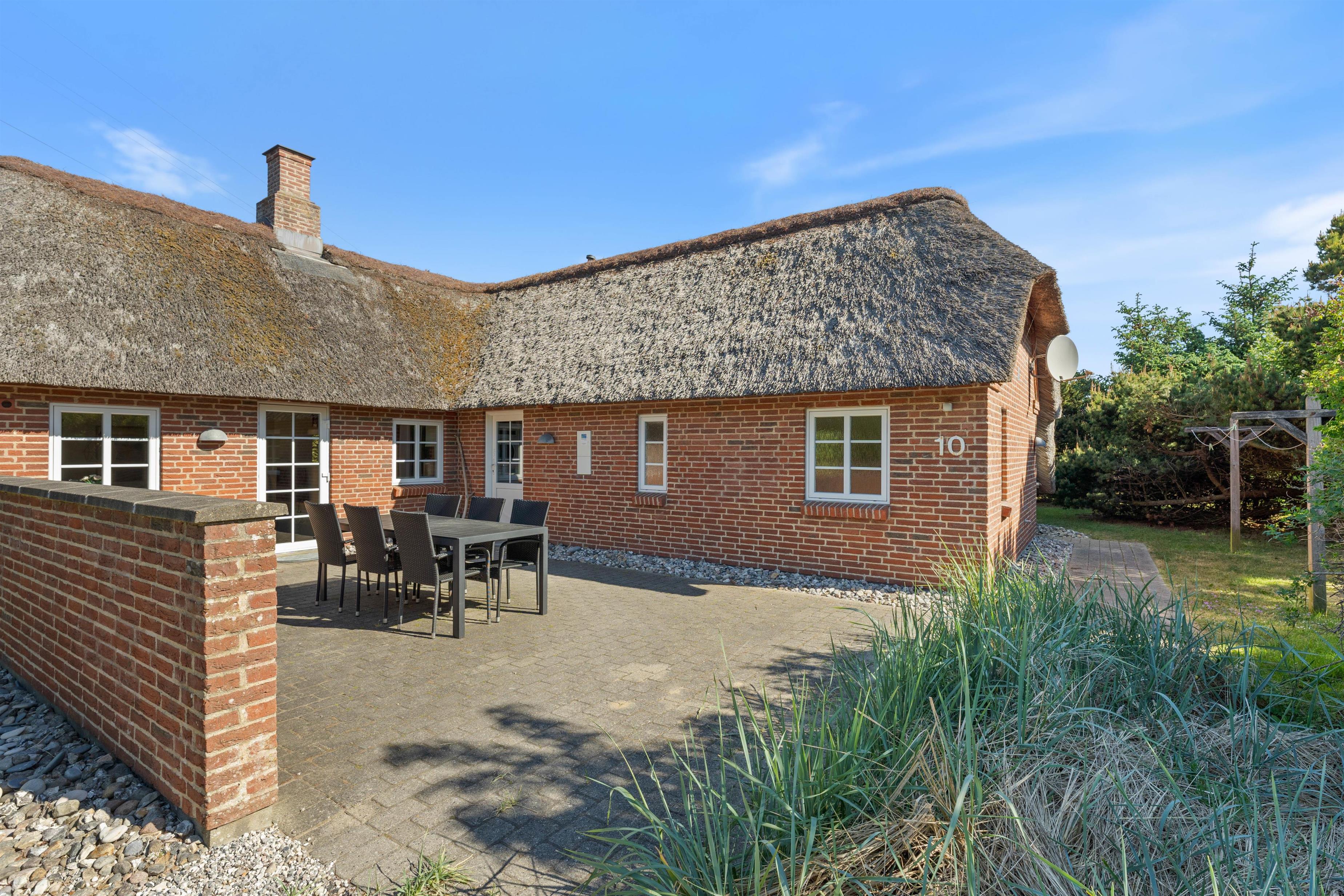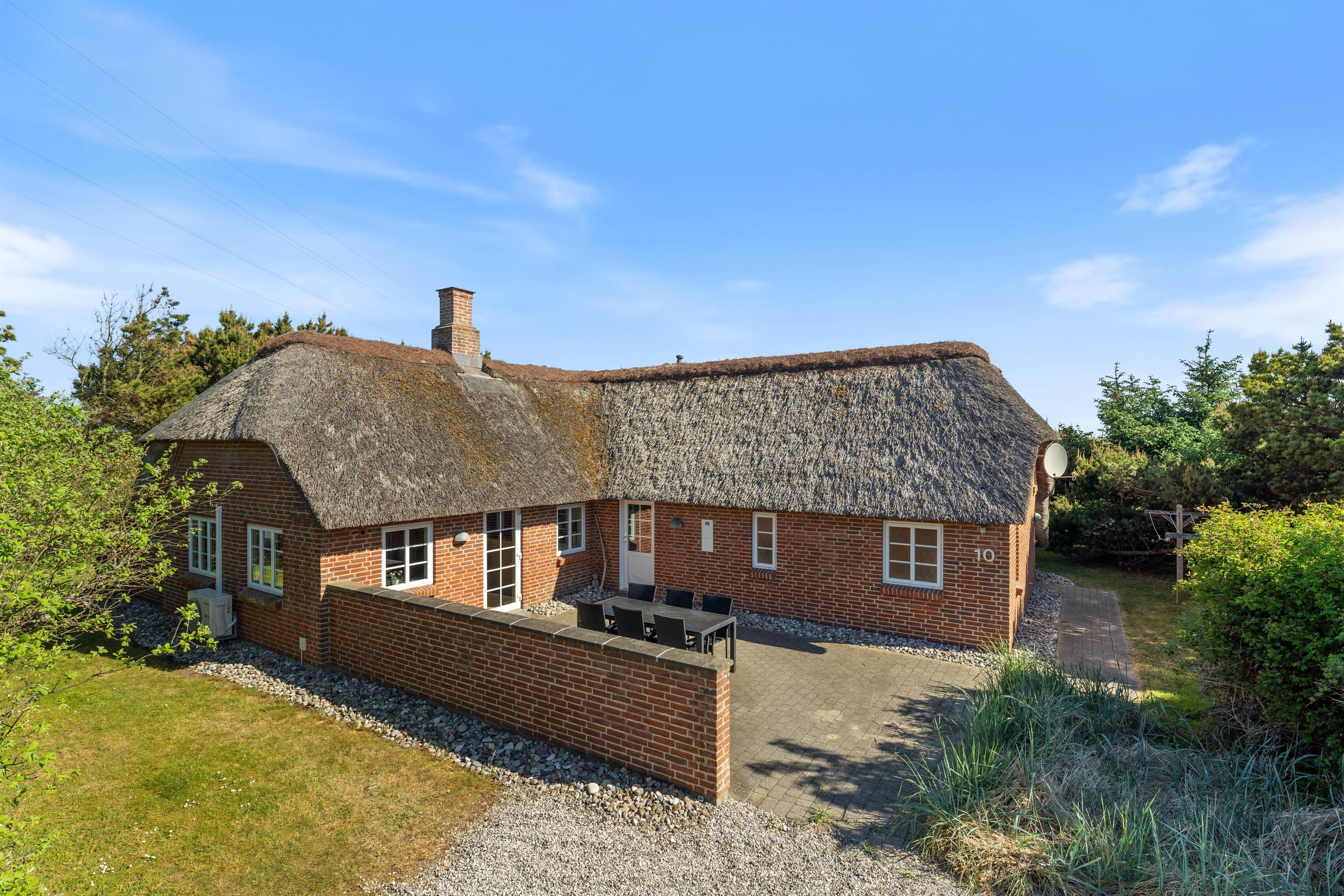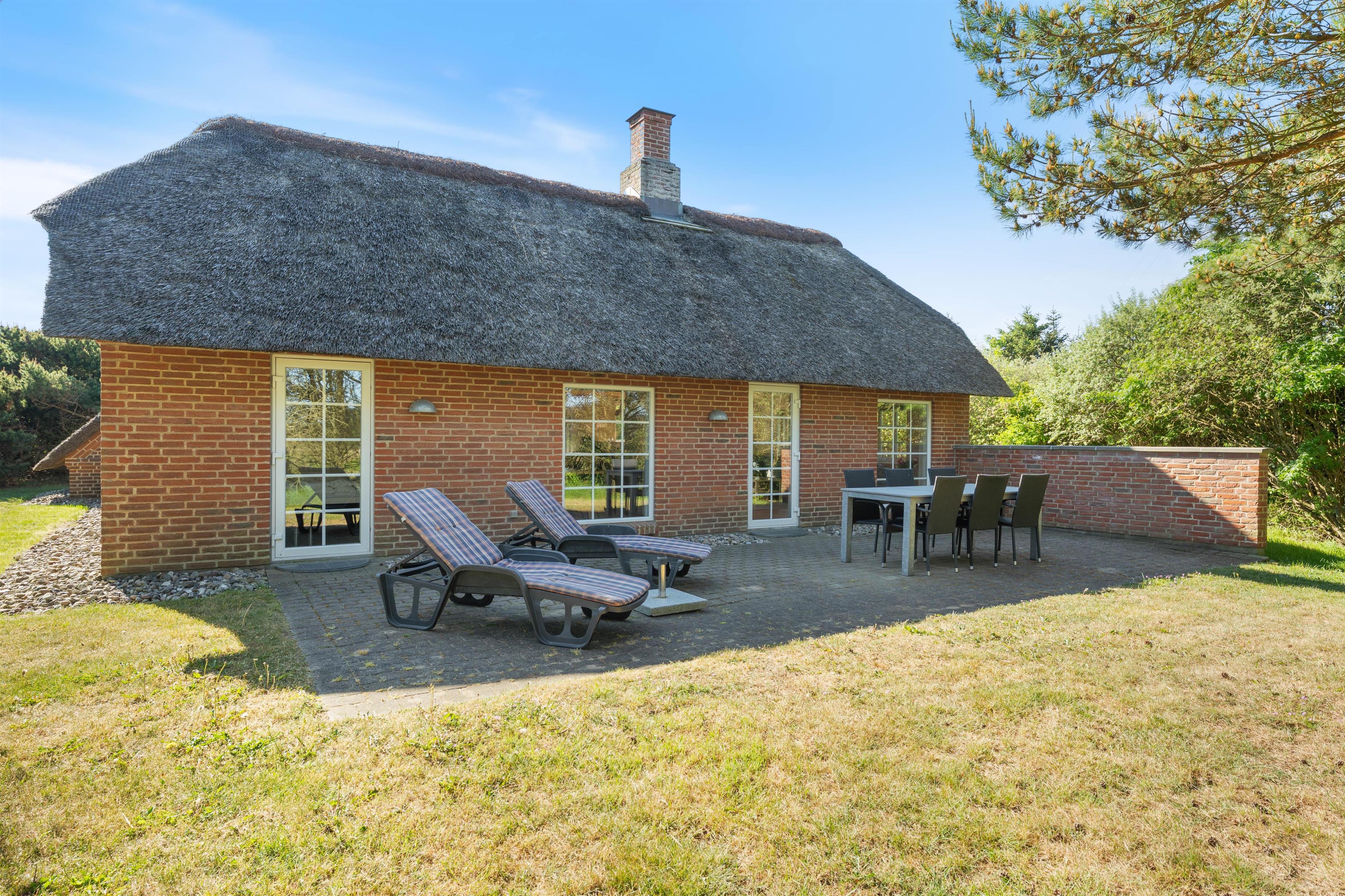 Et virkeligt dejligt sommerhus opført i stil med de gamle klitgårde i området. Det charmerende stråtag og de små vinduer giver en dejlig stemning af ferie og afslapning. Huset ligger lige op til stort fredet hedeområde, perfekt til spadsereture i den smukke natur.