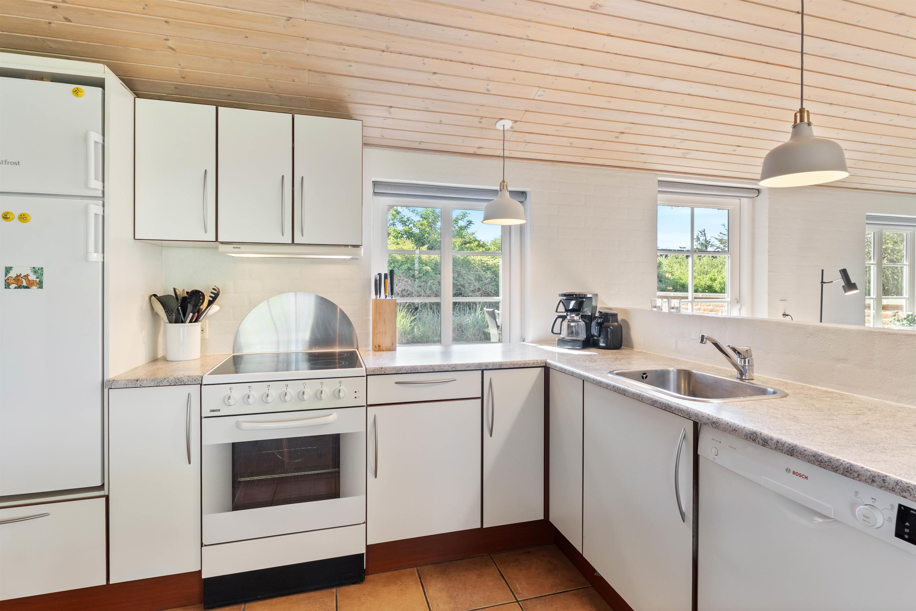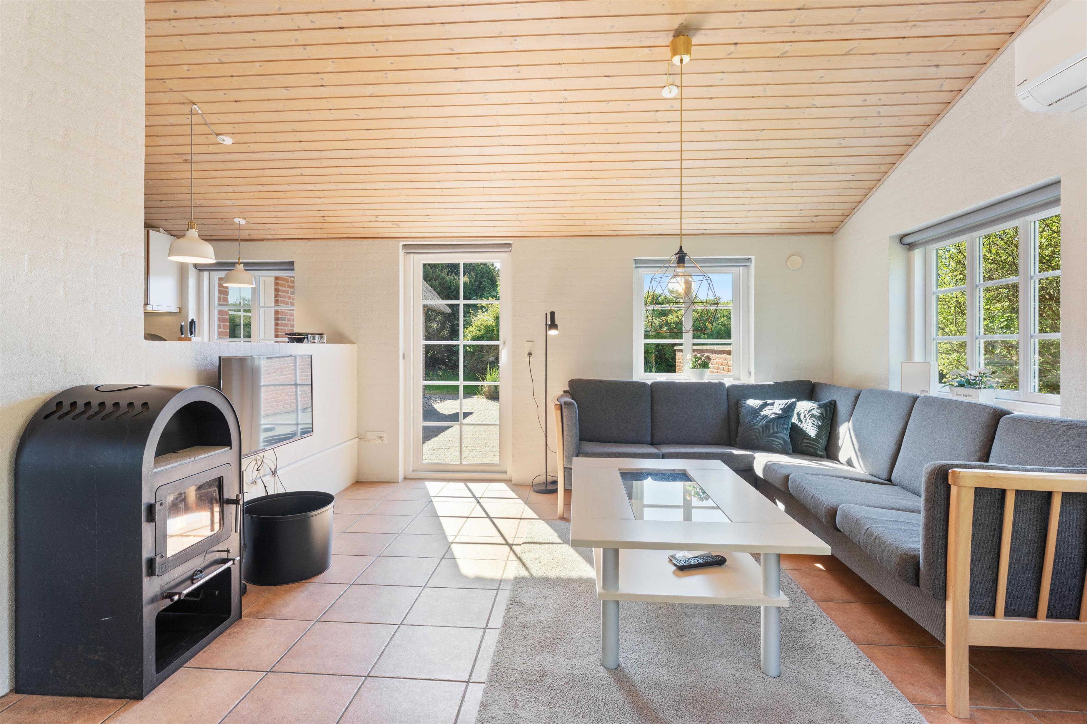 I dette hus er der mange af de moderne faciliteter, som bliver efterspurgt i dag. Desuden er der også en stor fladskærm, hvor film og sport kan nydes som derhjemme, og den trådløse internetforbindelse er til stor glæde for alle i familien. Den hyggelige brændeovn skaber både hygge og giver en dejlig varme.