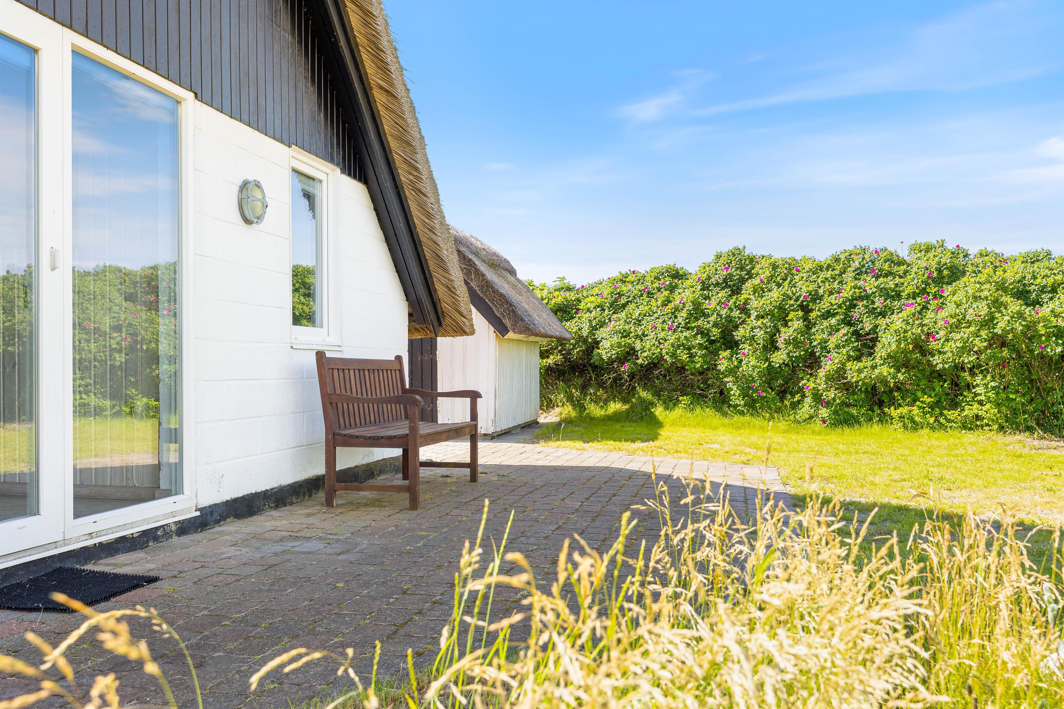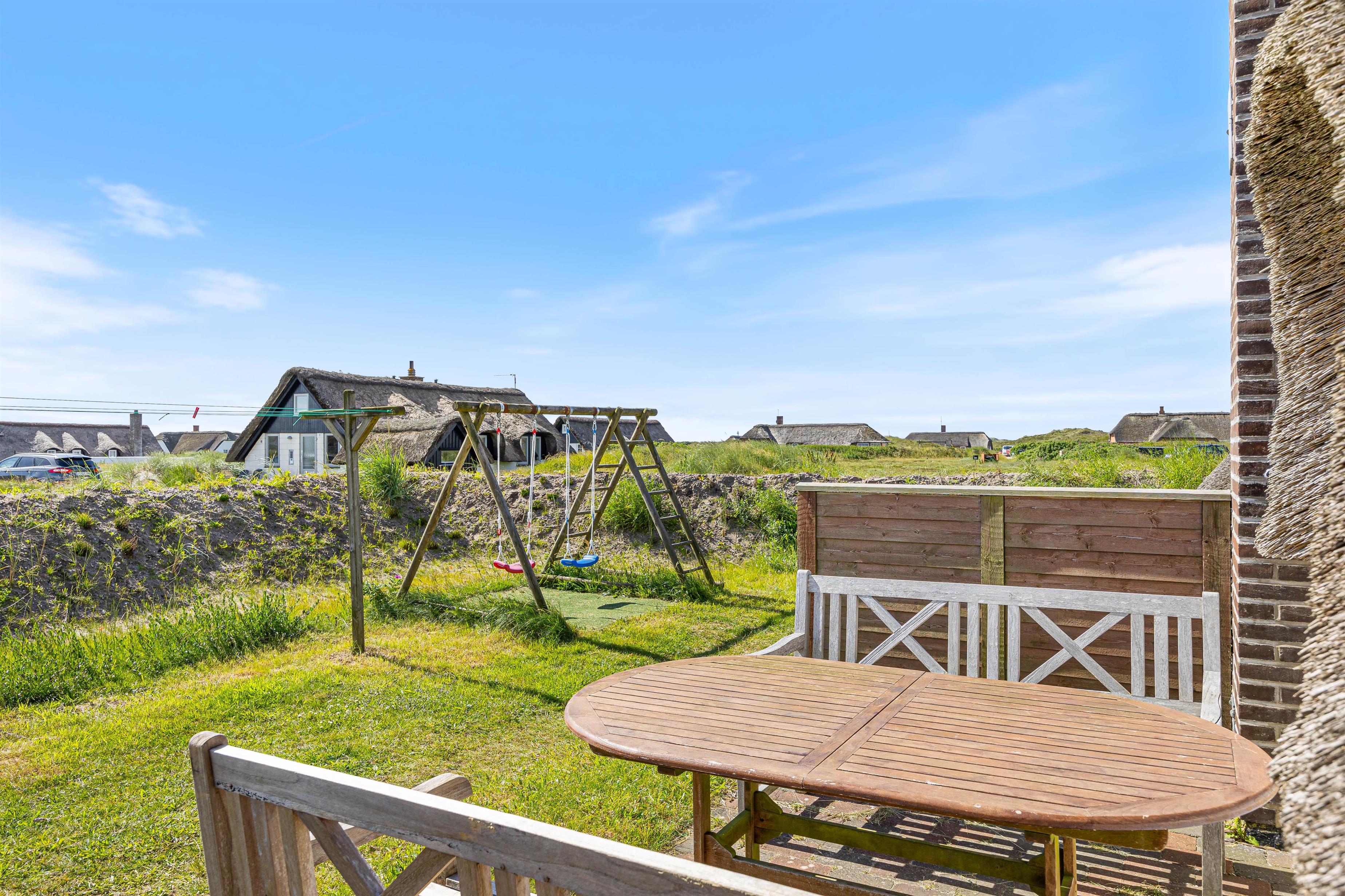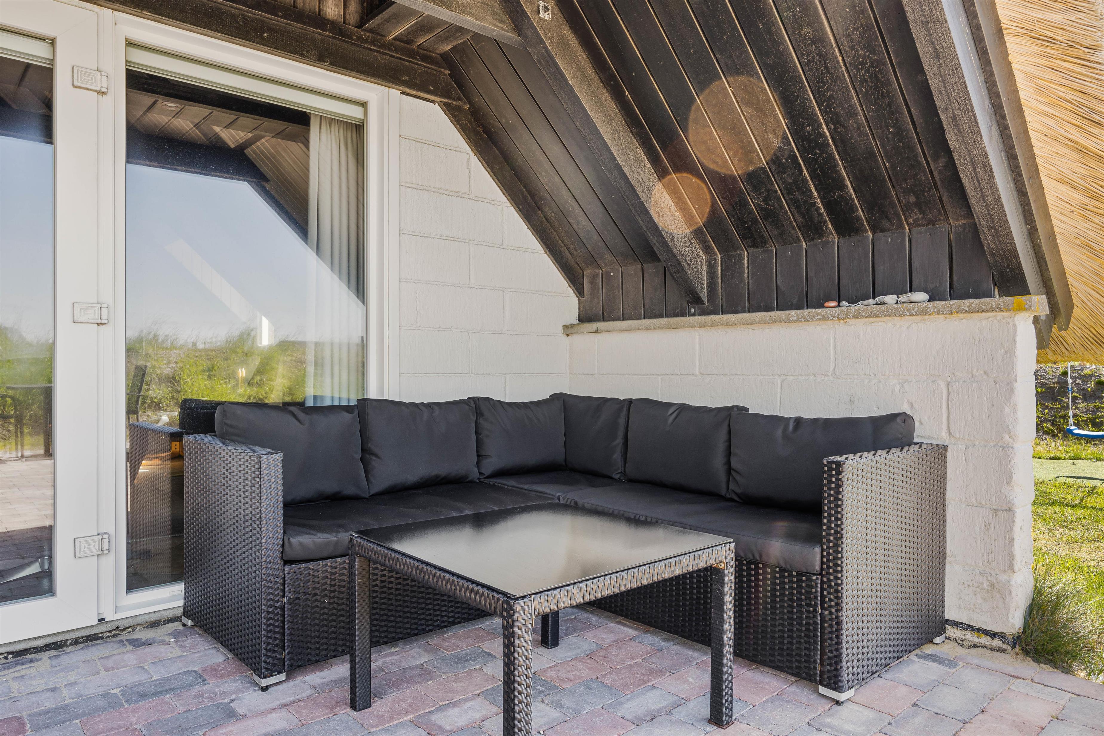 Sommerhuset har en dejlig åben terrasse, hvor I kan nyde solens stråler med de tilhørende havemøbler. Her er det også muligt at slappe af på den afskærmede terrasse, som giver lidt ekstra privatliv og mulighed for at nyde det danske vejr uanset vind og vejr. Til børnene er der en gynge, som kan give mange timers leg og underholdning.