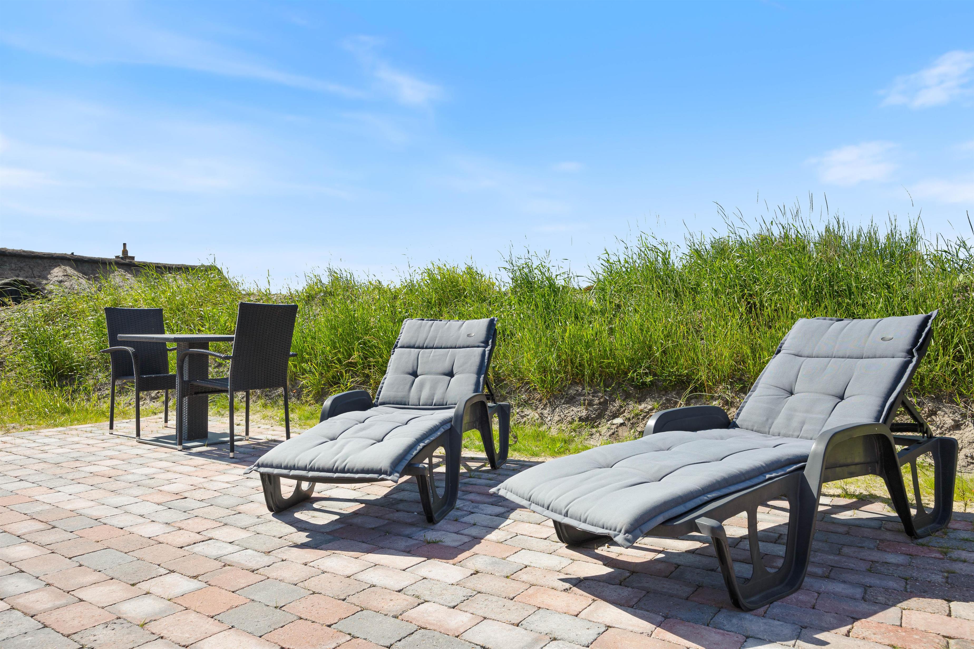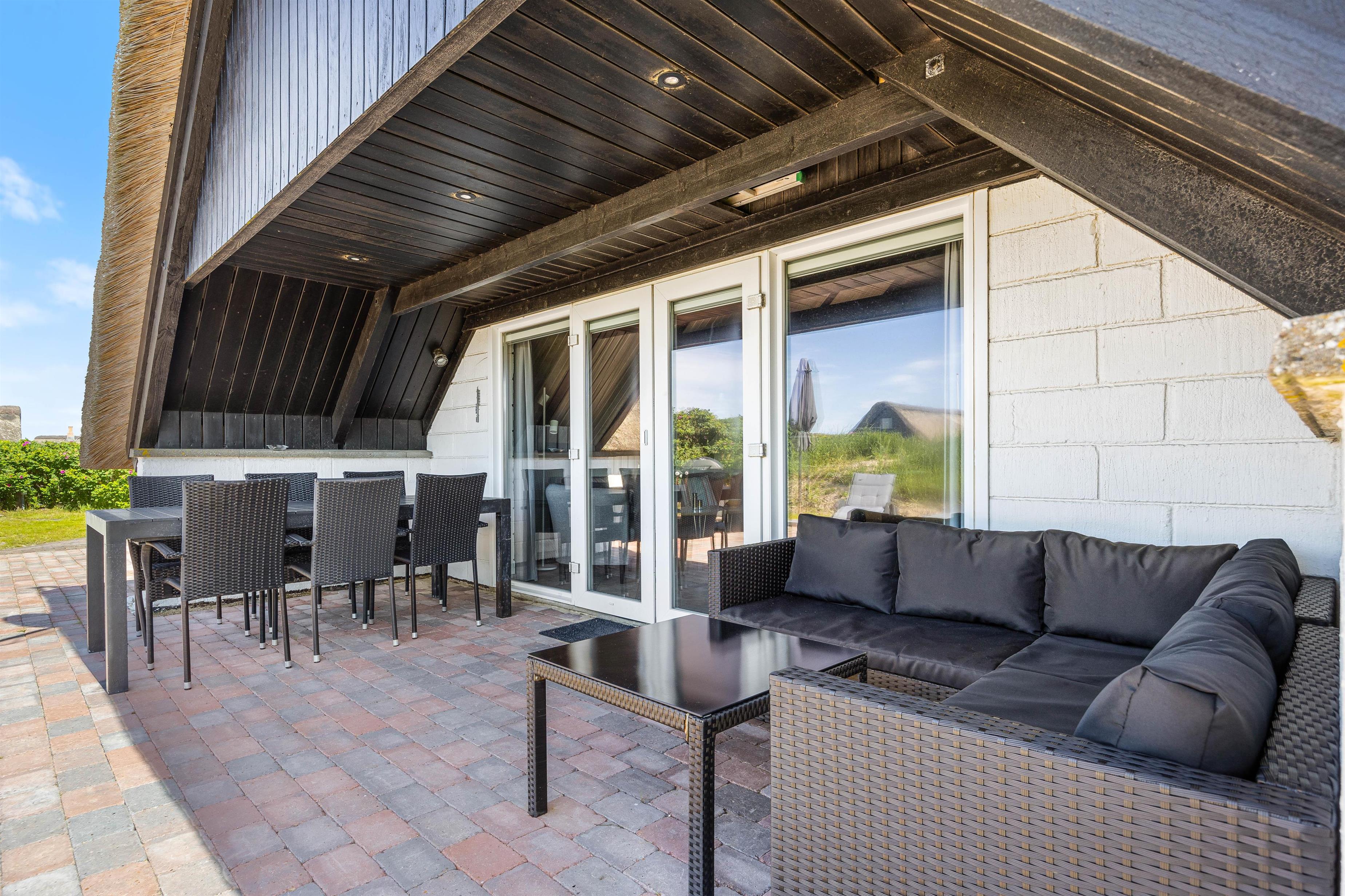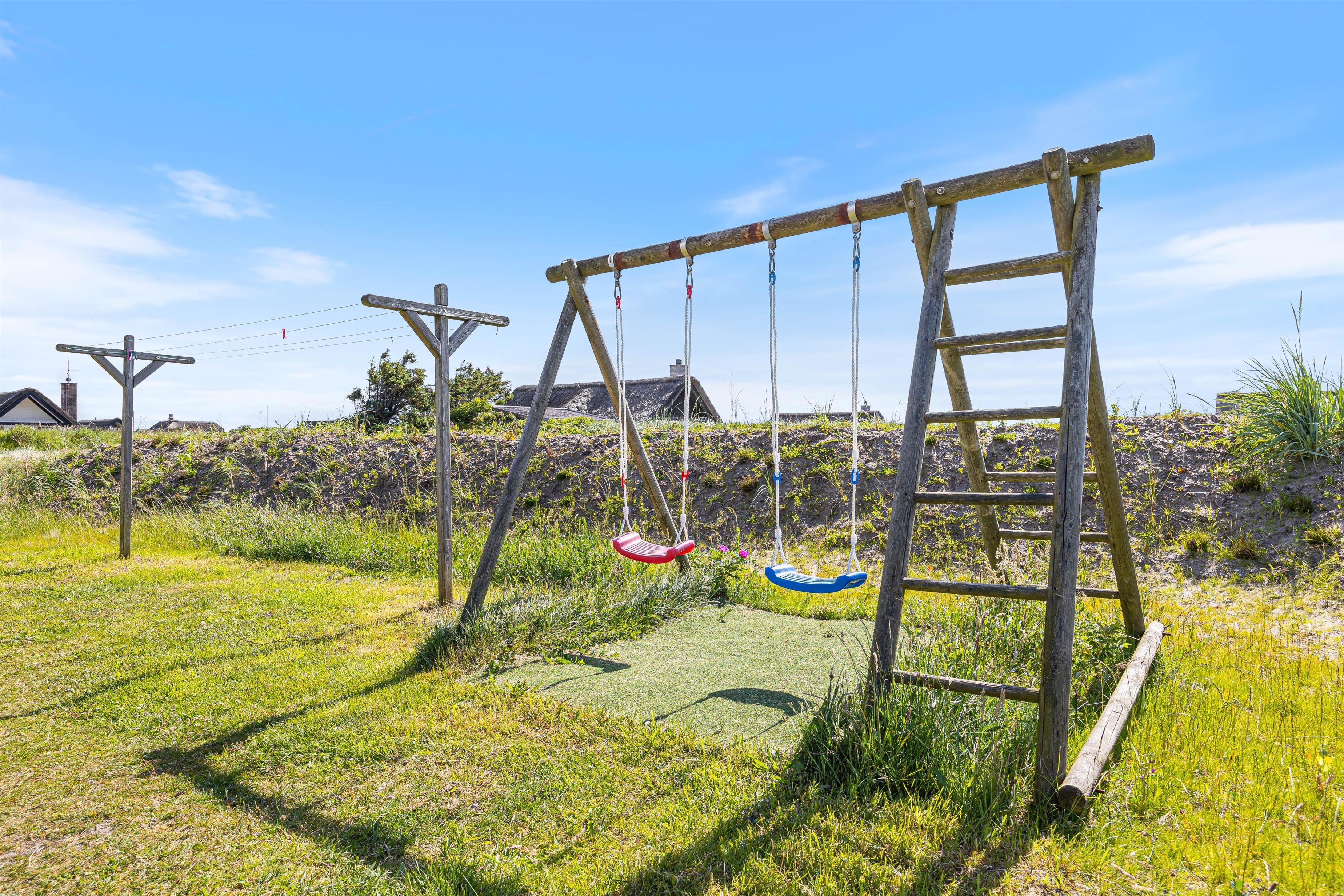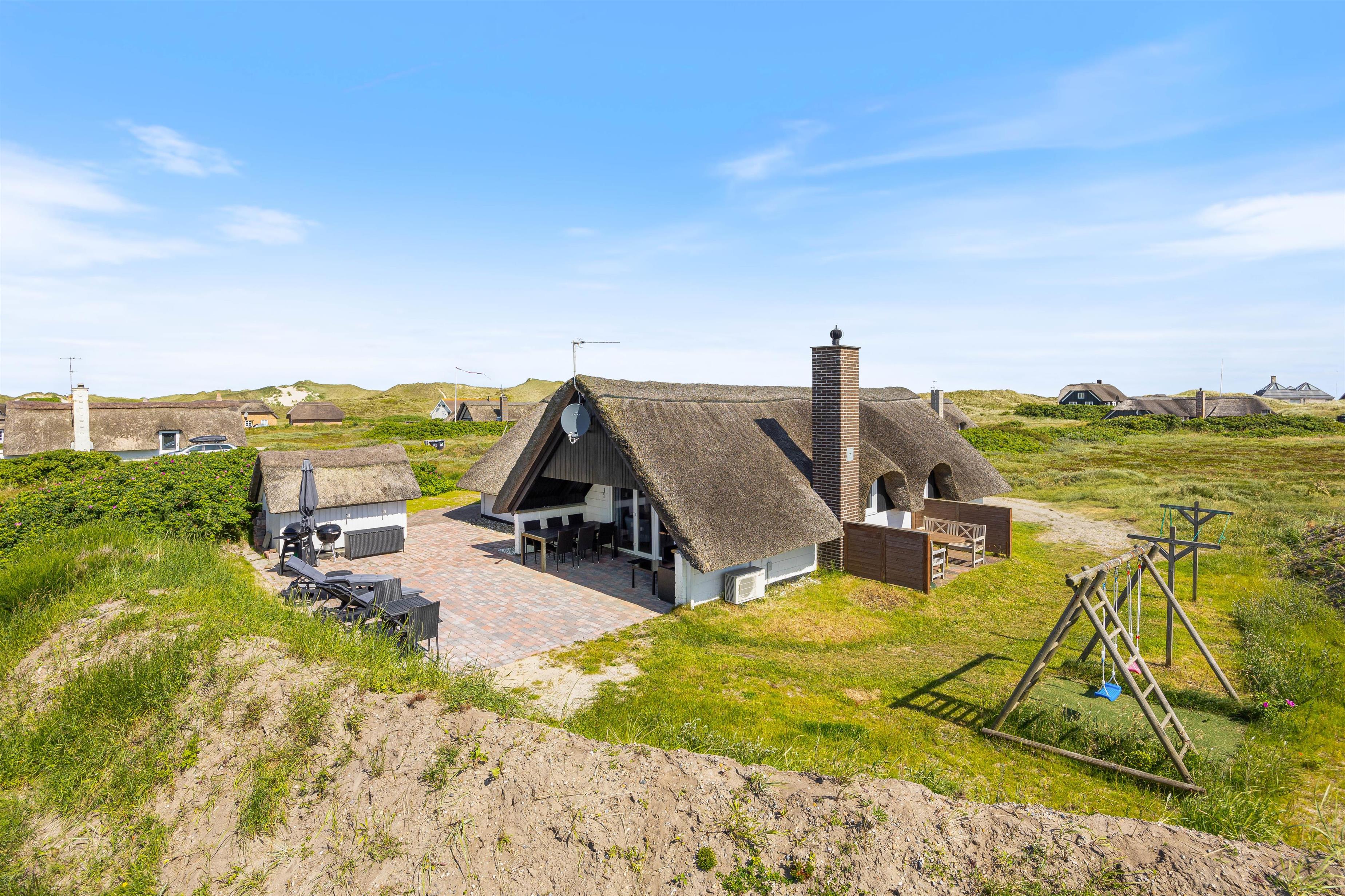 Sommerhuset har en dejlig åben terrasse, hvor I kan nyde solens stråler med de tilhørende havemøbler. Her er det også muligt at slappe af på den afskærmede terrasse, som giver lidt ekstra privatliv og mulighed for at nyde det danske vejr uanset vind og vejr. Til børnene er der en gynge, som kan give mange timers leg og underholdning.