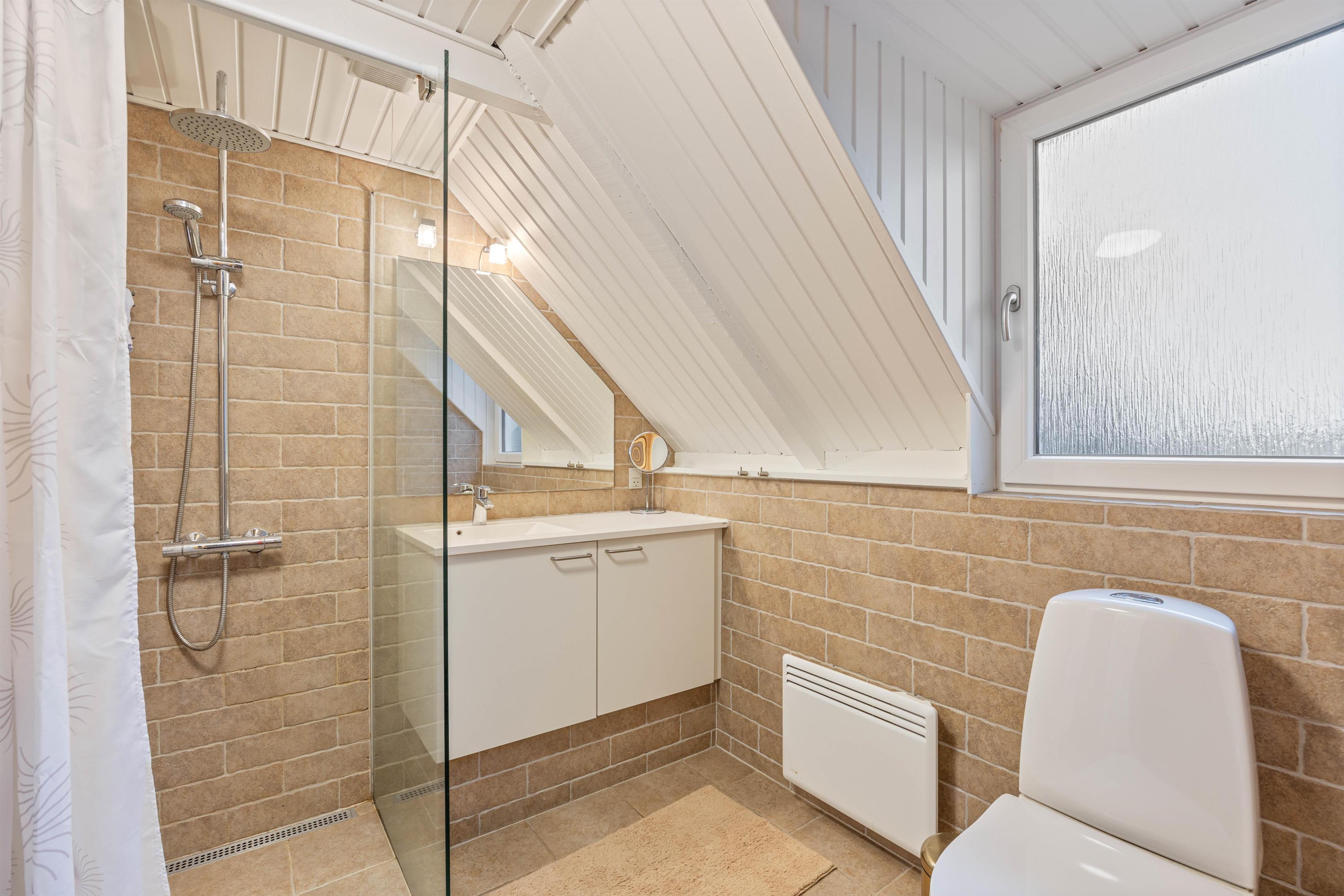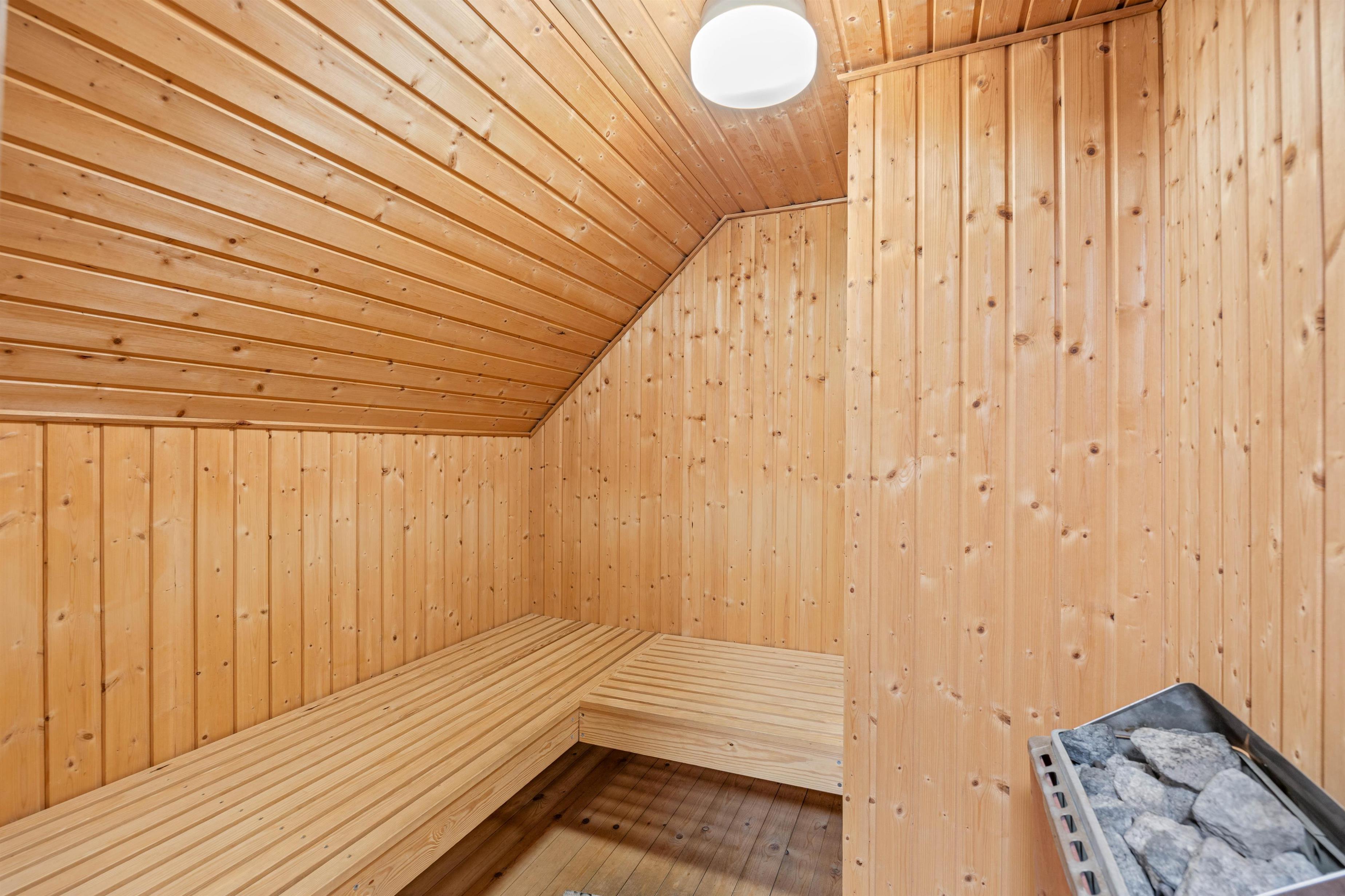 Efter en dejlig gåtur ved havet kan I sætte jer ind i sommerhusets sauna og nyde roen. Saunaen finder I på sommerhusets badeværelse, hvor der er gulvvarme.