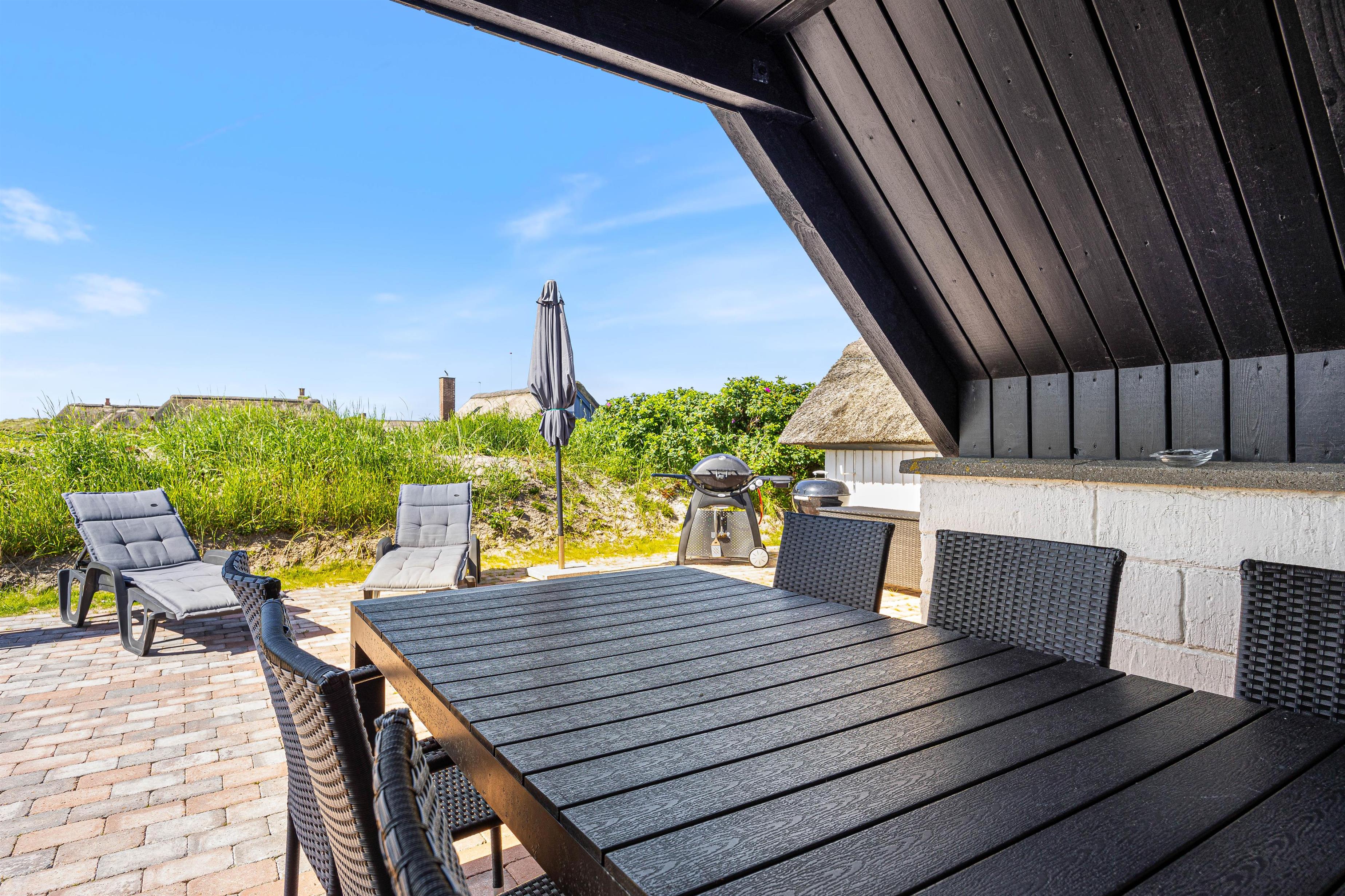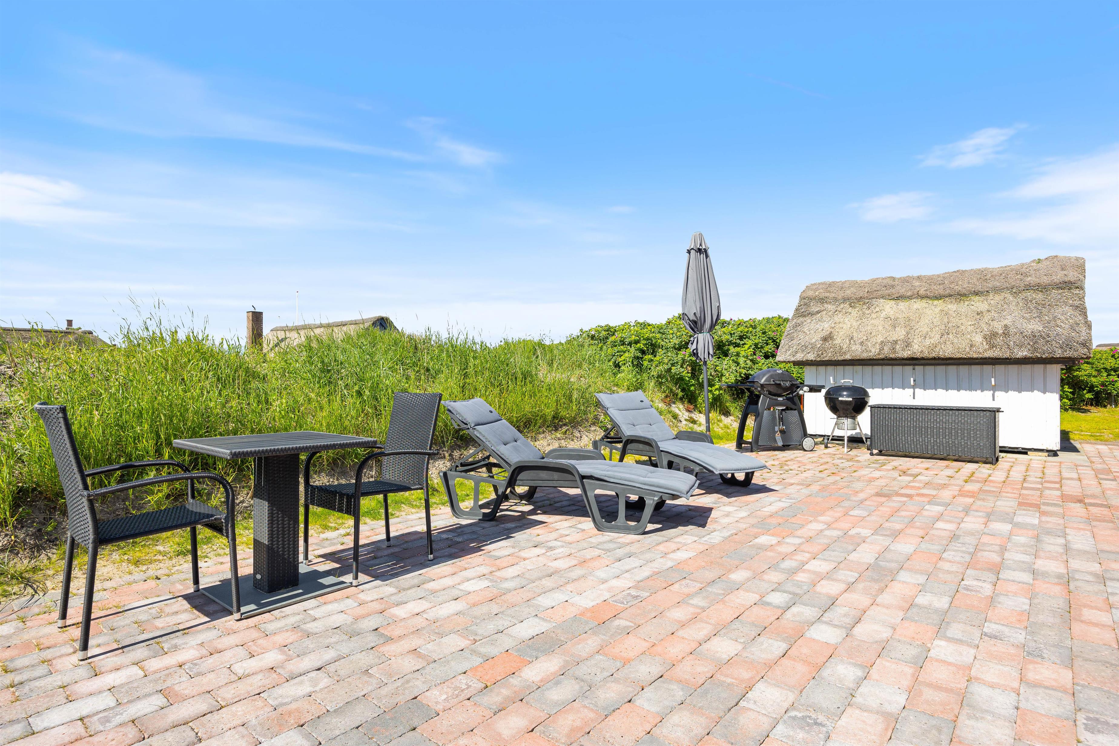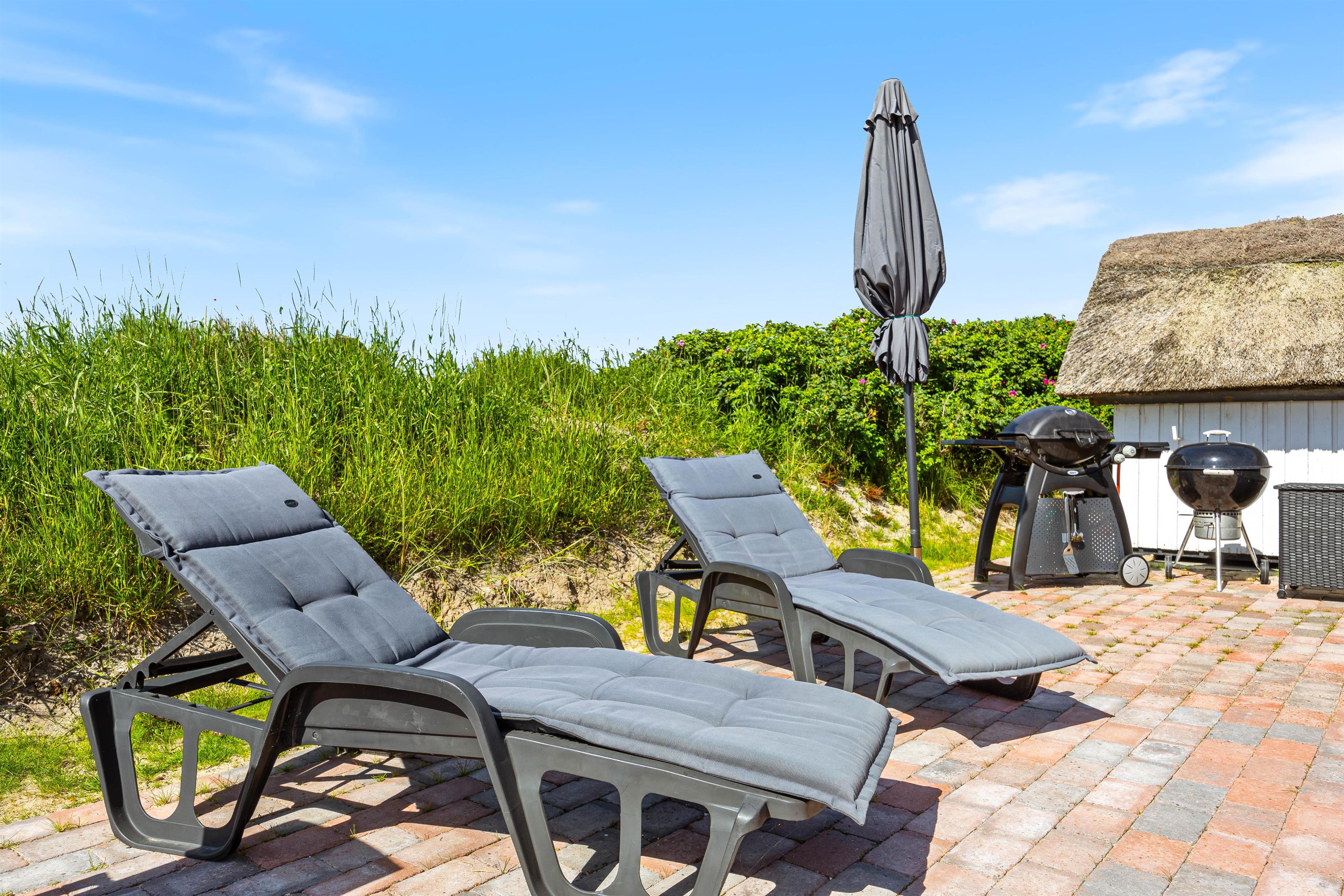 Med grillen kan I tilberede lækre måltider og spise under åben himmel. Til huset hører både en kulgrill og en gasgrill.