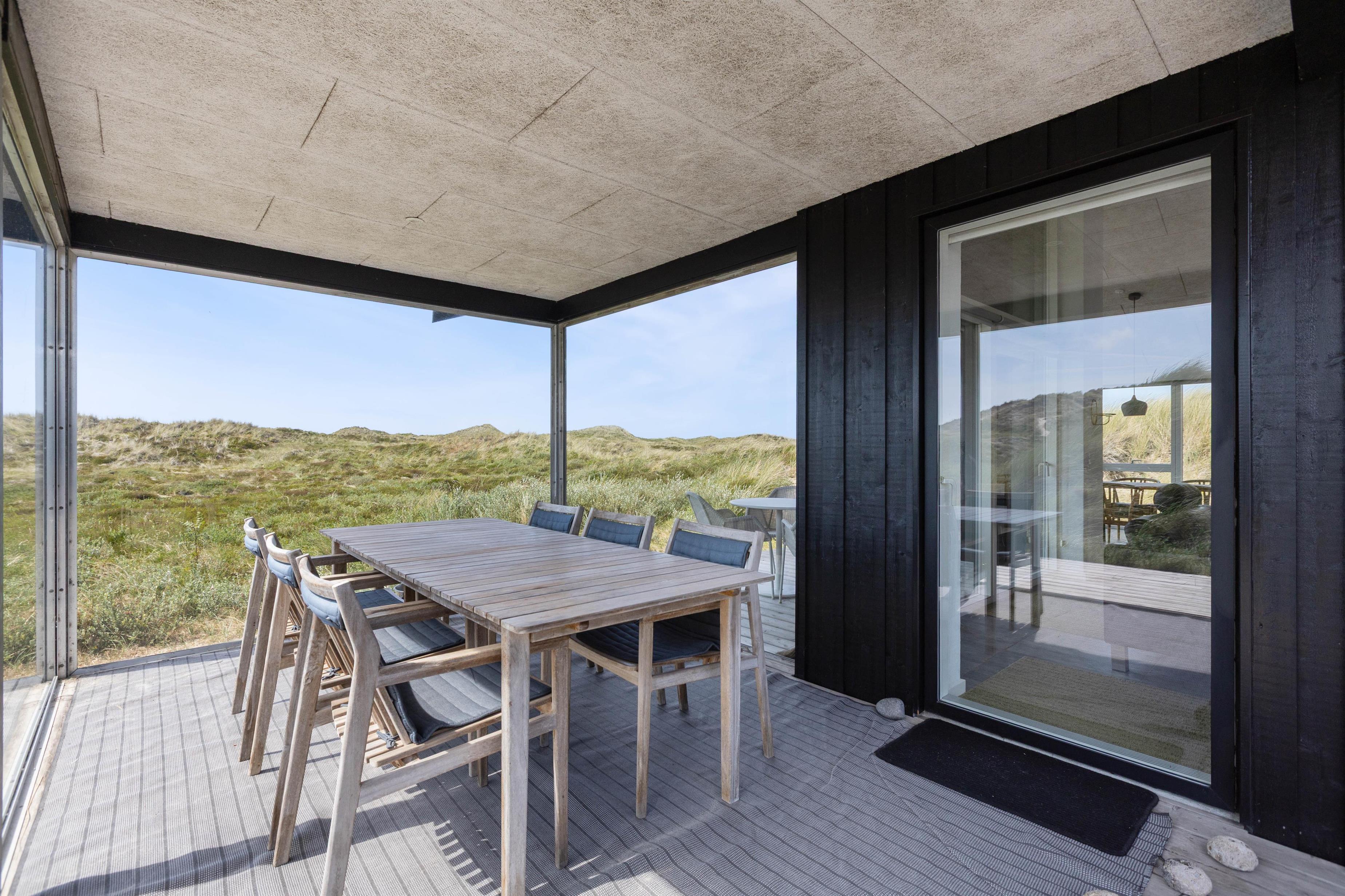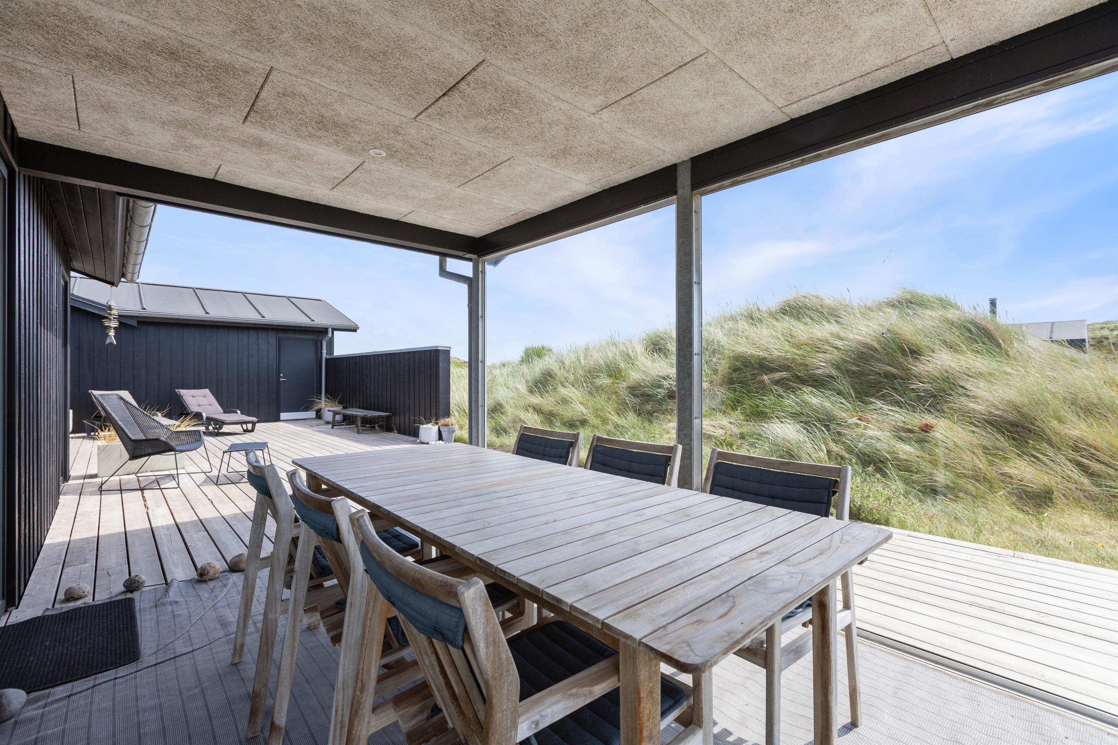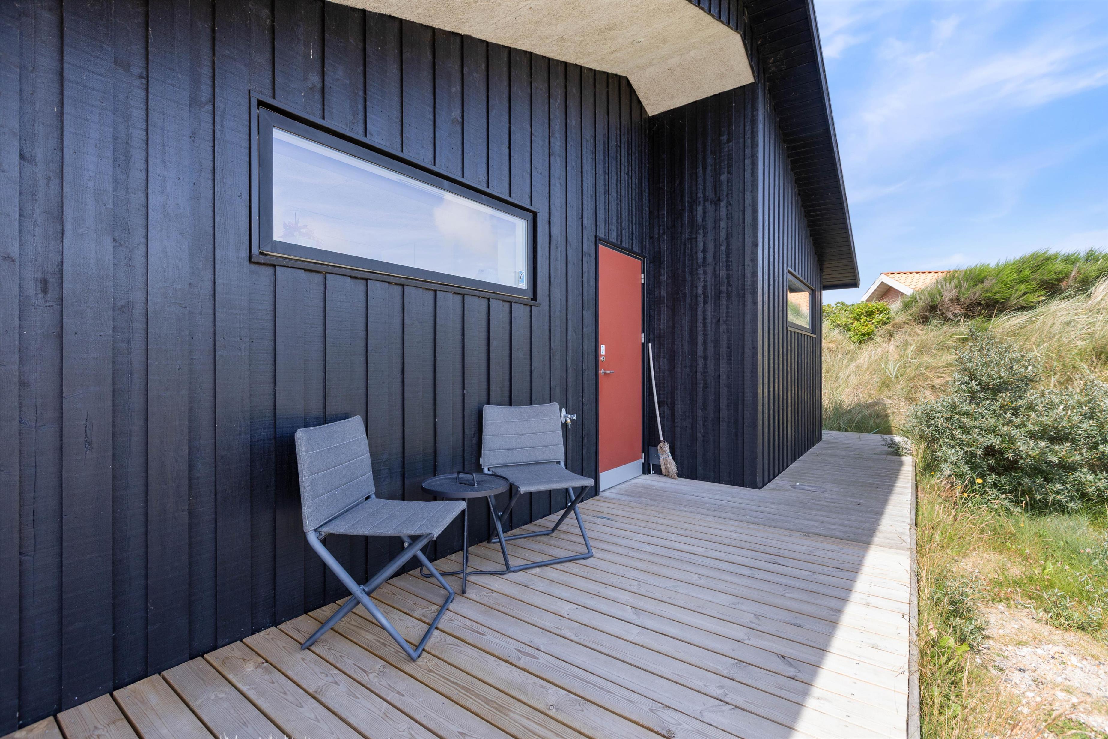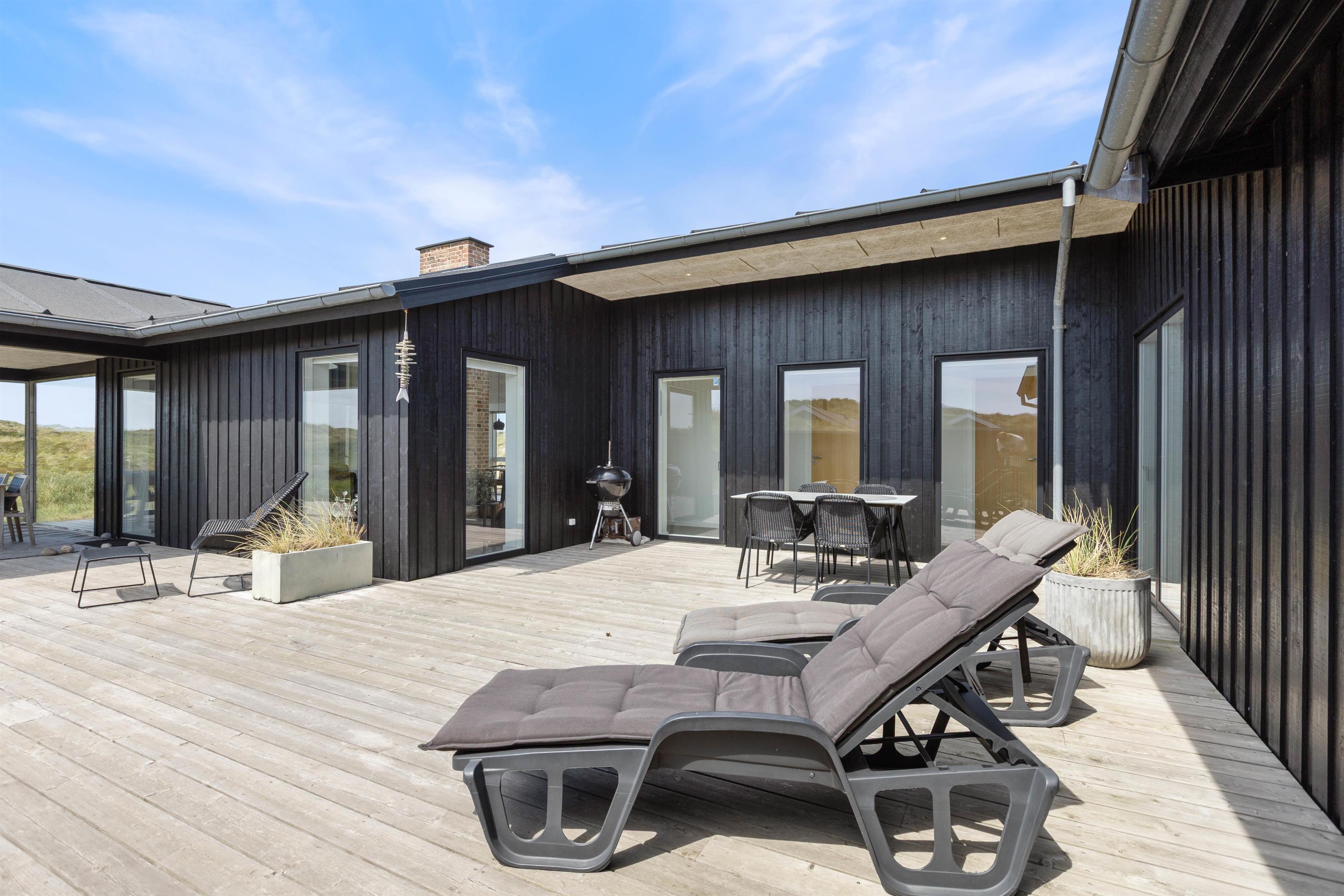 Hele vejen rundt om sommerhuset på Havklitvej 95 i Klegod er der hyggelige terrasser, så man har rig mulighed for at nyde solens stråler og den storslåede natur, som I har panoramaudsigt til. De afskærmede og overdækkede terrasser er med til at forlænge ”ude-tiden”. En hyggelig grillaften på terrassen, med solnedgangen og havets brusen i baggrunden, må være den ultimative nydelse og afslapning.