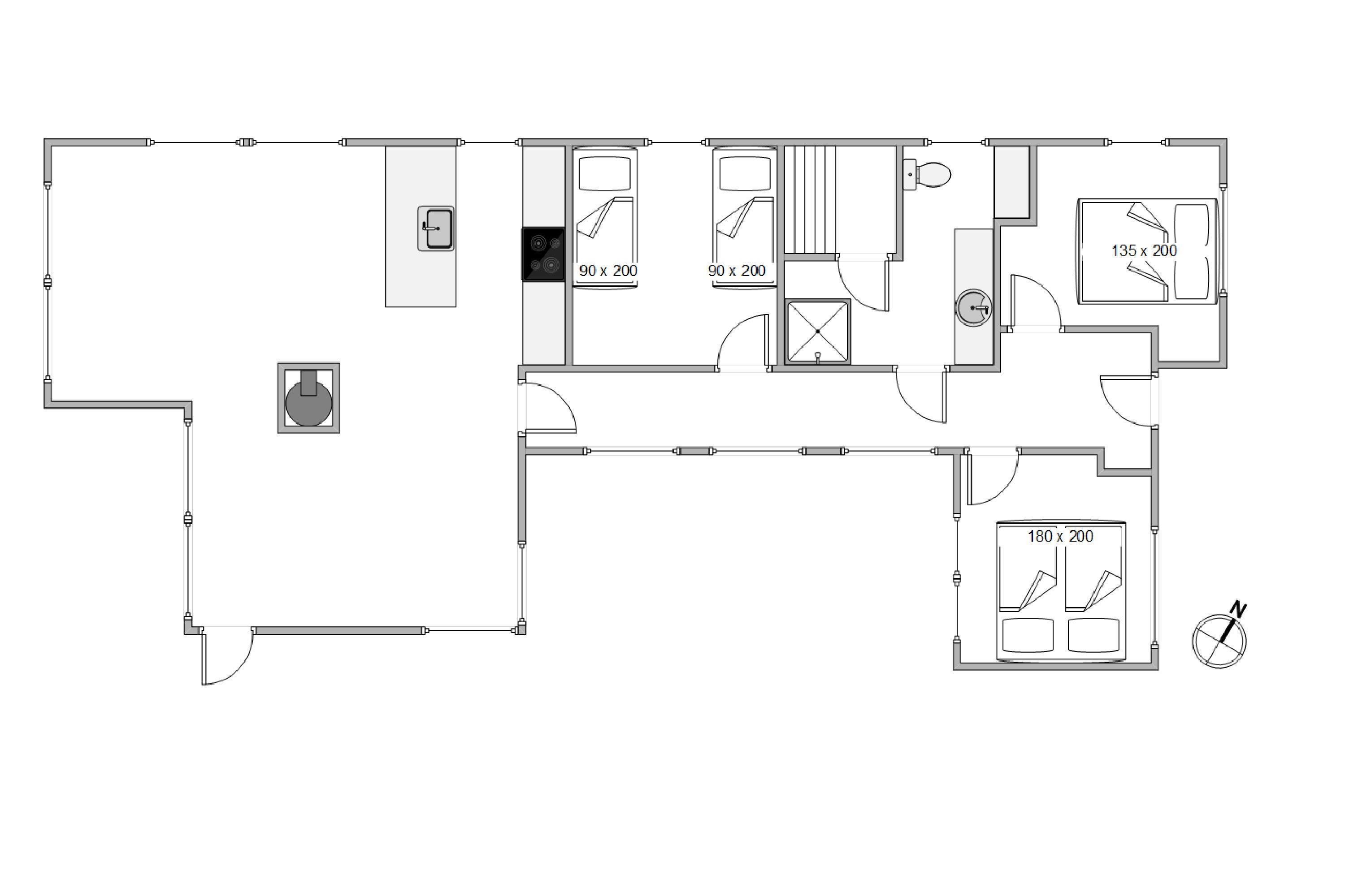 Der er 3 soverum, hvoraf 2 rum med dobbeltsenge og et med to enkeltsenge. I forbindelse med badeværelset er der også en sauna. Der er også vaskemaskine i feriehuset, som gør det nemt og afslappende for småbørnsforældre - de kan roligt lade børnene lege og blive beskidte i naturen.