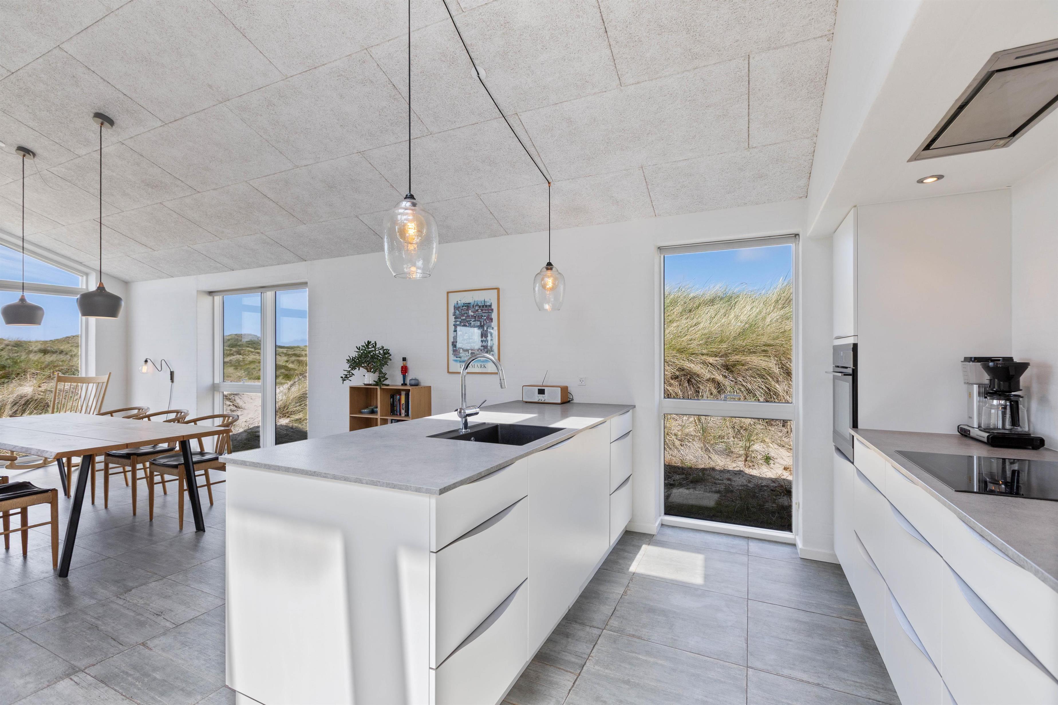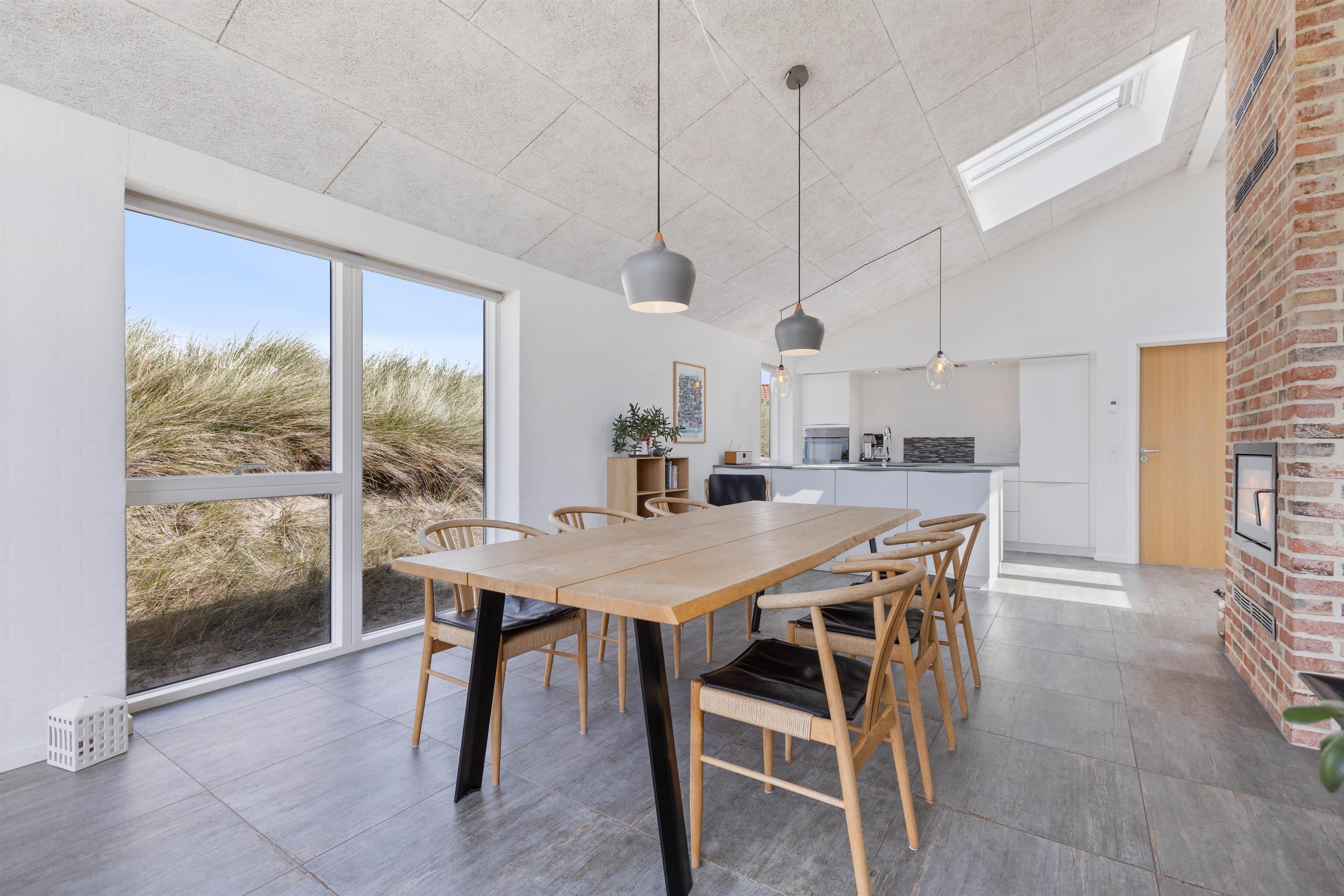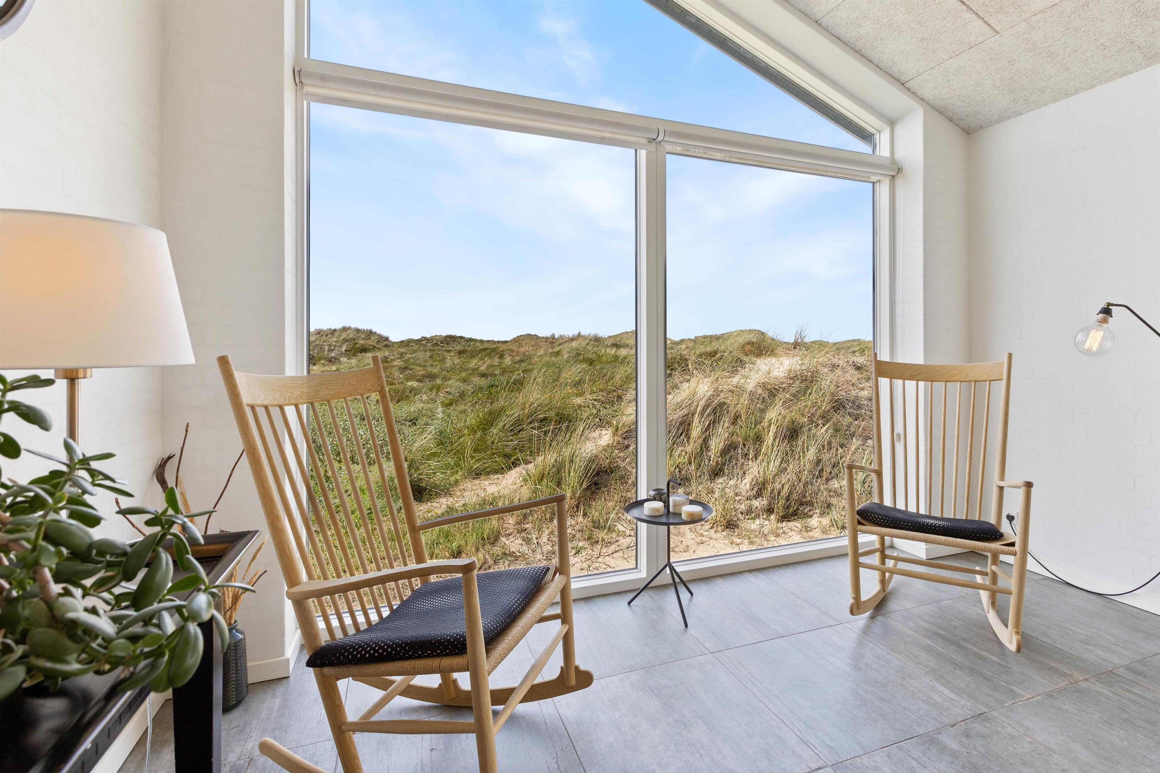 Uforstyrret og med panoramaudsigt til klitterne og åbent område kan I nyde ferien i dette skønne feriehus på Havklitvej 95 i Klegod. Feriehuset er helt fantastisk, og indretningen er flot og gennemført.