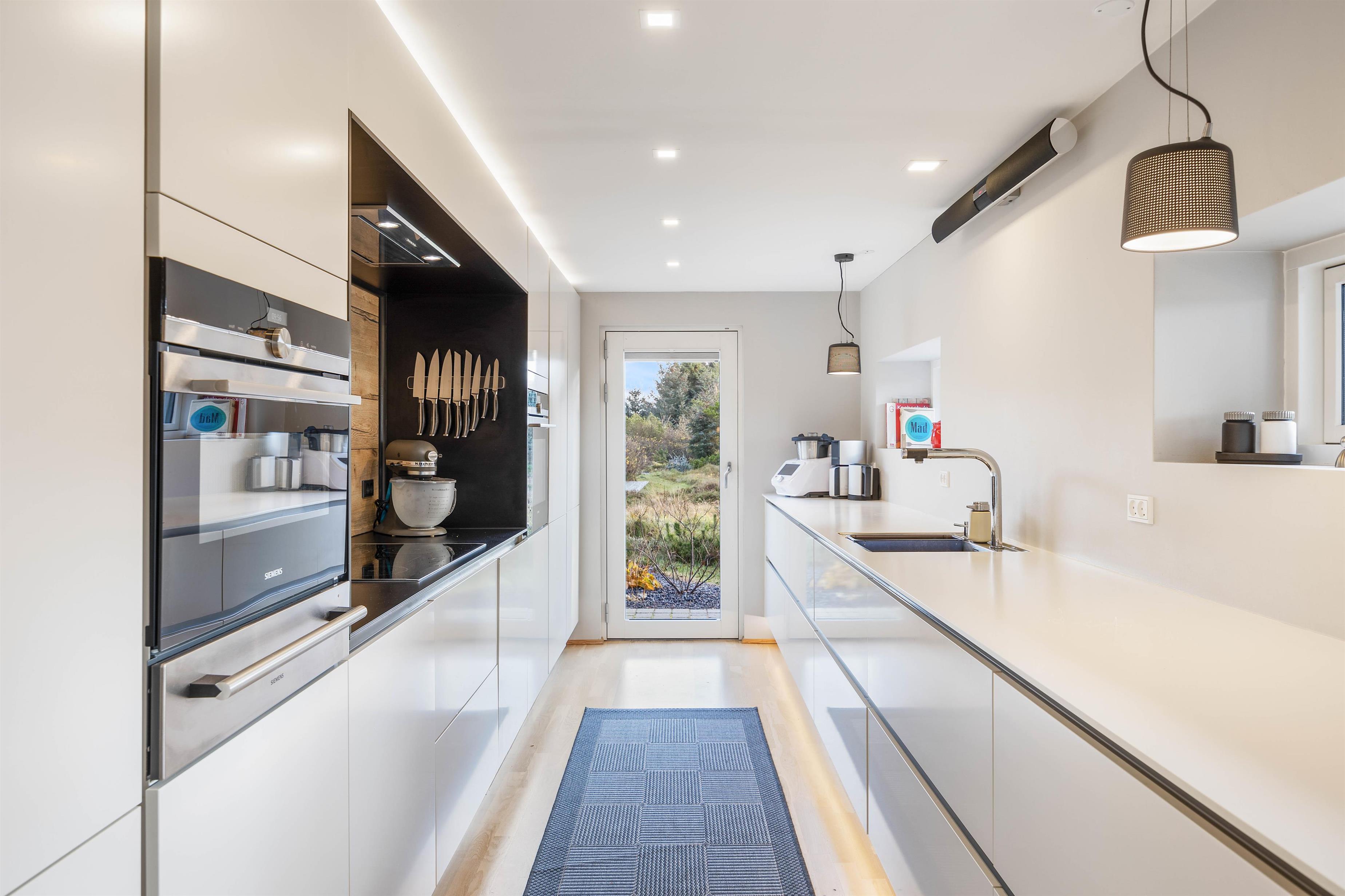 Køkkenet er fuldt udstyret med opvaskemaskine, hvilket gør det nemt at holde ferie uden bekymringer. Sommerhuset har to komfortable soverum og et lækkert badeværelse med gulvvarme og sauna, samt et ekstra gæstetoilet. Derudover er der både vaskemaskine og tørretumbler til rådighed.