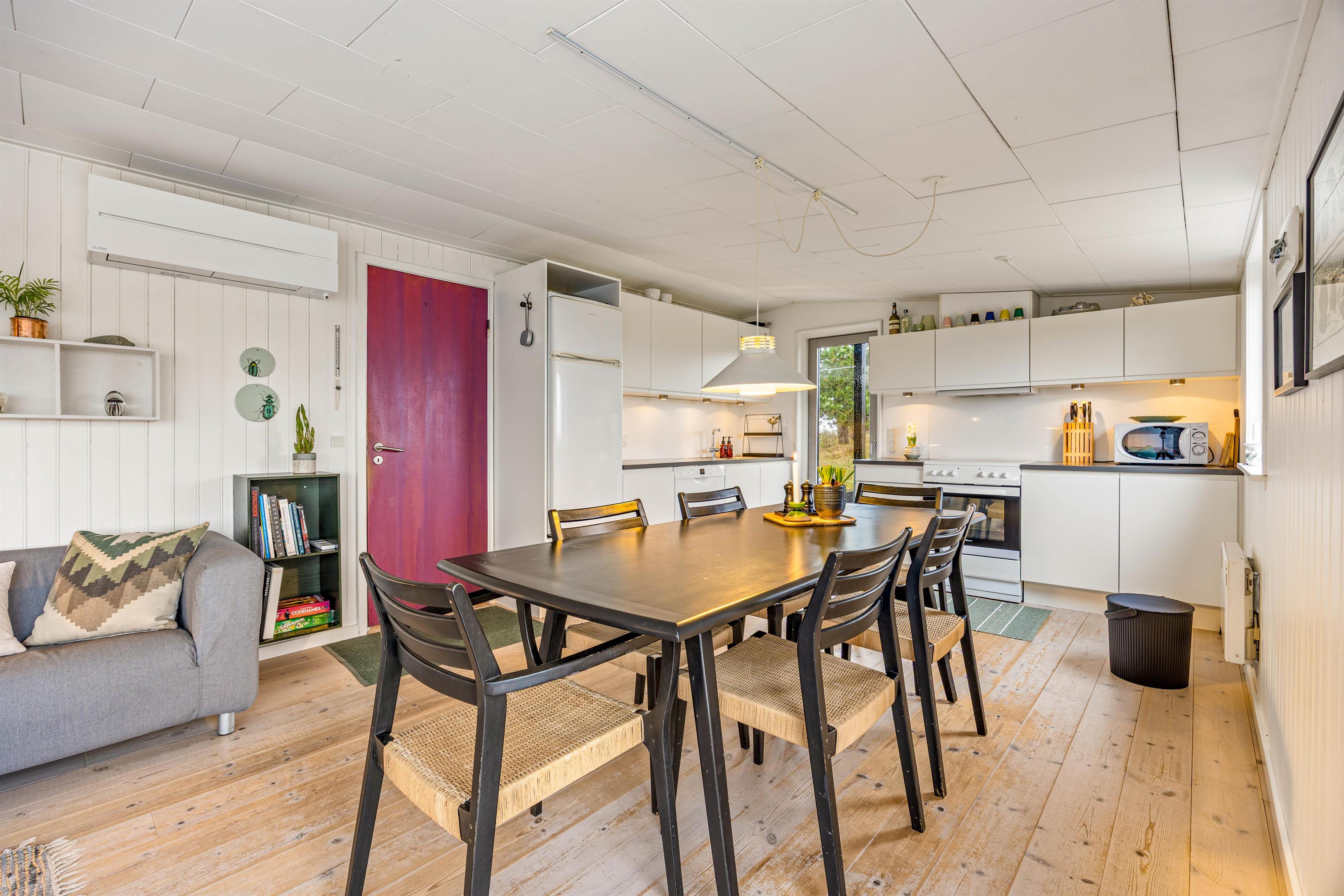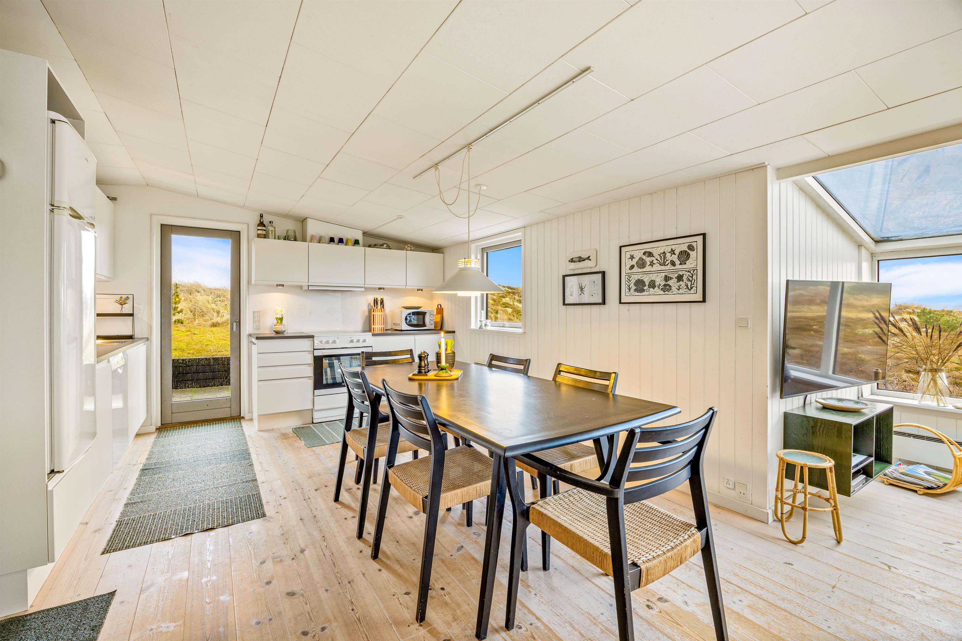 Huset er indrettet med respekt for den omkringliggende natur. Stilen er enkelt og flot og uden de store armbevægelser. Her skal indretningen ikke tage fokus fra det væsentlige – den flotte natur udenfor og udsigten over klitterne. Vægge og lofter er holdt hvide i både køkken og alrum, hvilket skaber en rar og god stemning. Huset har desuden sauna, brændeovn samt gratis, trådløst internet.
