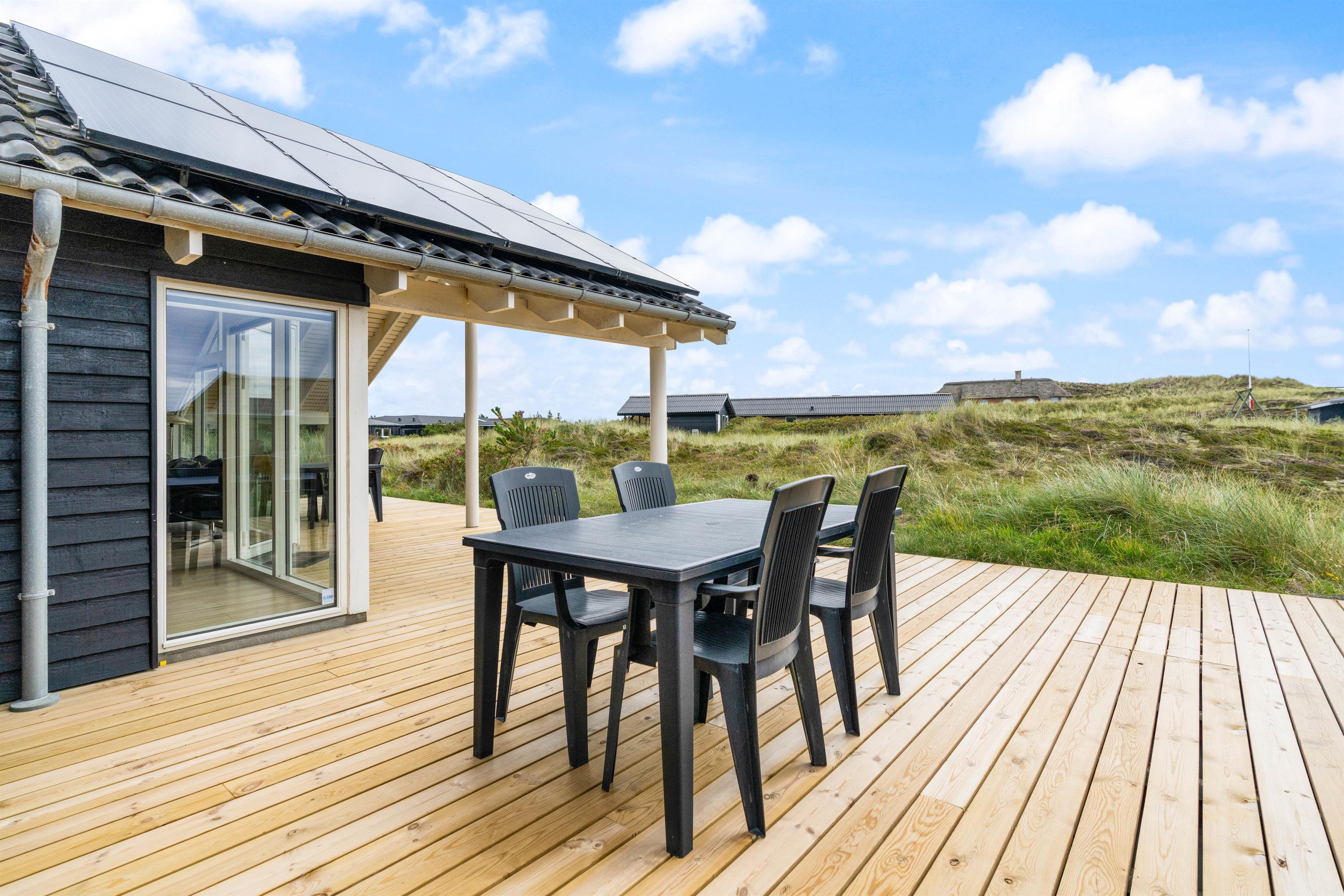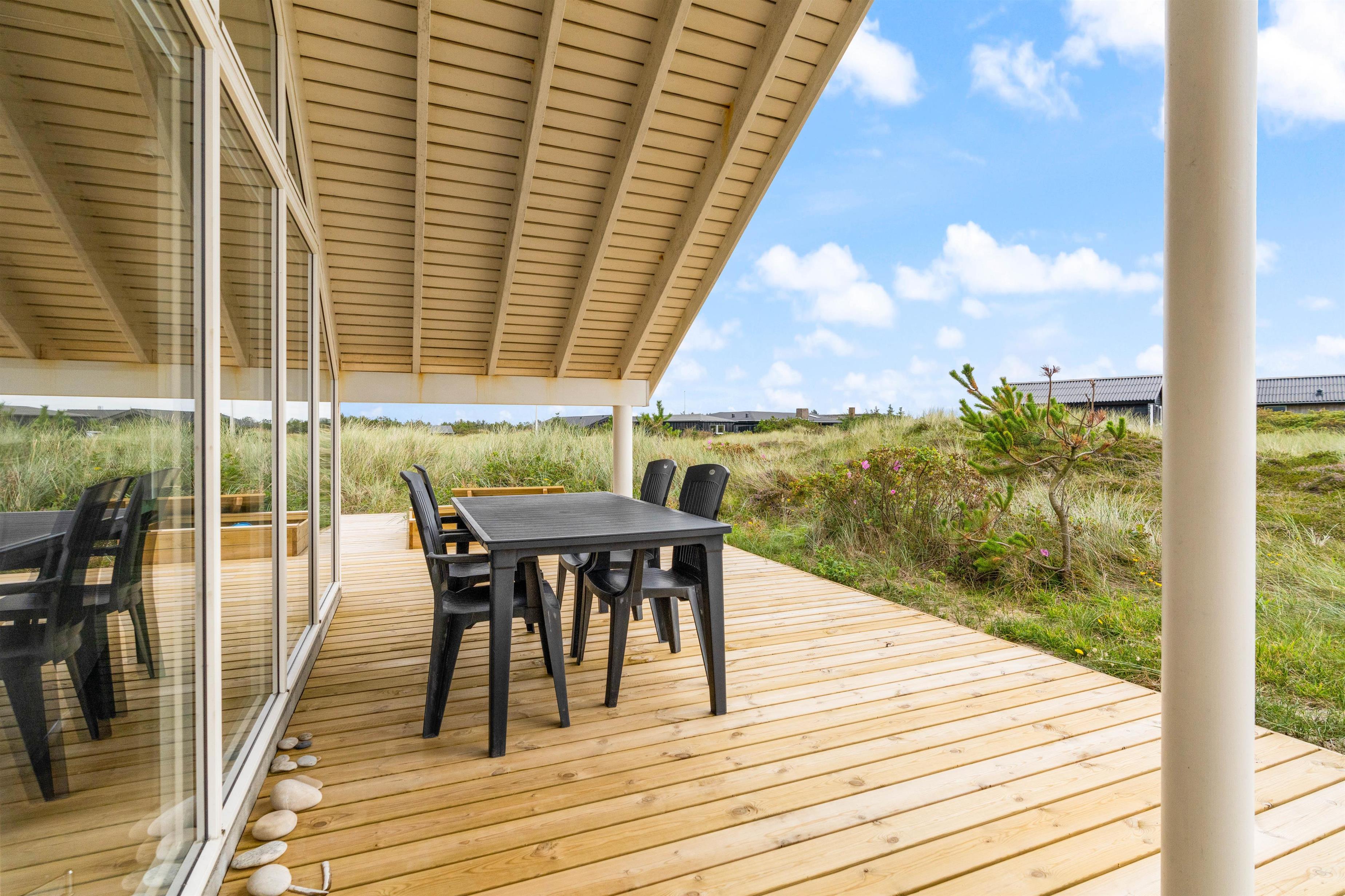 Huset ligger på en stor naturgrund kun 300 meter fra stranden. En super dejlig og stor terrasse med delvis overdækning hvor sommerdagene rigtig kan nydes. Tag grillen frem og tilbered din frokost eller aftensmad og bare nyd solen og ferien i fulde drag.