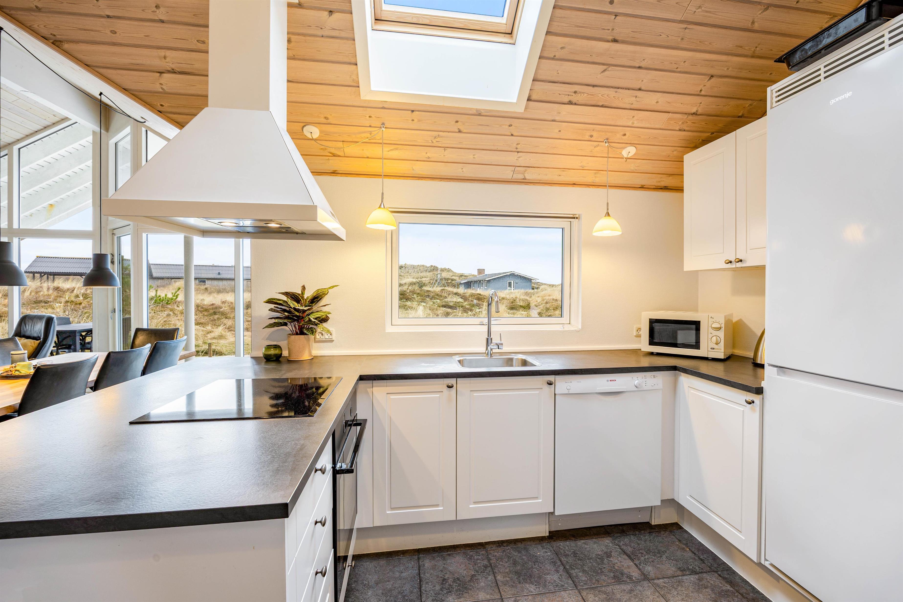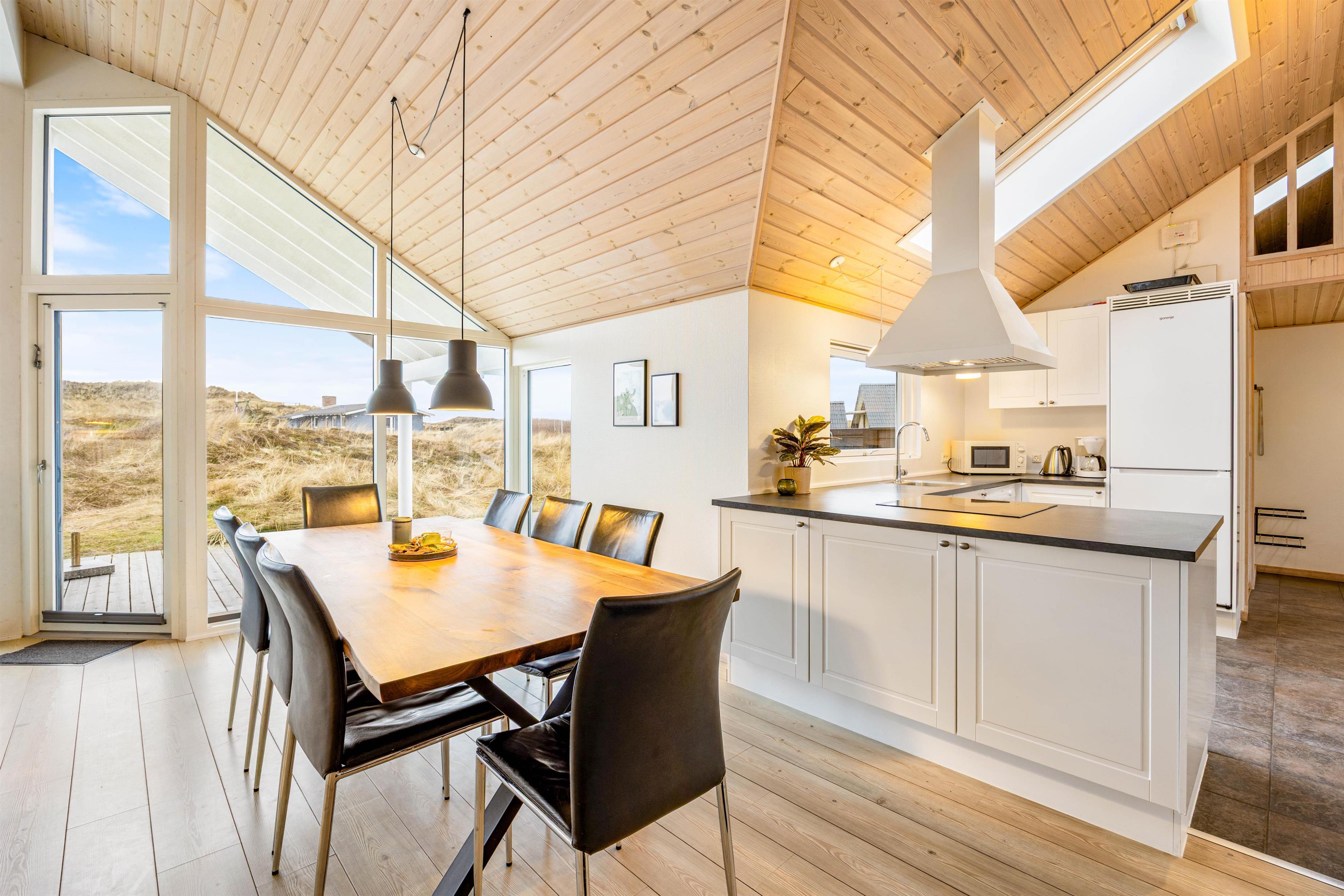 Et førsteklasses arkitekttegnet træhus med en skøn og flot indretning med gode detaljer. Huset er til 8 personer, fordelt på 3 lyse og dejlige dobbeltværelser og en hems med 2 enkeltsenge, lige noget for børnene. Et flot stort vindues parti lader lyset strømme ind i det centrale område i huset, som rummer stuen, spisestuen og køkkenet. Herfra er der adgang til et lækkert aktivitetsrum med billard og pool, her kan der hygges og konkurreres på livet løs. Det store badeværelse indbyder til ren forkælelse, hop i spaen og mærk hvordan boblerne får din krop til at slappe af og slut så af med lidt tid i saunaen. Tænd for brændeovnen og lad varmen strømme ud i rummet.