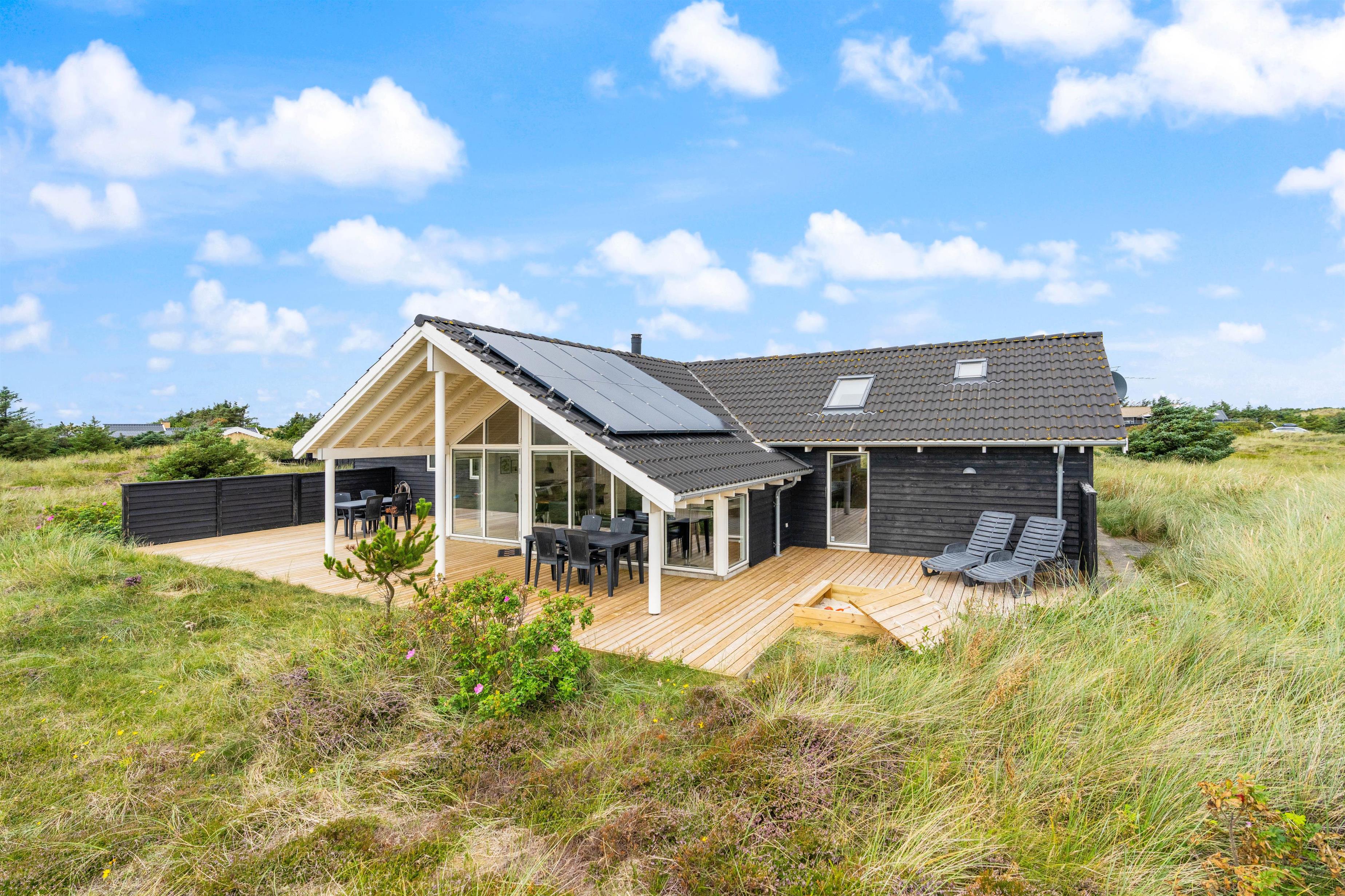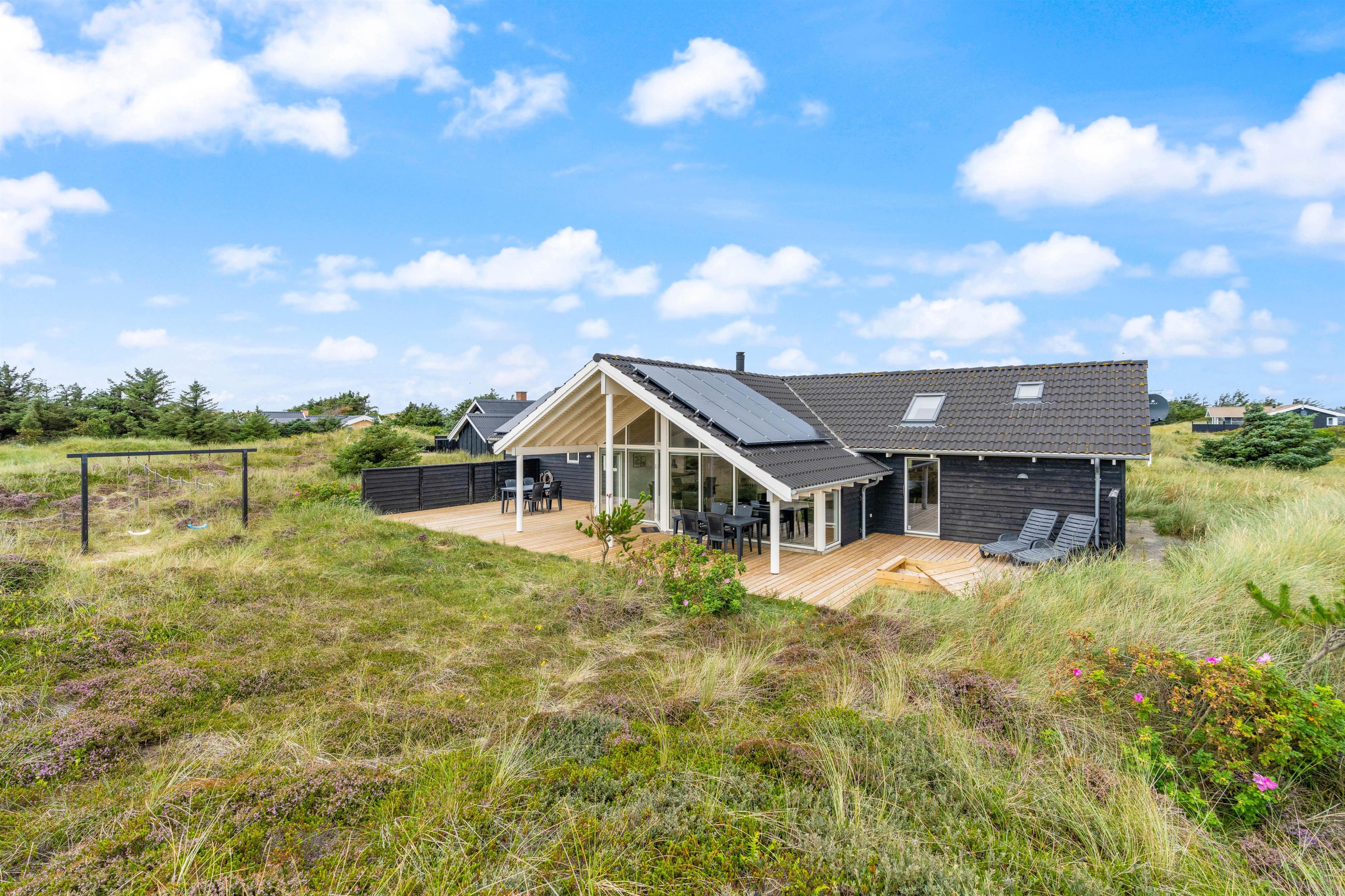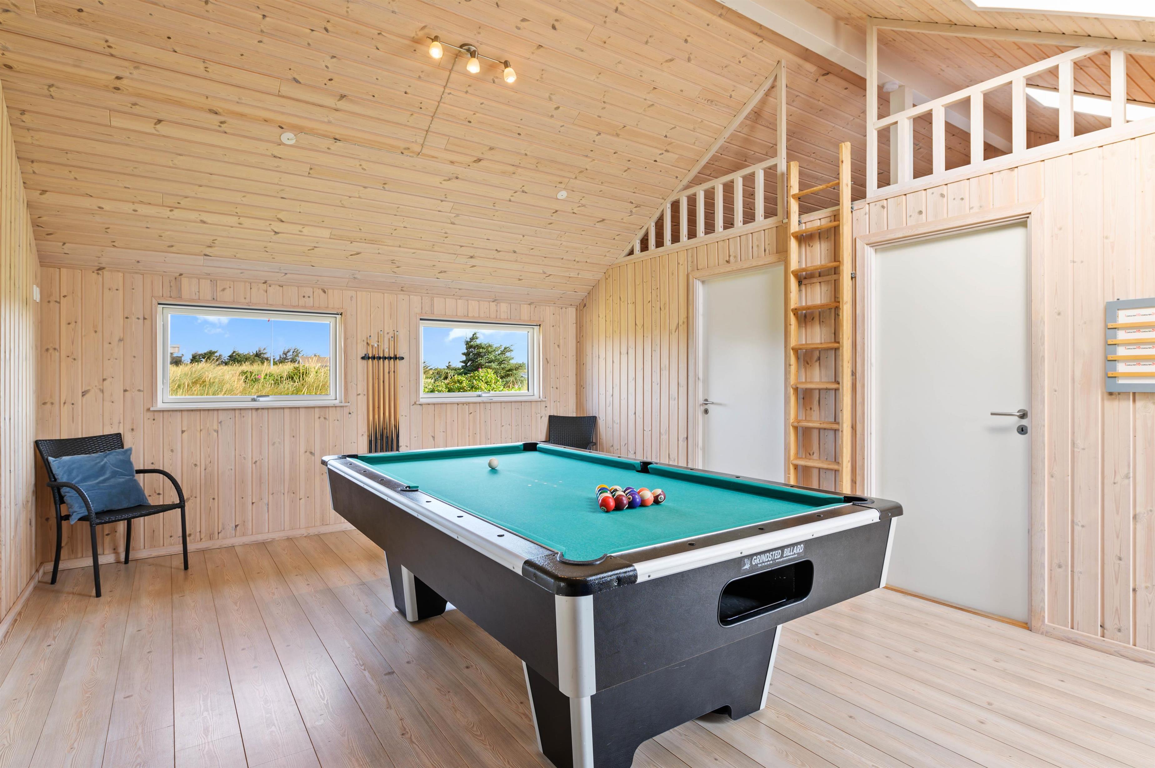 Et førsteklasses arkitekttegnet sommerhus, hvor der er tænkt på detaljerne. Huset har en skøn og fredelig beliggenhed på en stor naturgrund kun få hundrede meter fra stranden. Der er stort aktivitetsrum med bl.a. billard.
