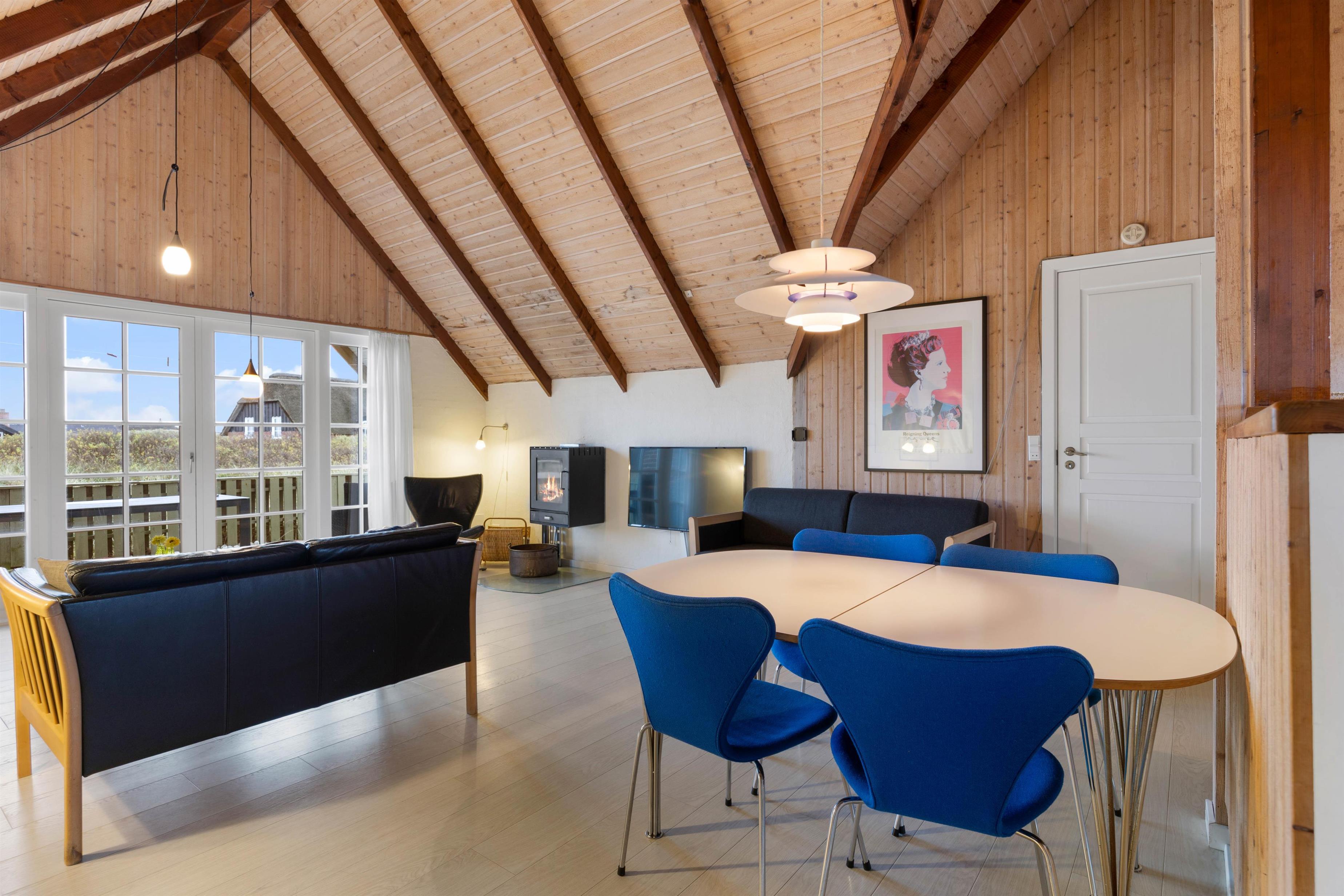 Et rigtigt hyggeligt sommerhus med en helt enestående beliggenhed i 1. klitrække, helt ud til det fredede klitområde mod vest og mod nord. Sommerhuset er velholdt og er løbende blevet renoveret. Der er 6 sovepladser i huset fordelt på 3 soveværelser. 2 af værelserne har hver en dobbeltseng, og på det sidste værelse er der 2 enkeltsenge. På badeværelset er der en bruseniche, et toilet og en vaskemaskine. Og overfor badeværelset ligger husets sauna. Derudover er der i et separat baderum med et spabad og en bruser. I køkkenet er der en fryser på 65 L, en mikroovn og en opvaskemaskine. I stuen er der et fladskærms-TV, en parabol, en DVD-afspiller, radio, en brændeovn og gratis trådløst internet.
