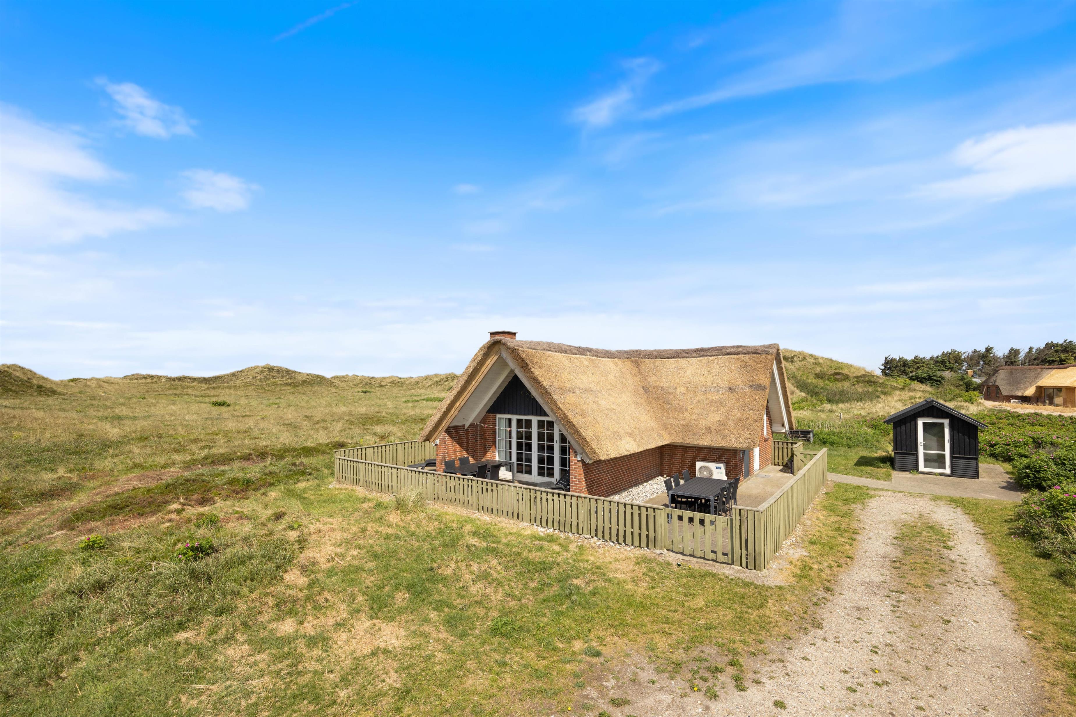 Charmerende sommerhus med stråtag, beliggende på en unik placeret naturgrund i 1. klitrække. Huset er velholdt og er løbende blevet renoveret. Der er en skøn terrasse, som omkranser huset på 3 sider. Huset er veludstyret med bl.a. sauna og gratis internet.