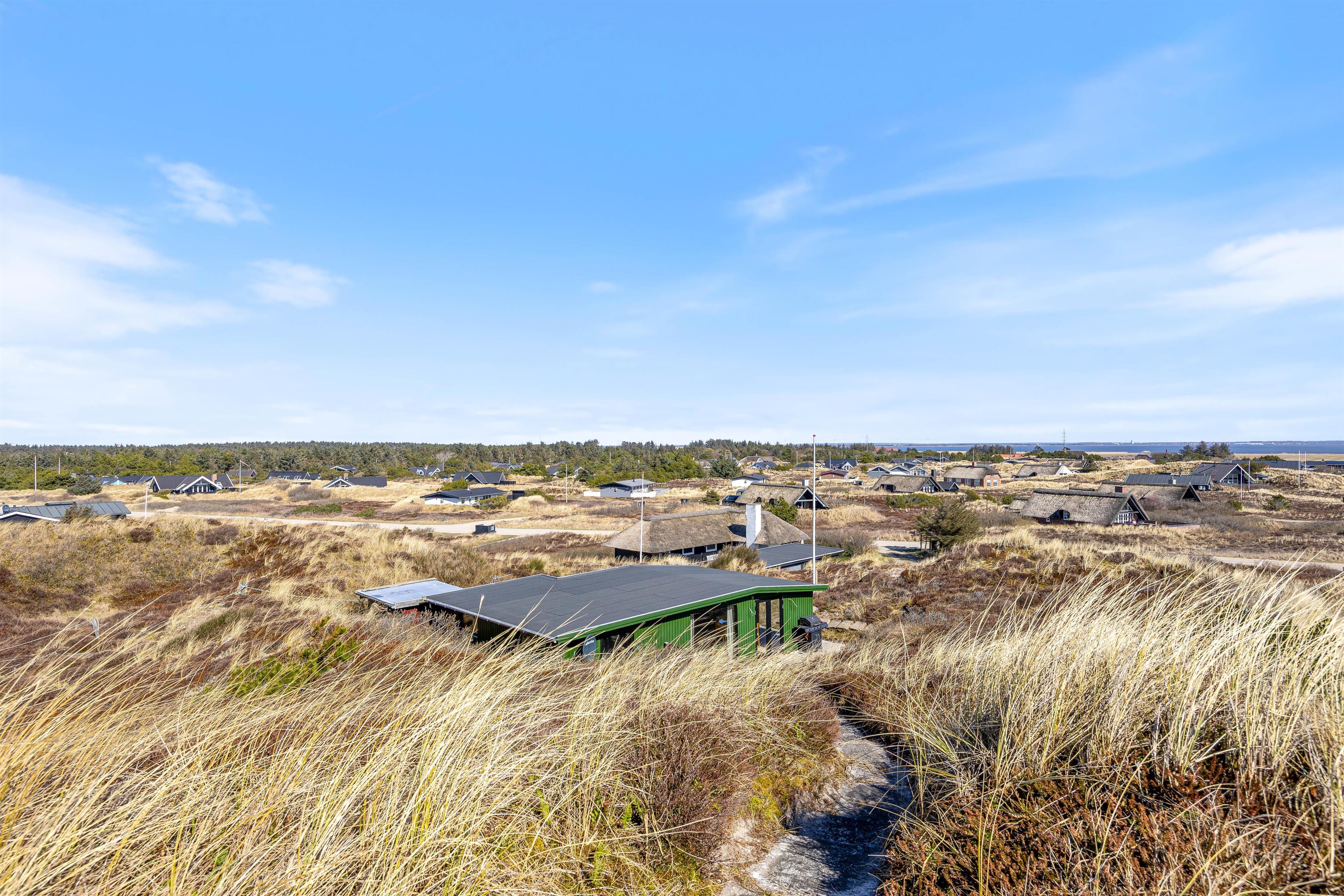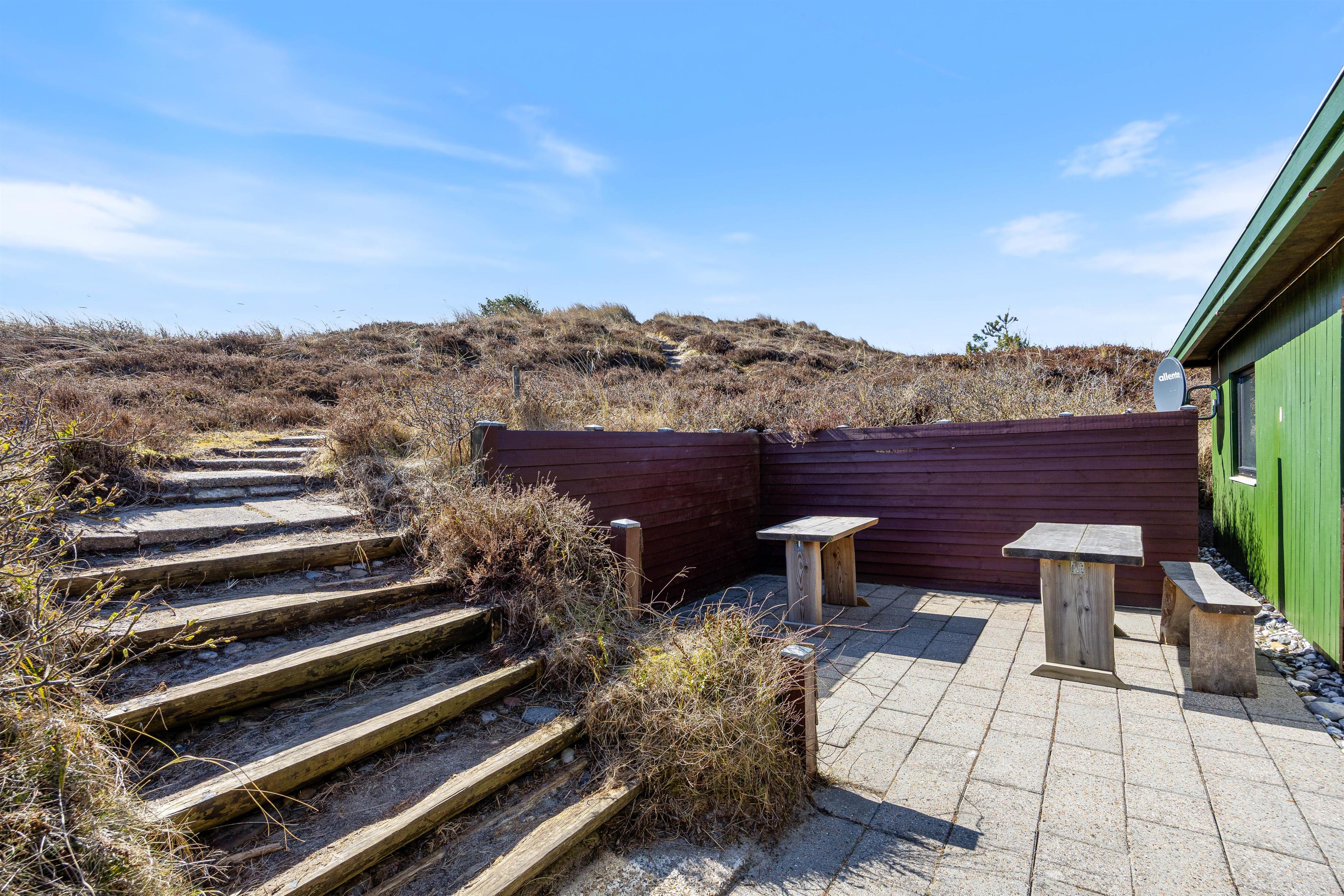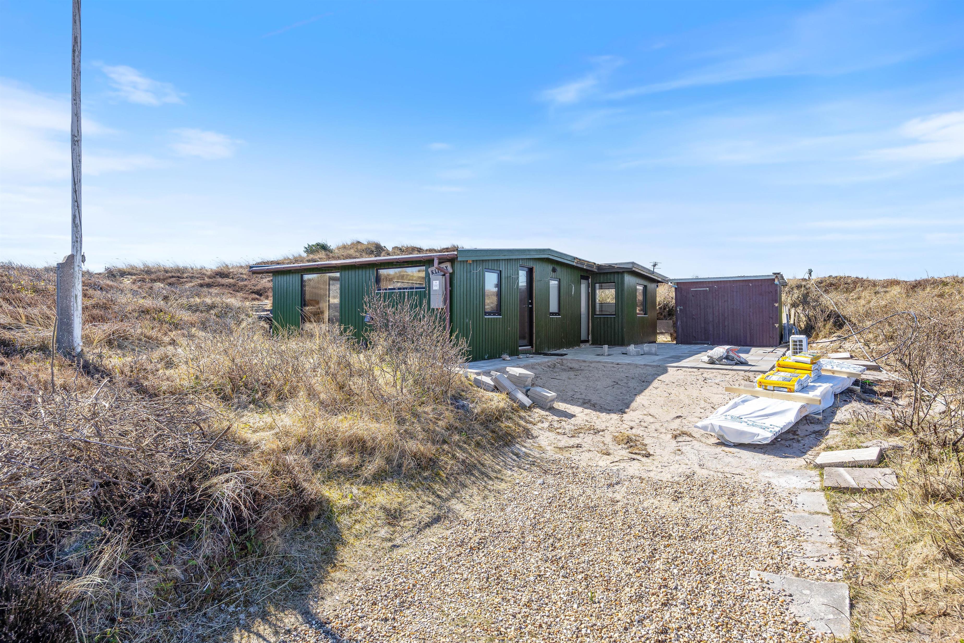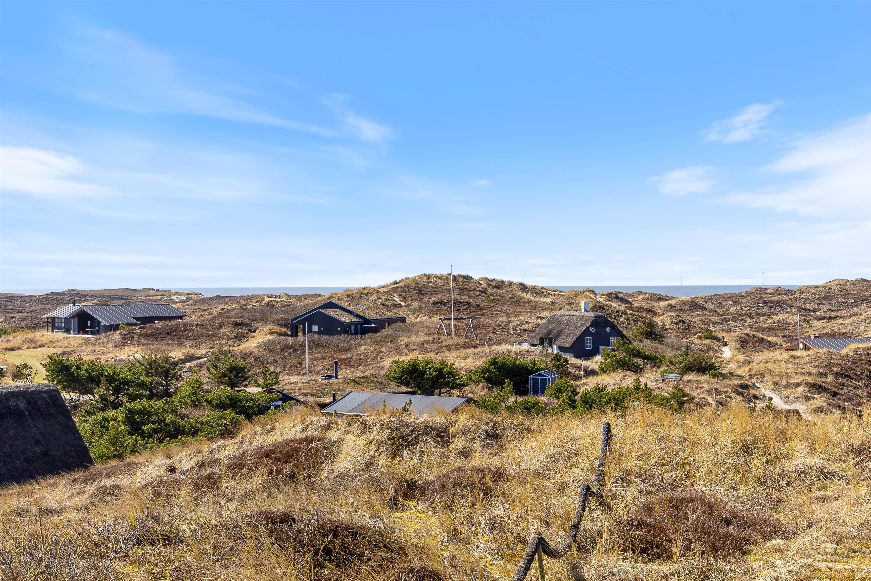 Sommerhuset ligger på en smuk natur- og klitgrund, hvor I virkelig mærker den vestjyske natur helt tæt på. Rundt om sommerhuset finder I både en åben terrasse og en afskærmet terrasse, så I altid kan finde en god plads i læ for vinden.