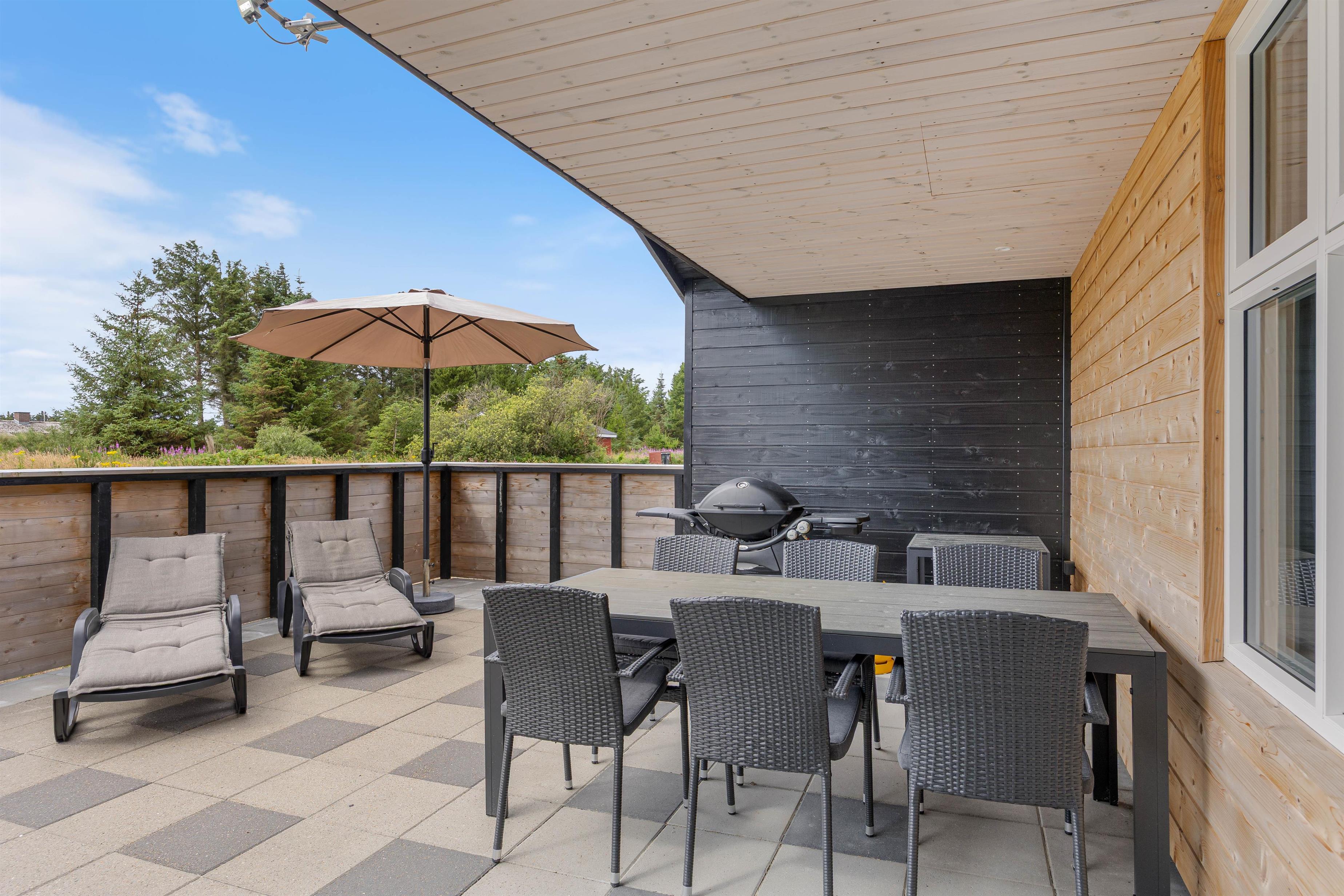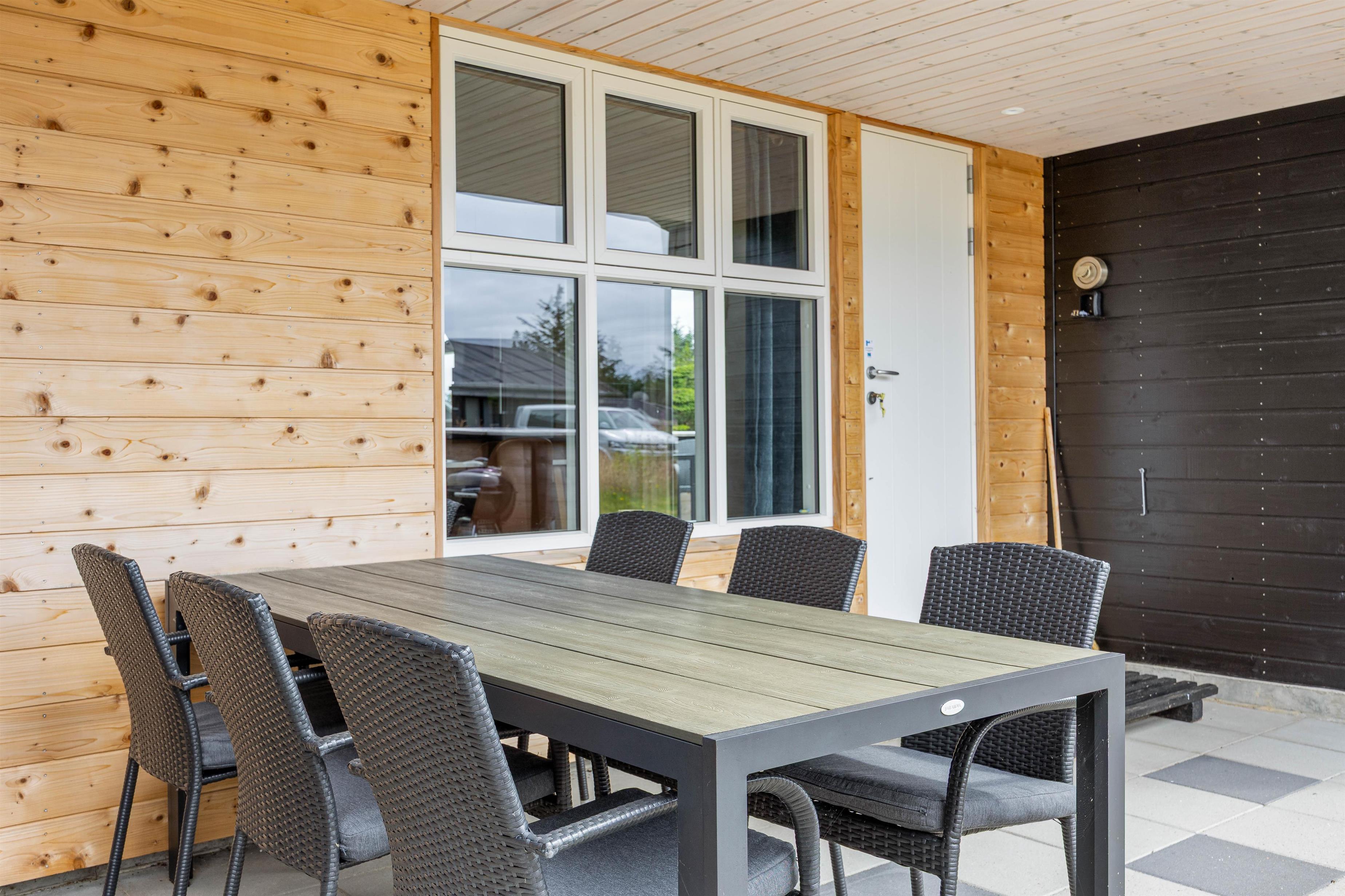 Fra alrummet er der adgang til den fine fliseterrasse, hvoraf en del er overdækket. Her finder I havemøbler og en gasgrill. Her kan I slappe af, nyde roen og solens varme samt holde de skønneste grillaftner. Smid noget lækkert kød på grillen, nyd hertil et glas vin og rund aftenen af med et spil på plænen. Her er god plads til kongespil, boldspil og meget andet!