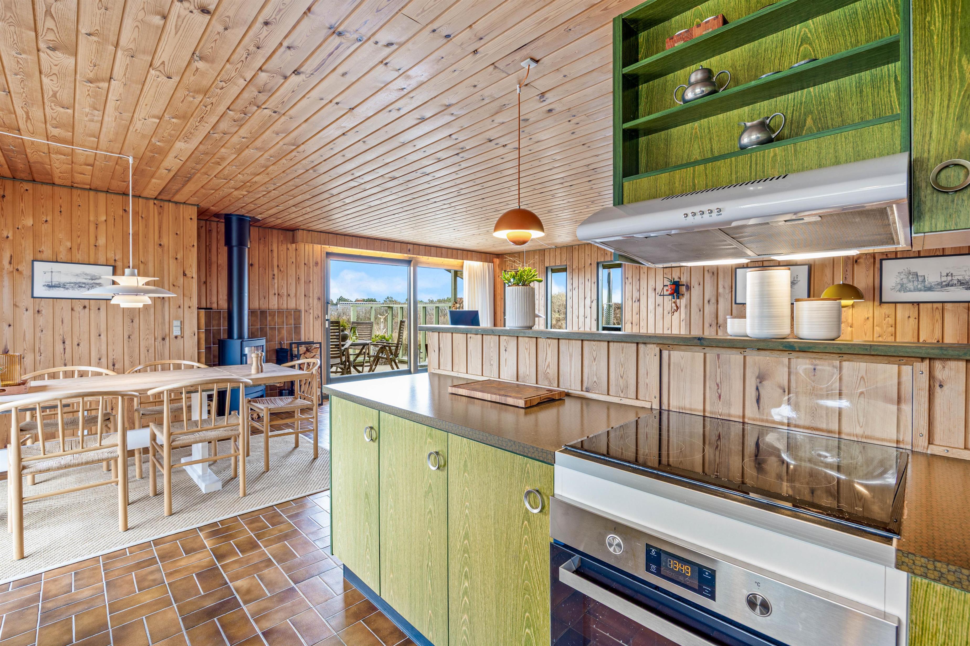 Med et skønt køkkenalrum vil I både kunne lave nogle lækre måltider, spille et hyggeligt brætspil med børnene eller slappe helt af i sofaområdet. Dog er der ingen opvaskemaskine, men det er nu også hyggeligt at være hele familien samlet om opvasken. I det komfortable sofaområde kan I både se en god film eller blot læse en bog med lyden af brændeovnen i baggrunden. Desuden er der også en varmepumpe i sommerhuset, som kan sikre jer en behagelig temperatur.
